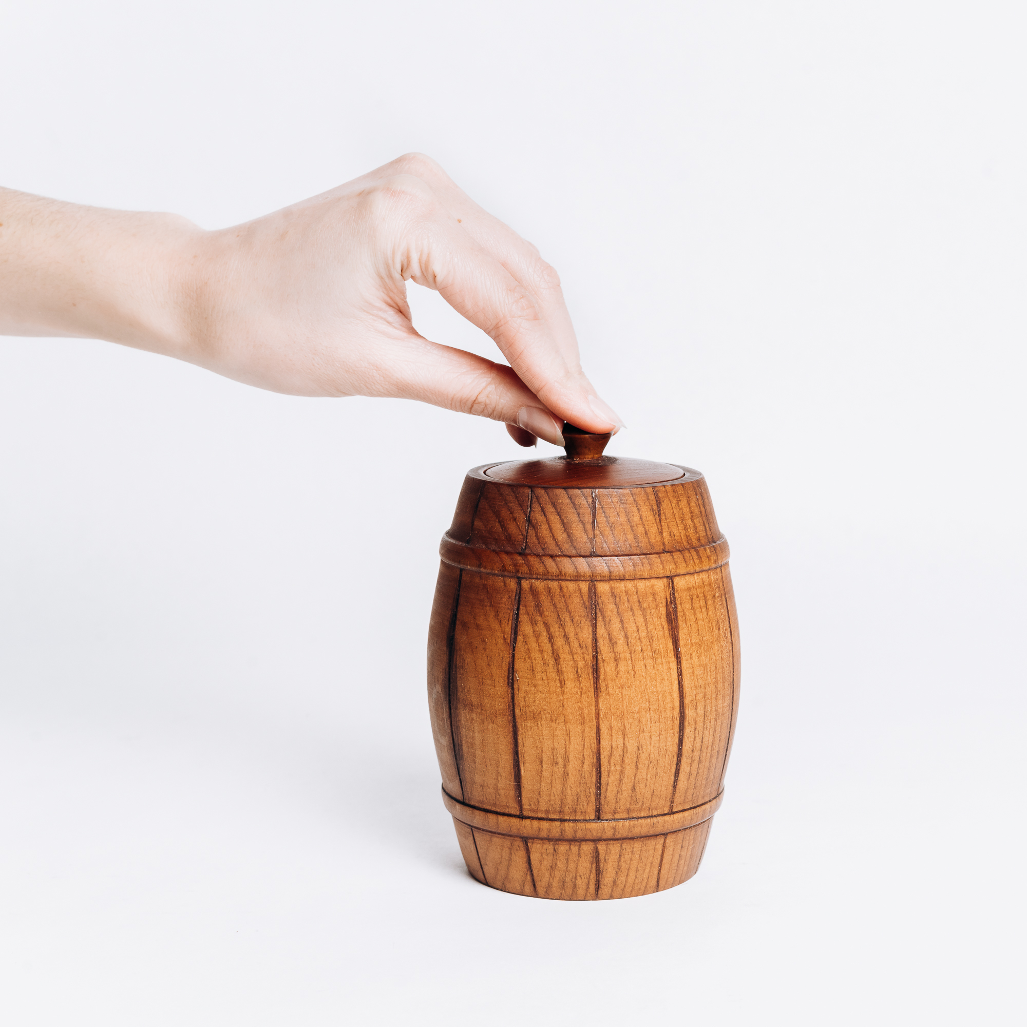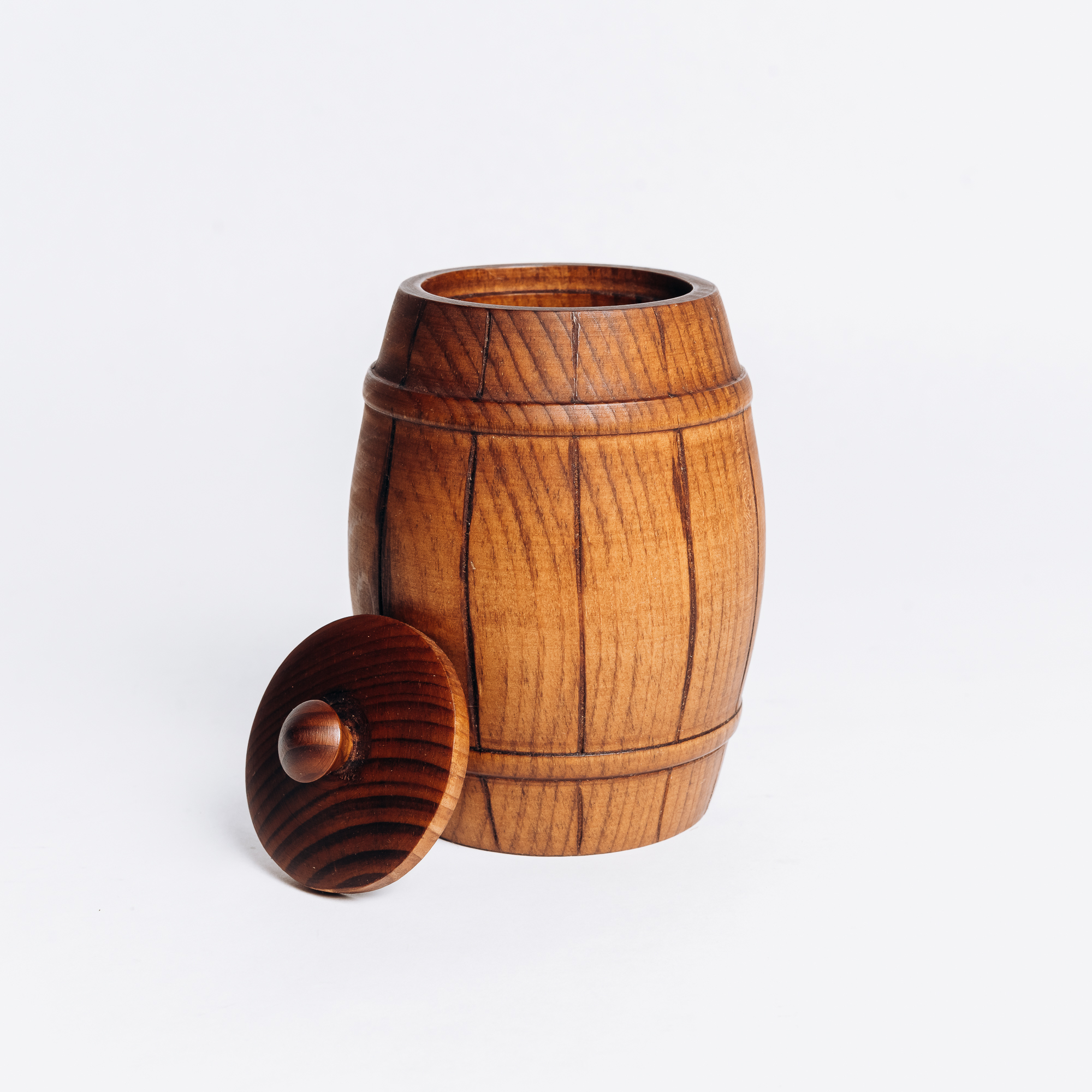 Маленькая кубышка в виде бочонка из массива натурального сибирского Кедра. Для соли, специй, меда или других пищевых продуктов. Снаружи и внутри пропитана горячим растительным маслом с пчелиным воском.