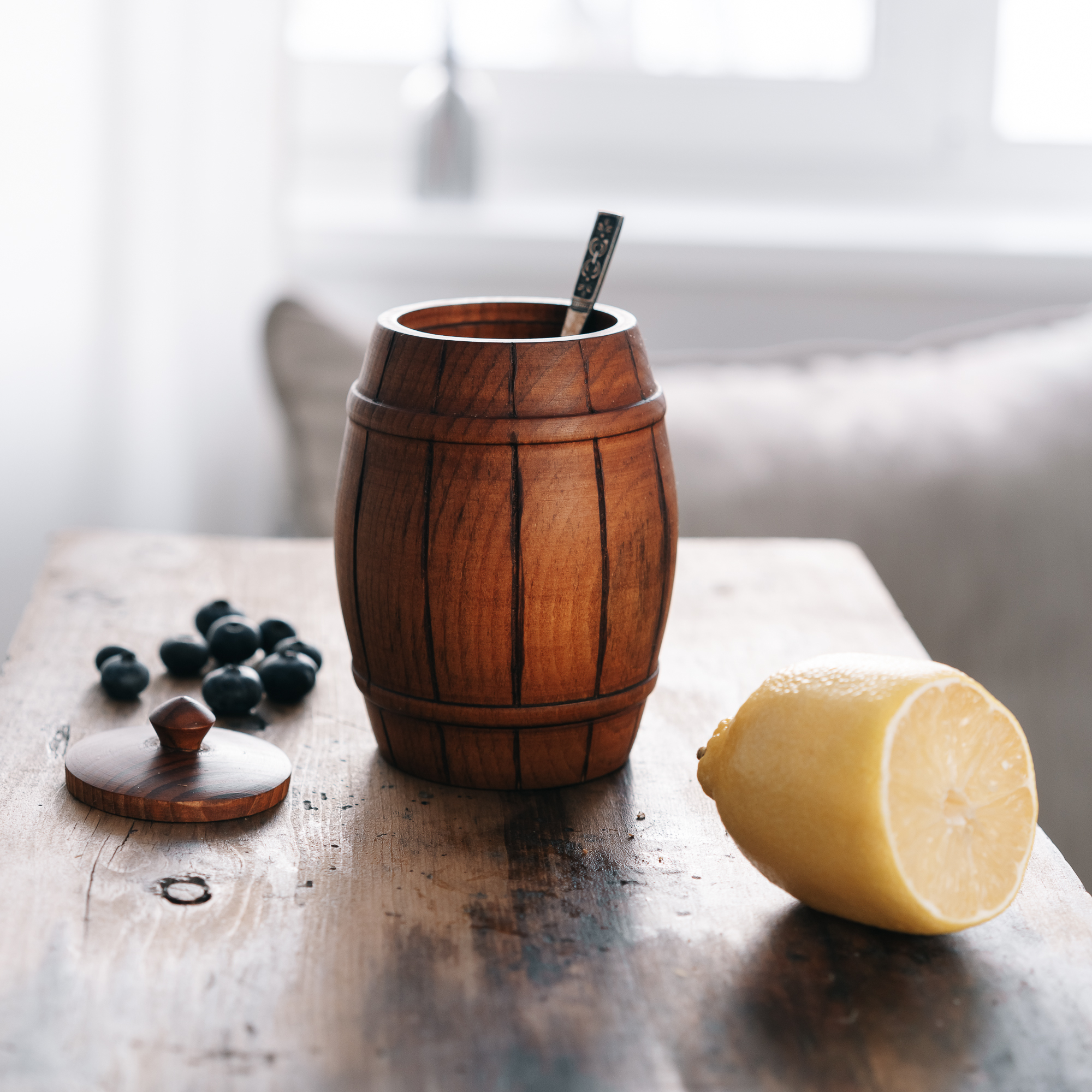 Деревянная кубышка (бочонок) для мёда с крышкой для меда из древесины кедра.