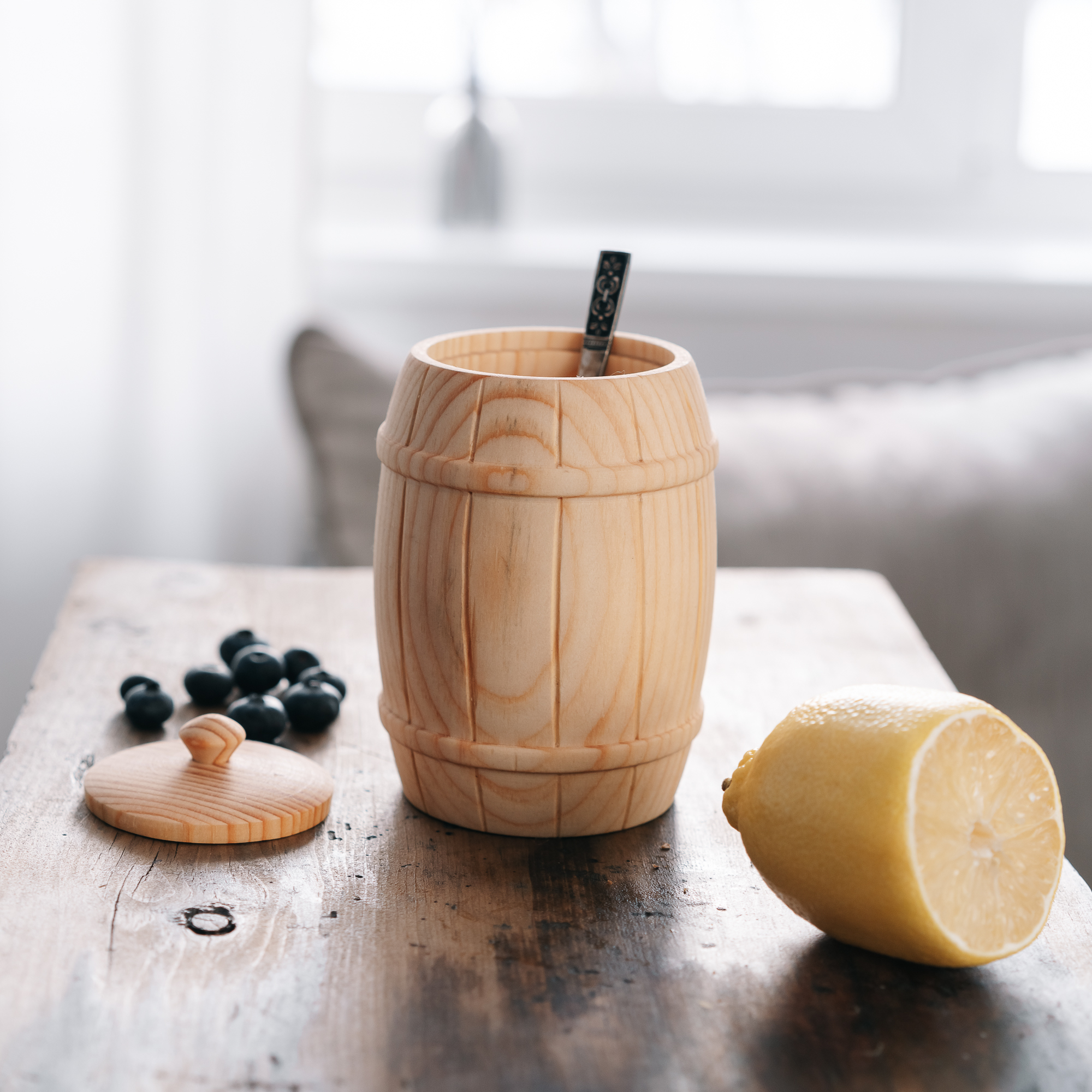 Бочонок (кубышка) для меда, соли, специй, пряностей из древесины кедра. K61