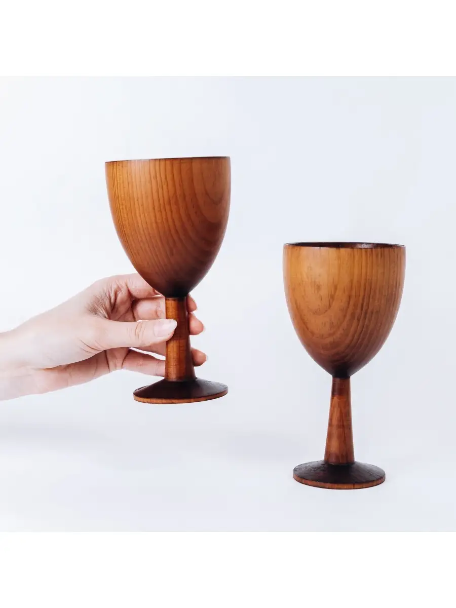 Набор оригинальных деревянных бокалов для вина ручной работы из дерева Сибирский кедр. Авторский дизайн. Очень удобны в руке и приятны на ощупь. Деревянные бокалы - это красивый элемент дизайна или основной прибор на вашем торжестве. Но не забывайте, что чрезмерное употребление алкоголя вредит вашему здоровью. Живое дыхание Сибирского дерева в Вашем доме! Размер одного бокала: высота 17 см., диаметр 8,8 см. 2 шт.