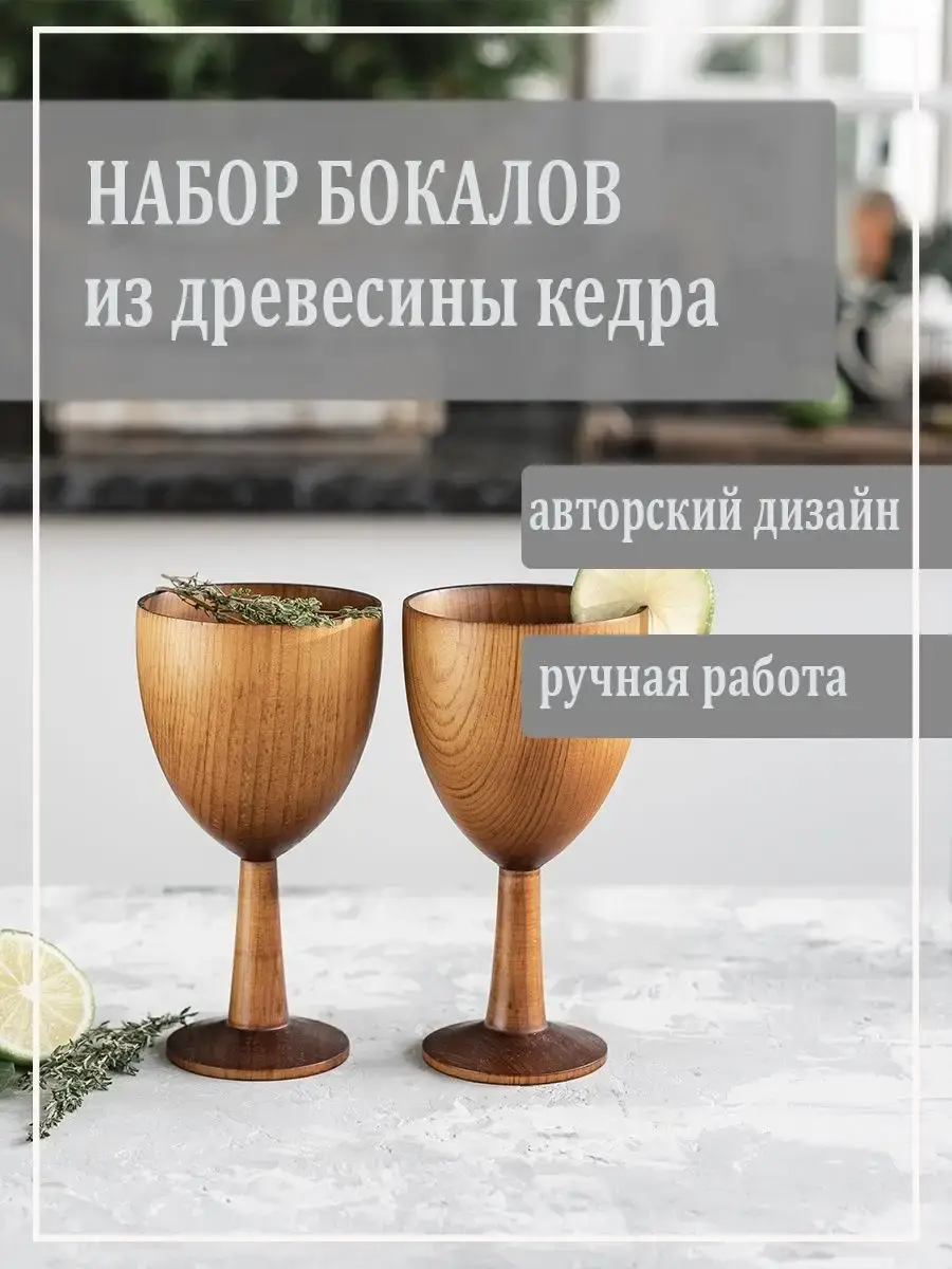 Набор оригинальных деревянных бокалов для вина ручной работы из дерева Сибирский кедр. Авторский дизайн. Очень удобны в руке и приятны на ощупь. Деревянные бокалы - это красивый элемент дизайна или основной прибор на вашем торжестве. Но не забывайте, что чрезмерное употребление алкоголя вредит вашему здоровью. Живое дыхание Сибирского дерева в Вашем доме! Размер одного бокала: высота 17 см., диаметр 8,8 см. 2 шт.