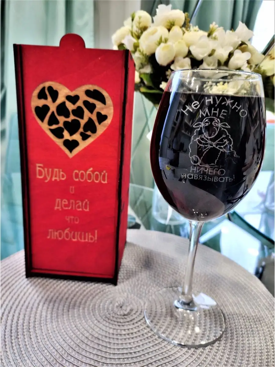 Бокал для вина с гравировкой в подарочной упаковке – это отличный подарок на Новый год, день рождения или любой другой праздник. Стакан изготовлен из прочного стекла прозрачного цвета, объем 600 мл.Благодаря своему дизайну бокал будет отлично смотреться как на повседневном, так и на праздничном столе.Бокал подходит для красного, белого вина и других напитков. Уникальная упаковка, служащая достойным облачением, не только избавит вас от необходимости продумывать процесс вручения подарка, но и позволит презентовать его максимально эффектно! Коробка обработана специальным составом из масла и воска. Можно мыть в посудомоечной машине.