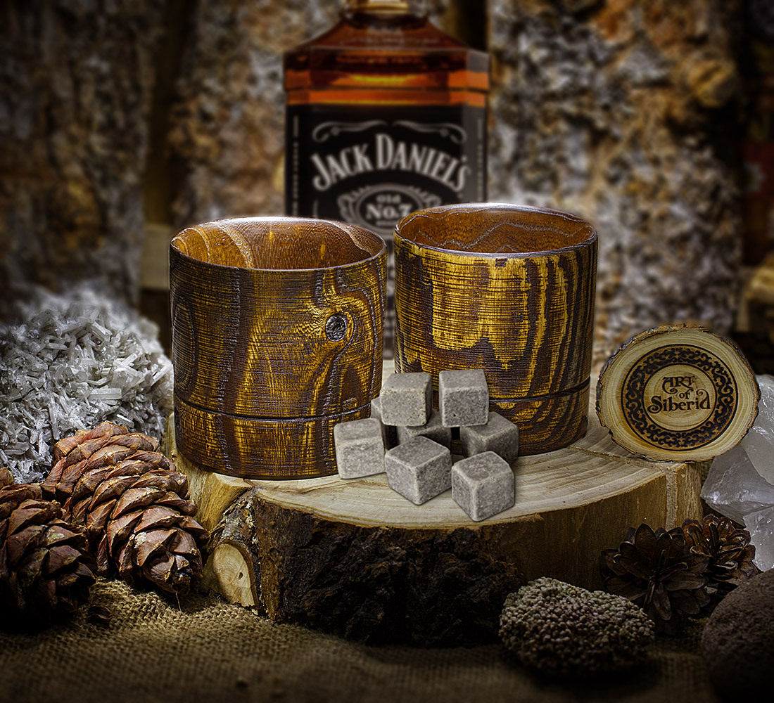 Виски - это крепкий ароматный алкогольный напиток, имеющий долгую историю. Виски пьют и как аперитив, и как дижестив. Поскольку это элитный и роскошный алкоголь, который называют даже напитком президентов и премьер-министров, то и посуда для его употребления должна соответствовать марке. Самый распространённый бокал для виски - это tumbler. Существует предание, что появился он впервые в Америке, в барах Дикого Запада. Посетители этих заведений любили в большом количестве бить посуду, и владельцы, чтобы не терпеть убытки, разрезали бутылки пополам и в нижней части подавали напиток. Поэтому современный стакан для виски имеет толстое дно. Мы предлагаем вам ощутить вкус и аромат благородного напитка в бокалах из дерева. Эти уникальные бокалы для виски ручной работы, сделанные из цельного массива дерева. Древесина сибирского вяза смягчает вкус, одновременно усиливая древесные нотки виски и делая его аромат более насыщенным. Бокалы созданы сибирскими мастерами для истинных гурманов и ценителей вкуса! Сохранена текстура древесины сибирского вяза, которая придает этим бокалам неповторимый роскошный вид. Но не забудьте, что чрезмерное употребление алкоголя вредит вашему здоровью.