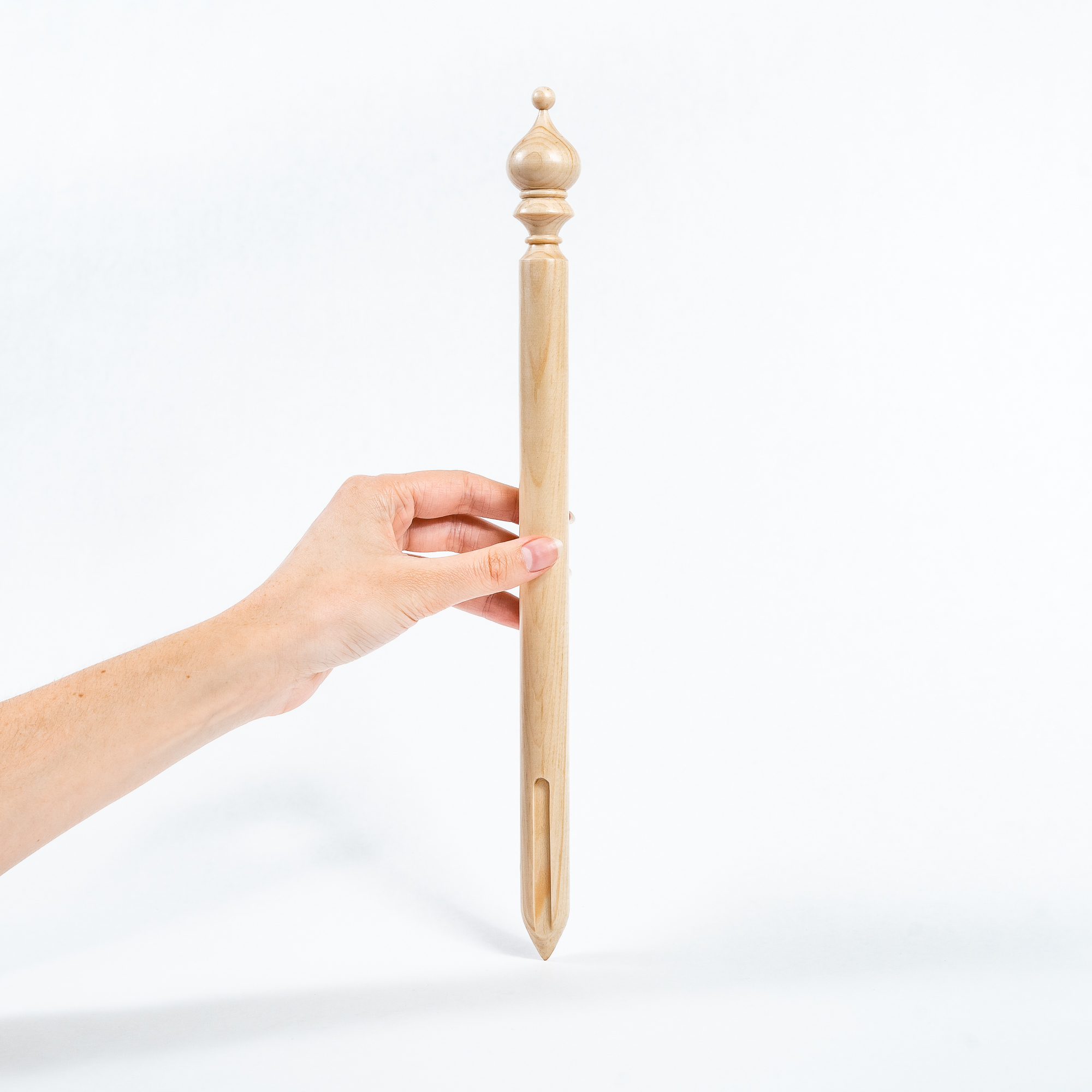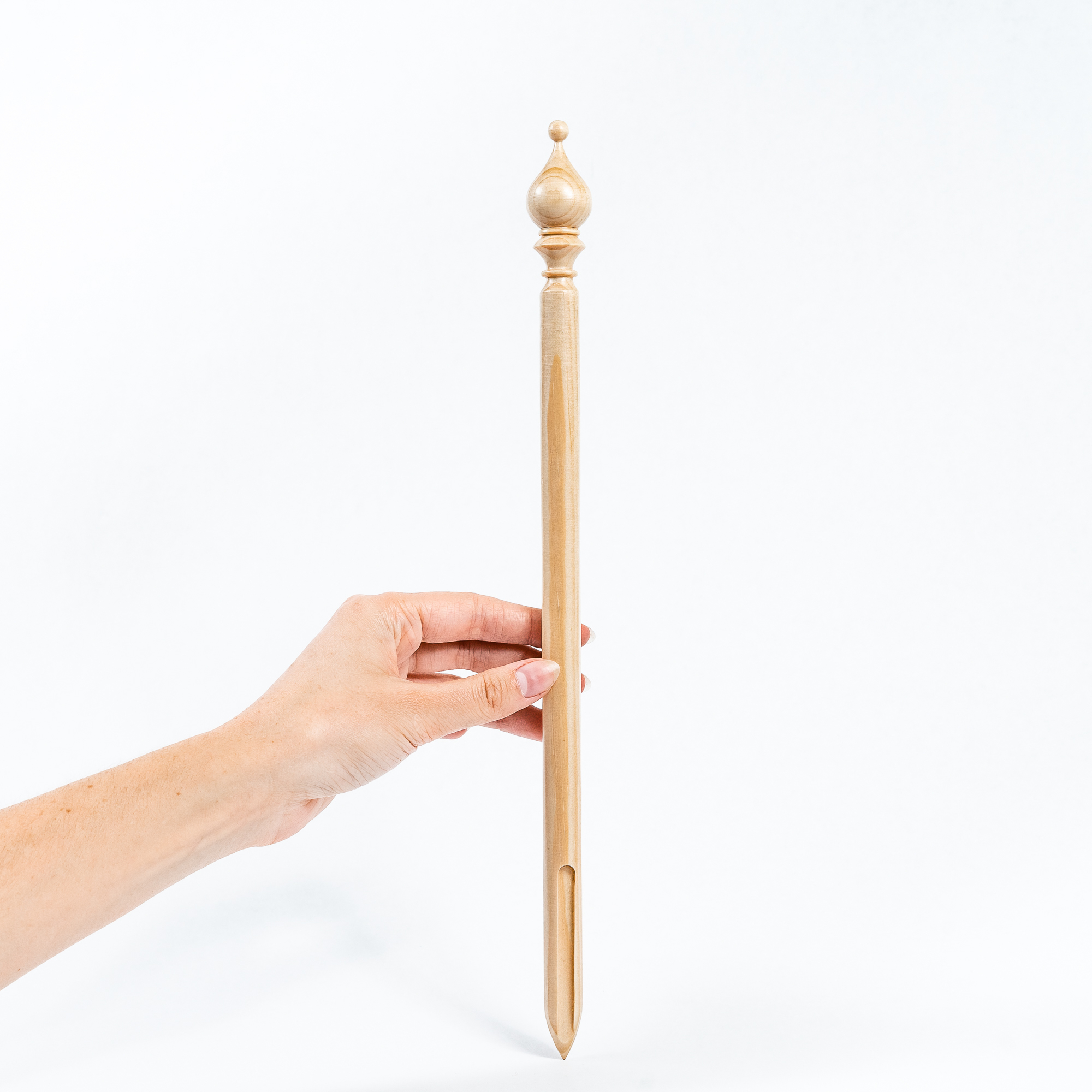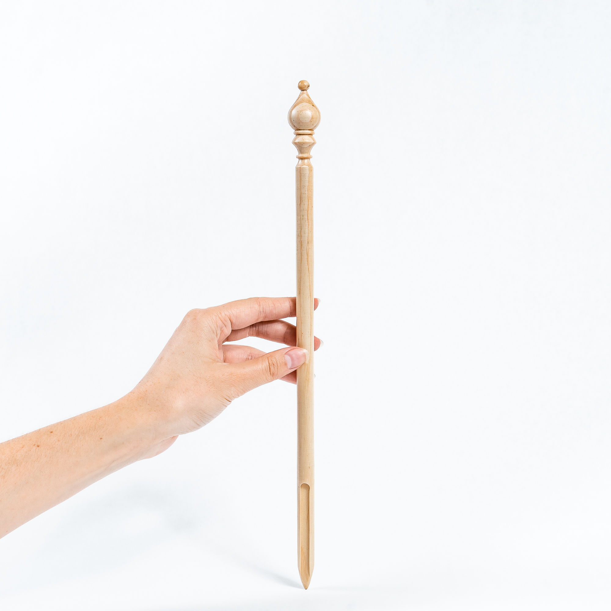 Для облегчения перуанского вязания мы специально изготовили брумстик. Выполнен из древесины сибирского кедра со специальной прорезью, для легкого снимания петель.