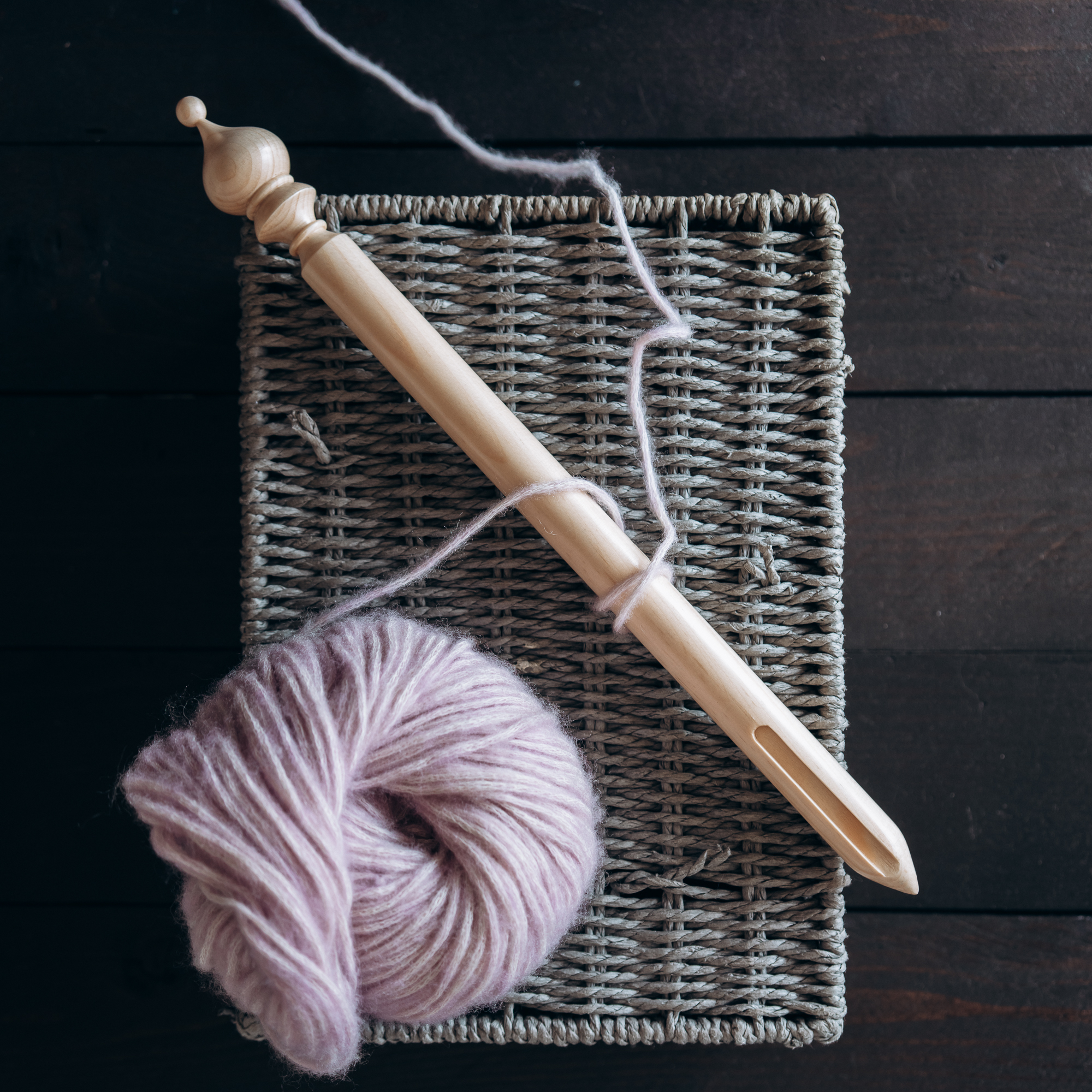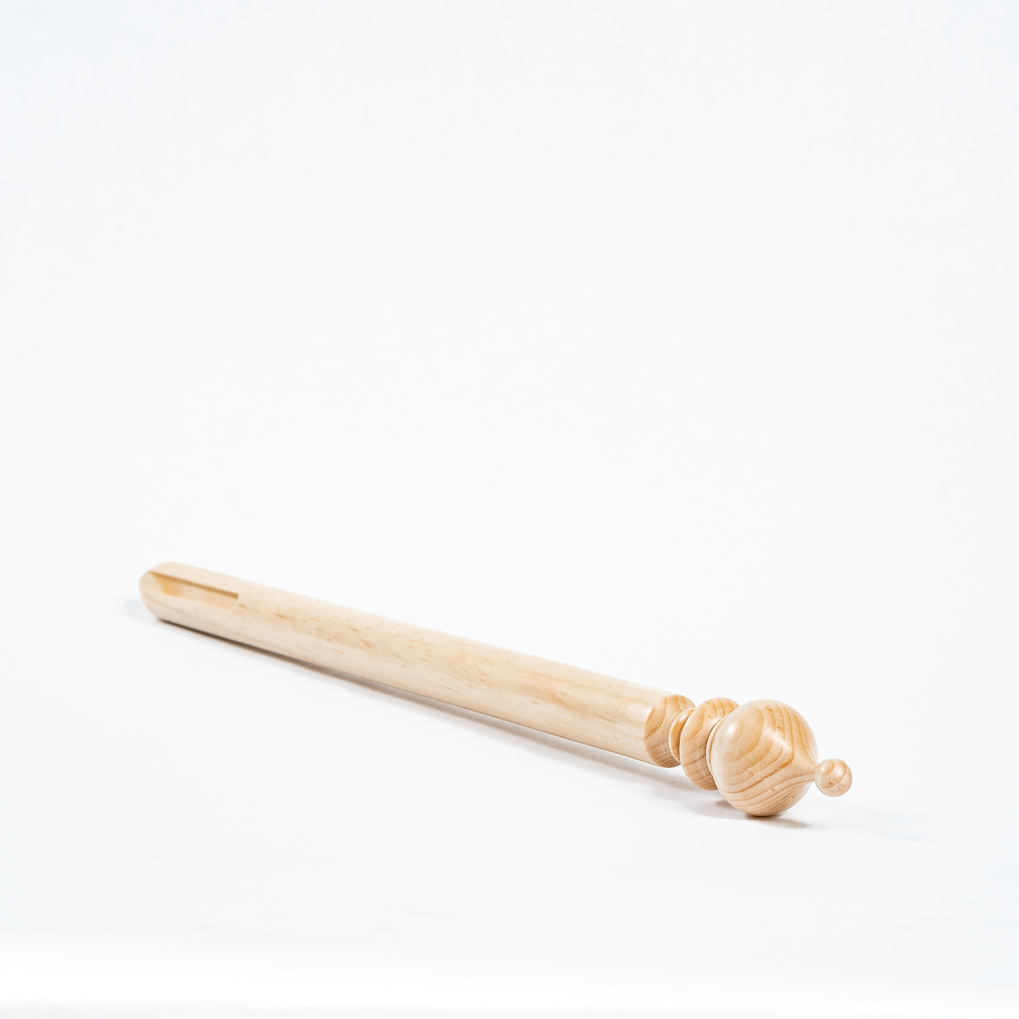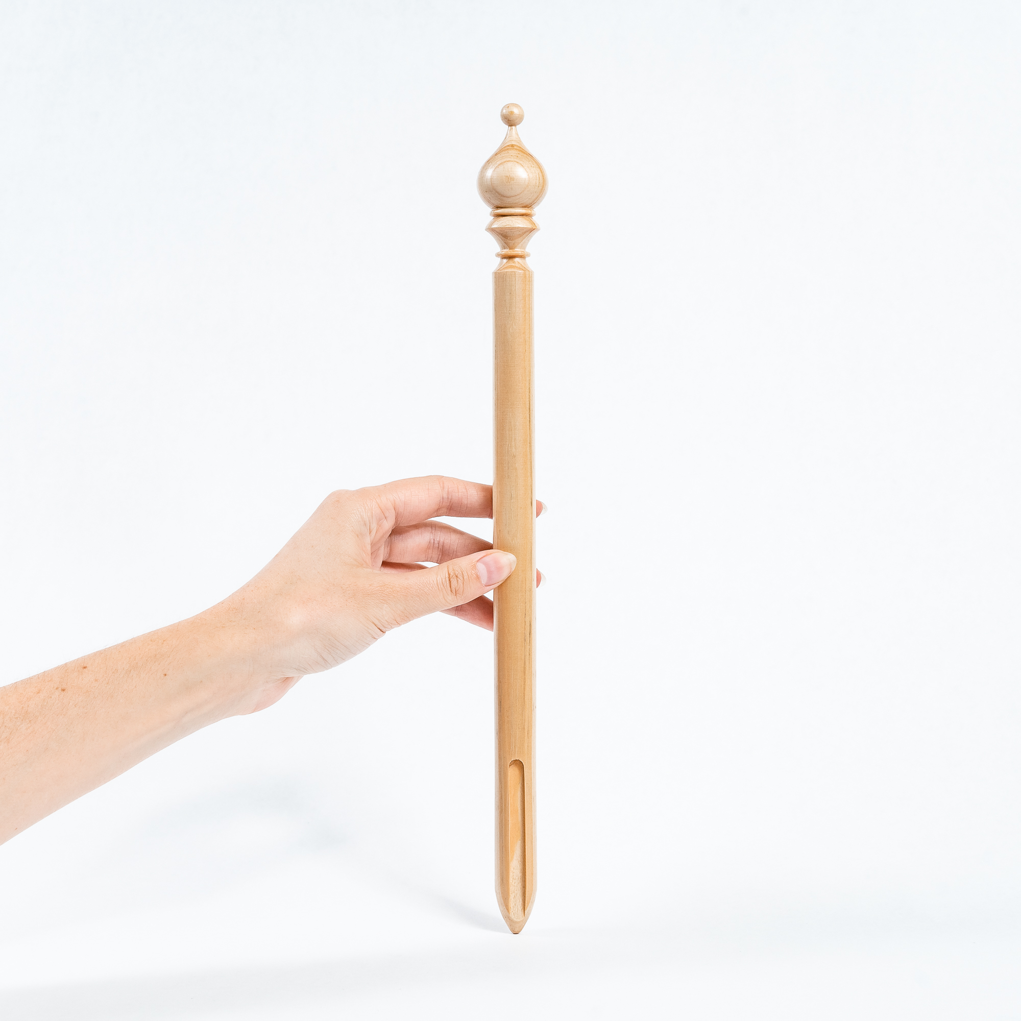 Для облегчения перуанского вязания мы специально изготовили брумстик. Выполнен из древесины сибирского кедра со специальной прорезью, для легкого снимания петель.