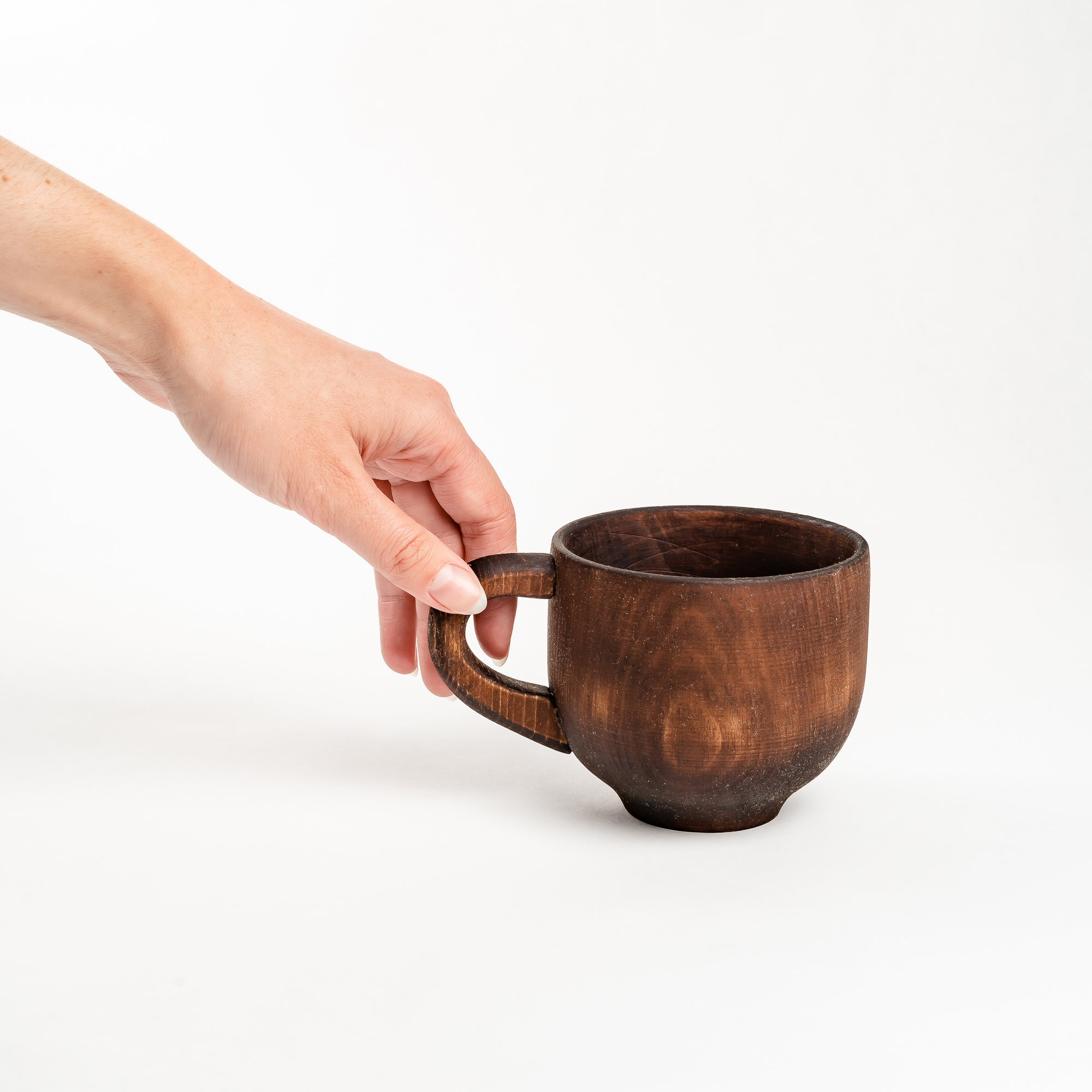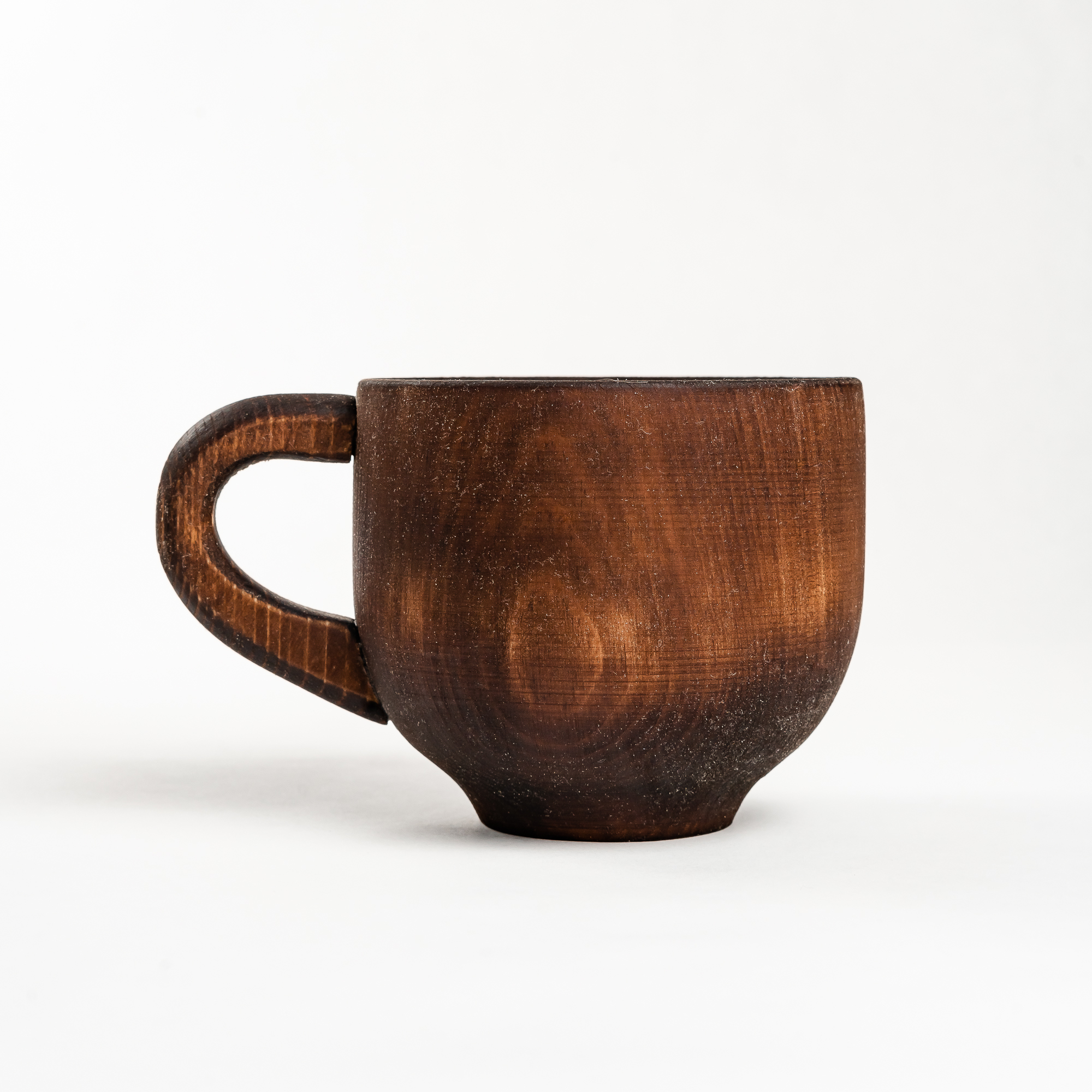 Деревянная большая кружка с ручкой из цельного куска древесины кедра для чая, пива и других напитков.