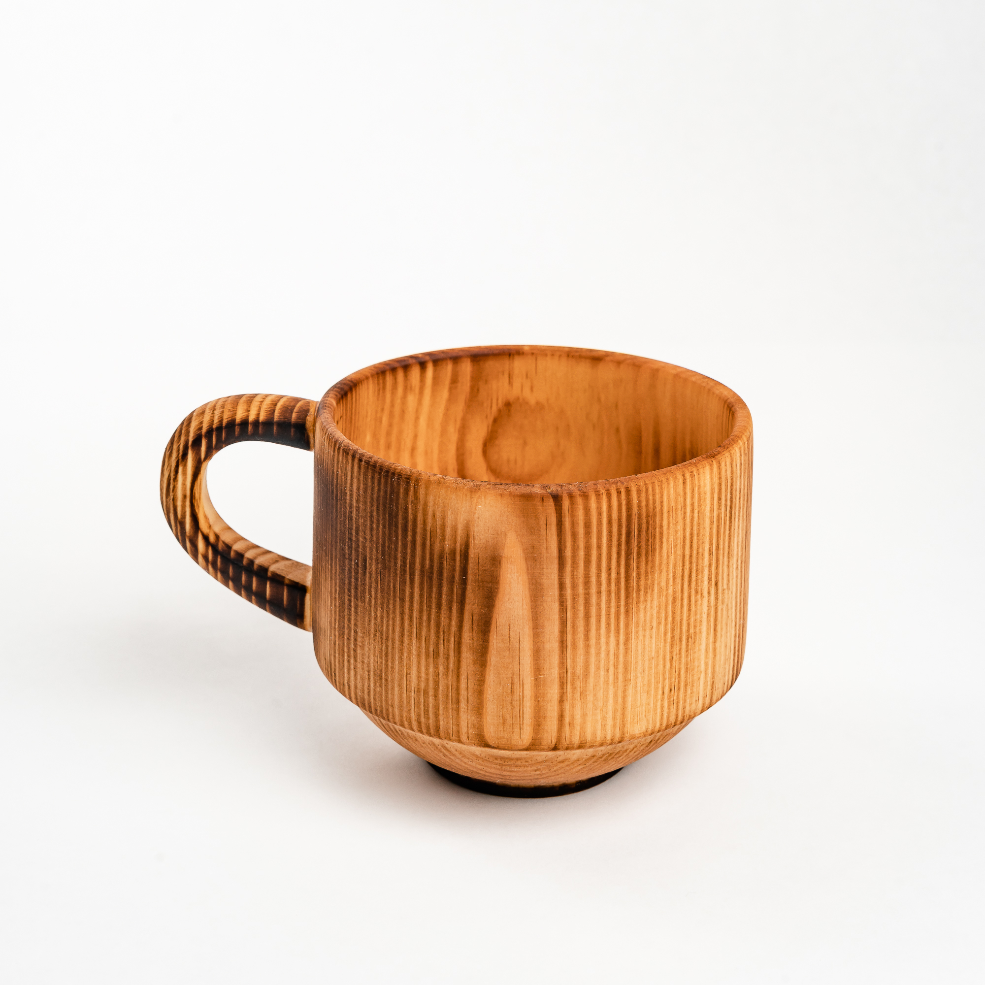 Деревянная большая кружка с ручкой из цельного куска древесины кедра для чая, пива и других напитков.
