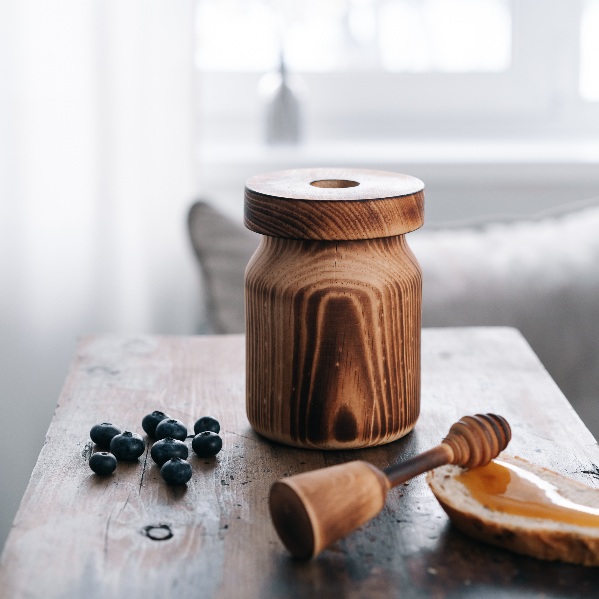 Лучше всего для хранения меда подходит посуда, изготовленная из древесины. Дерево придает меду ненавязчивые, очень приятные вкусовые оттенки, гармонично сочетающиеся с его в ароматом. Высокая плотность древесины, хорошо защищает мед от внешних воздействий. Также идеально подходит для варенья, конфет, орехов, сахара. Хороша для хранения трав. Обработана специальным способом для проявления текстуры. Изготовлена из экологически чистого дерева - Сибирская Сосна. Безопасна для детей. Внутренняя часть покрыта натуральным маслом. Сохранен запах дерева его целебные свойства и качества. Кубышка подходит как для пищевых продуктов, так и для хозяйственных нужд.