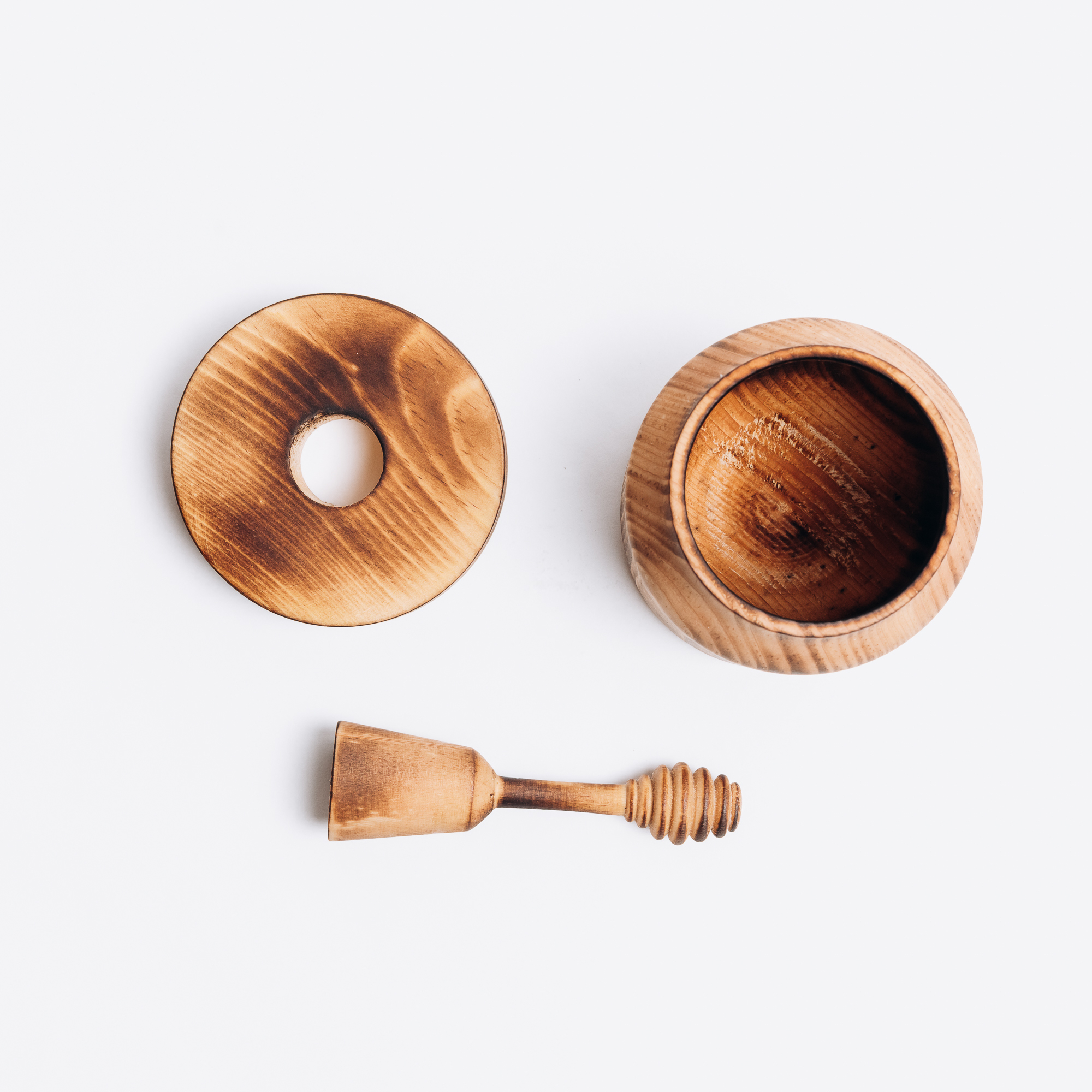 Деревянная чашка (бочонок) для мёда с крышкой и ложечкой для меда из древесины кедра.