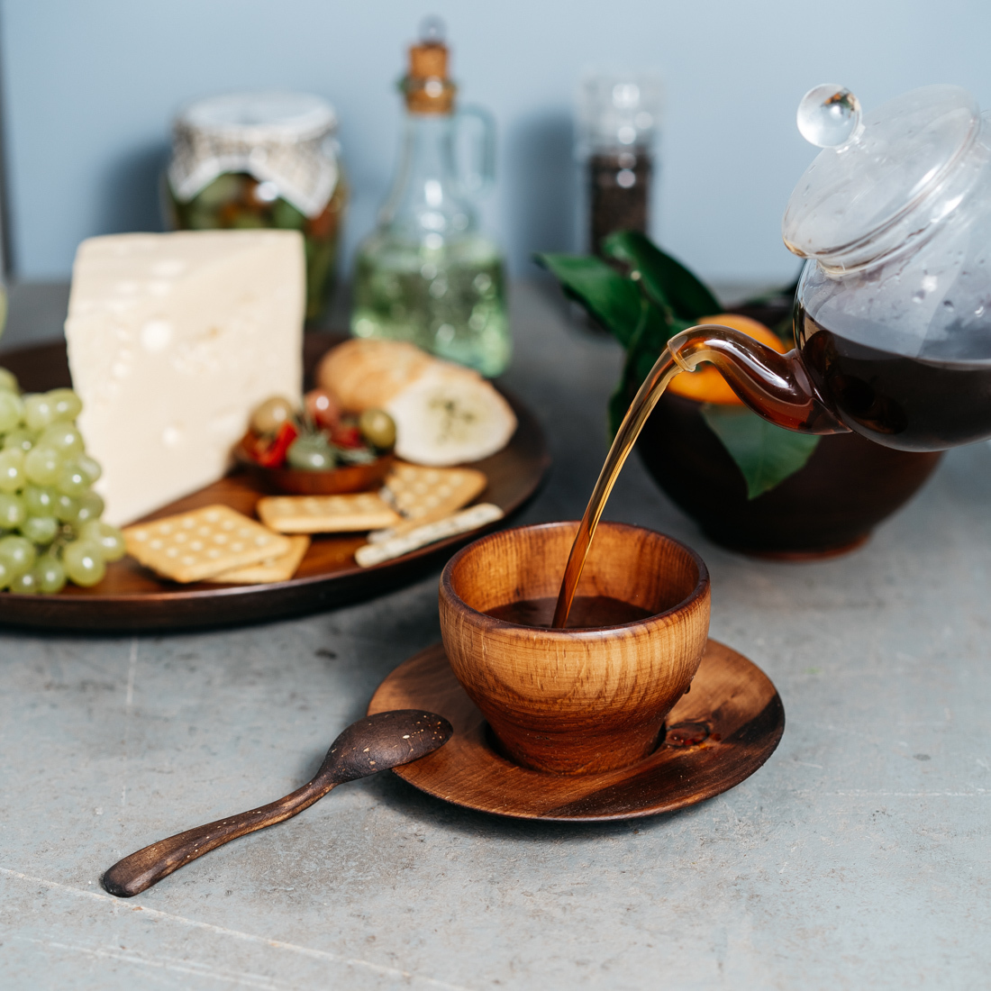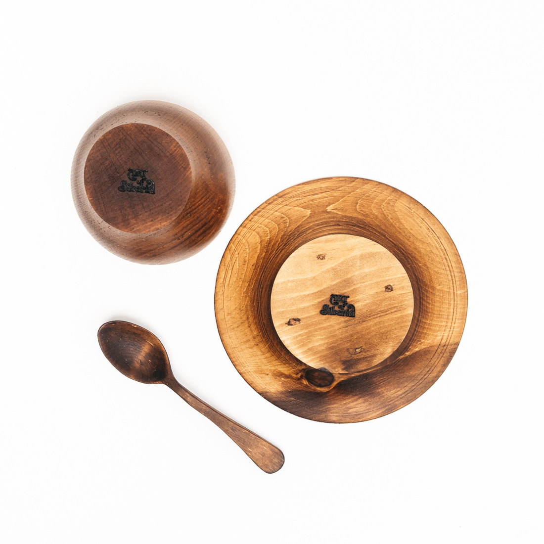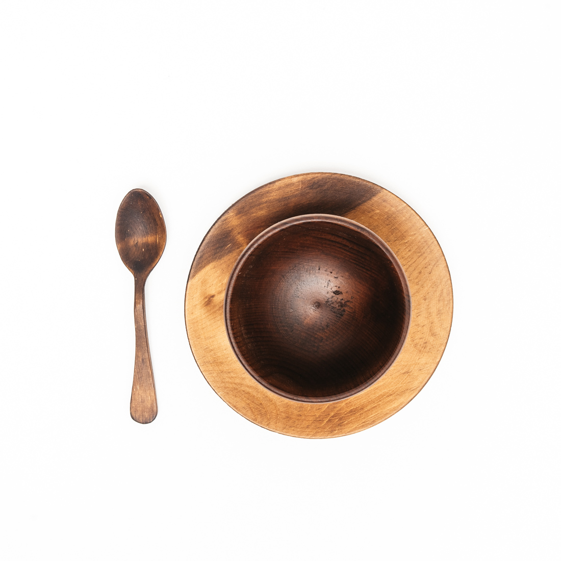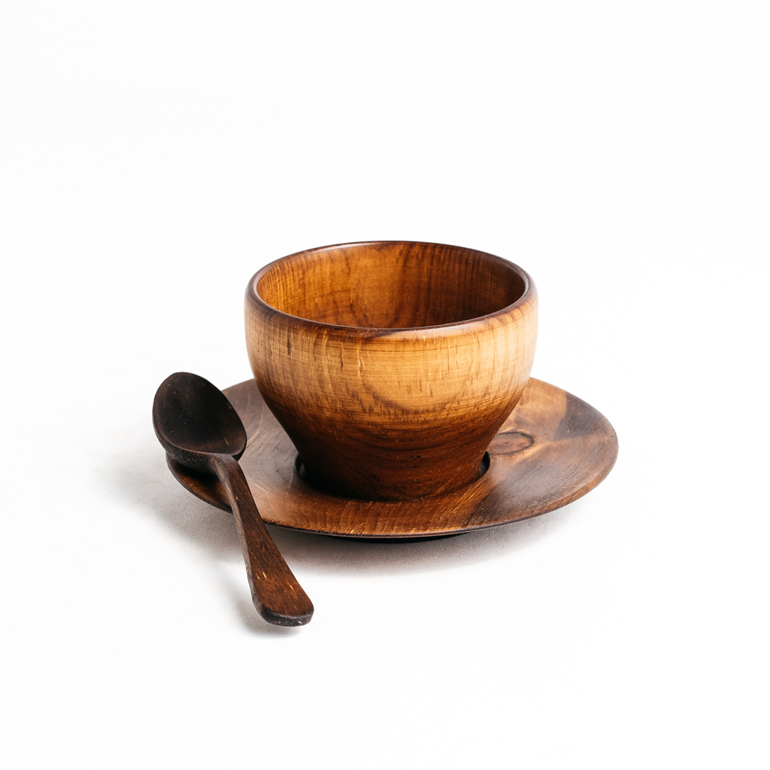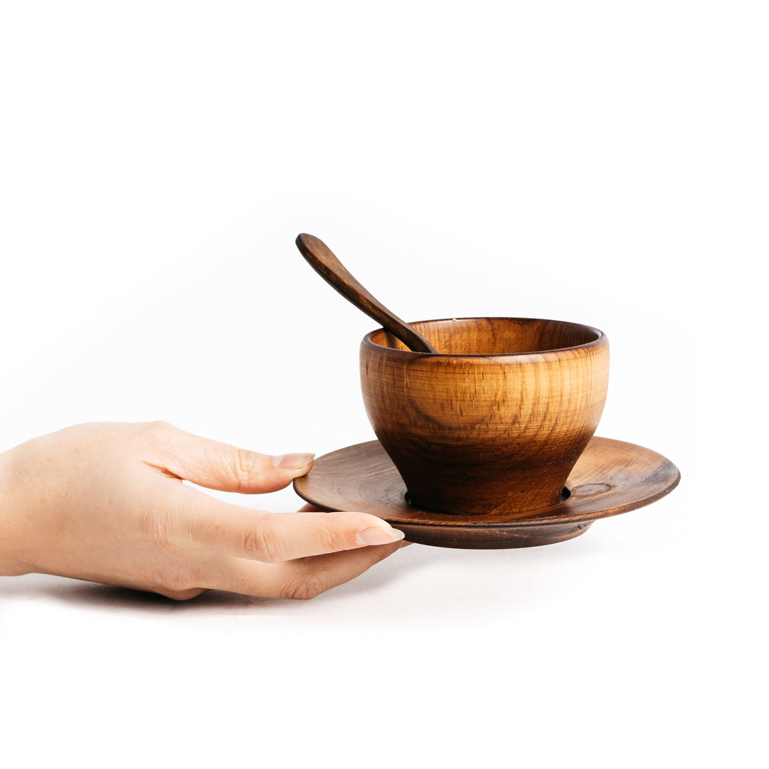 Чайная пара - чашка с блюдцем + чайная ложка из натурального дерева Сибирский кедр.