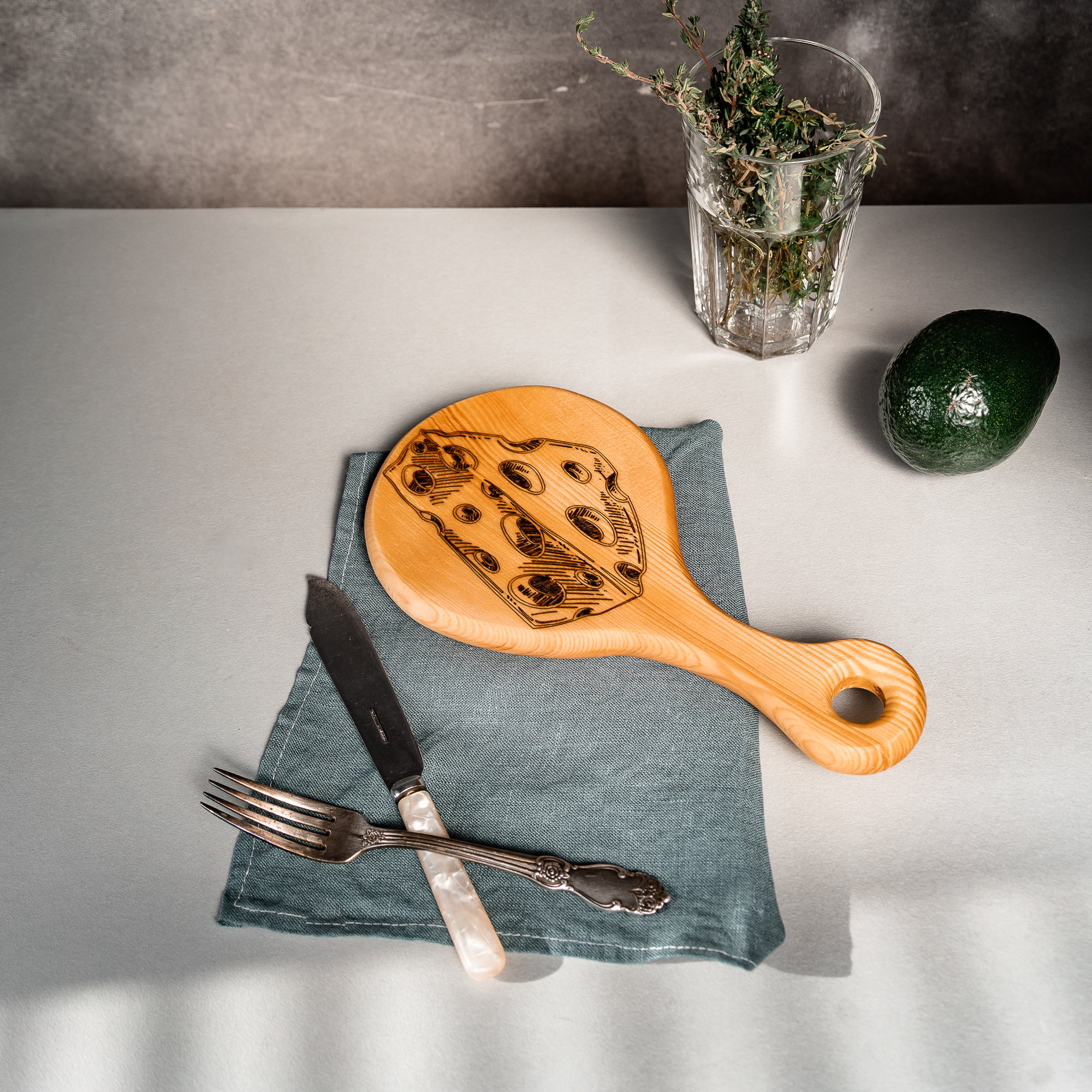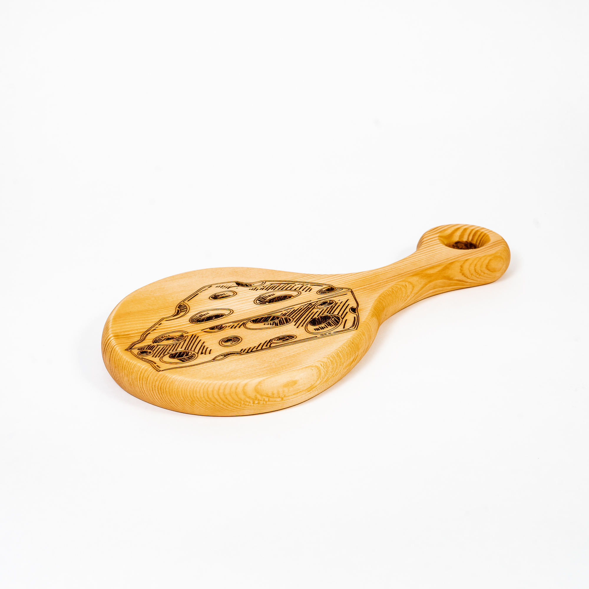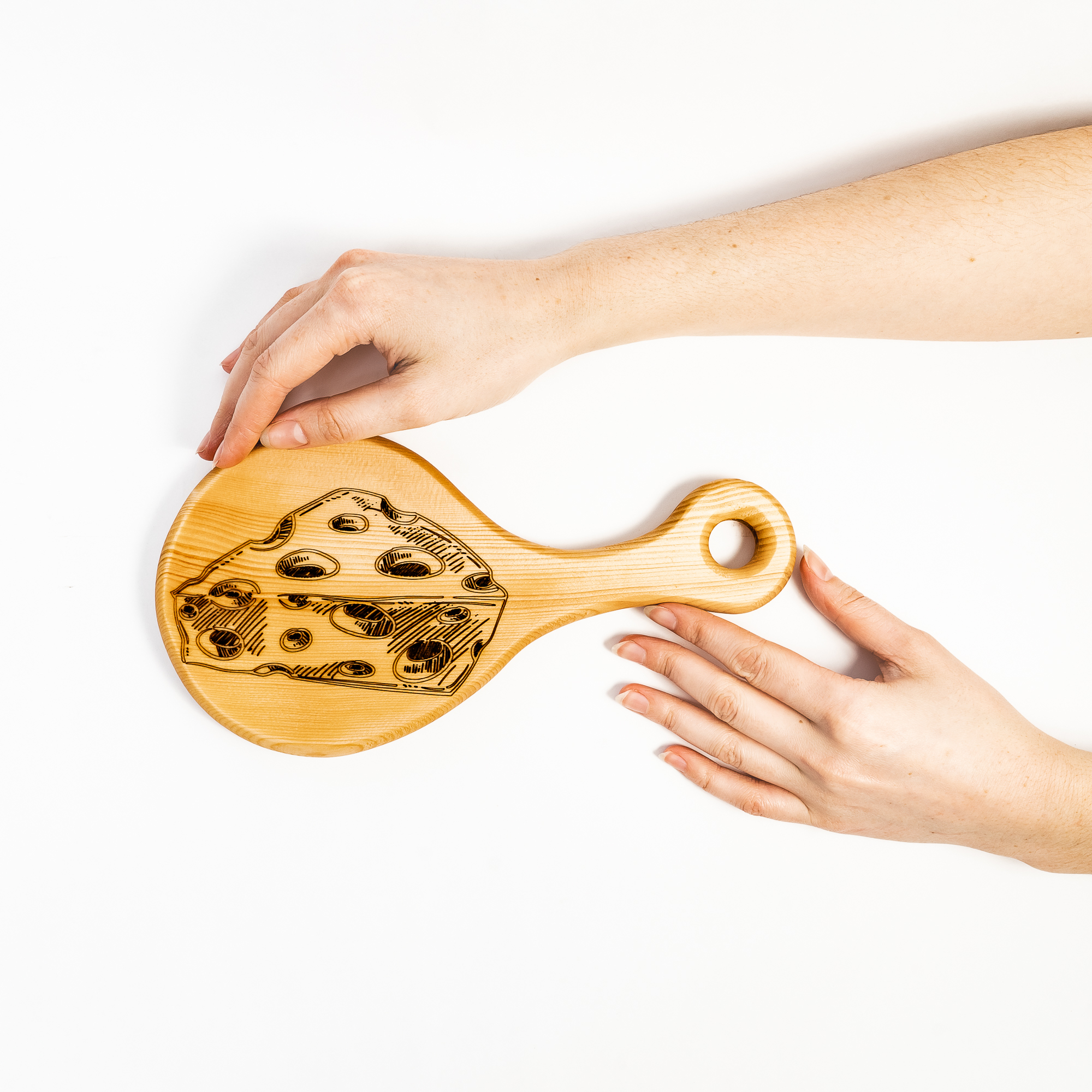 Деревянная доска для сыра из древесины кедра с гравировкой.
