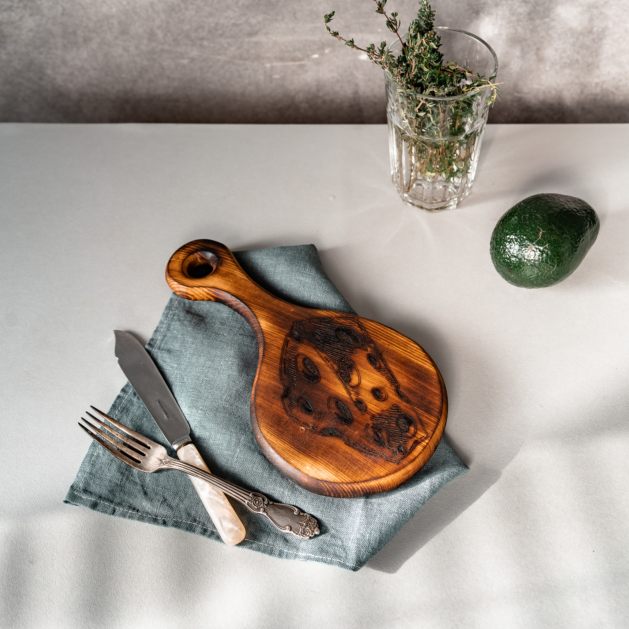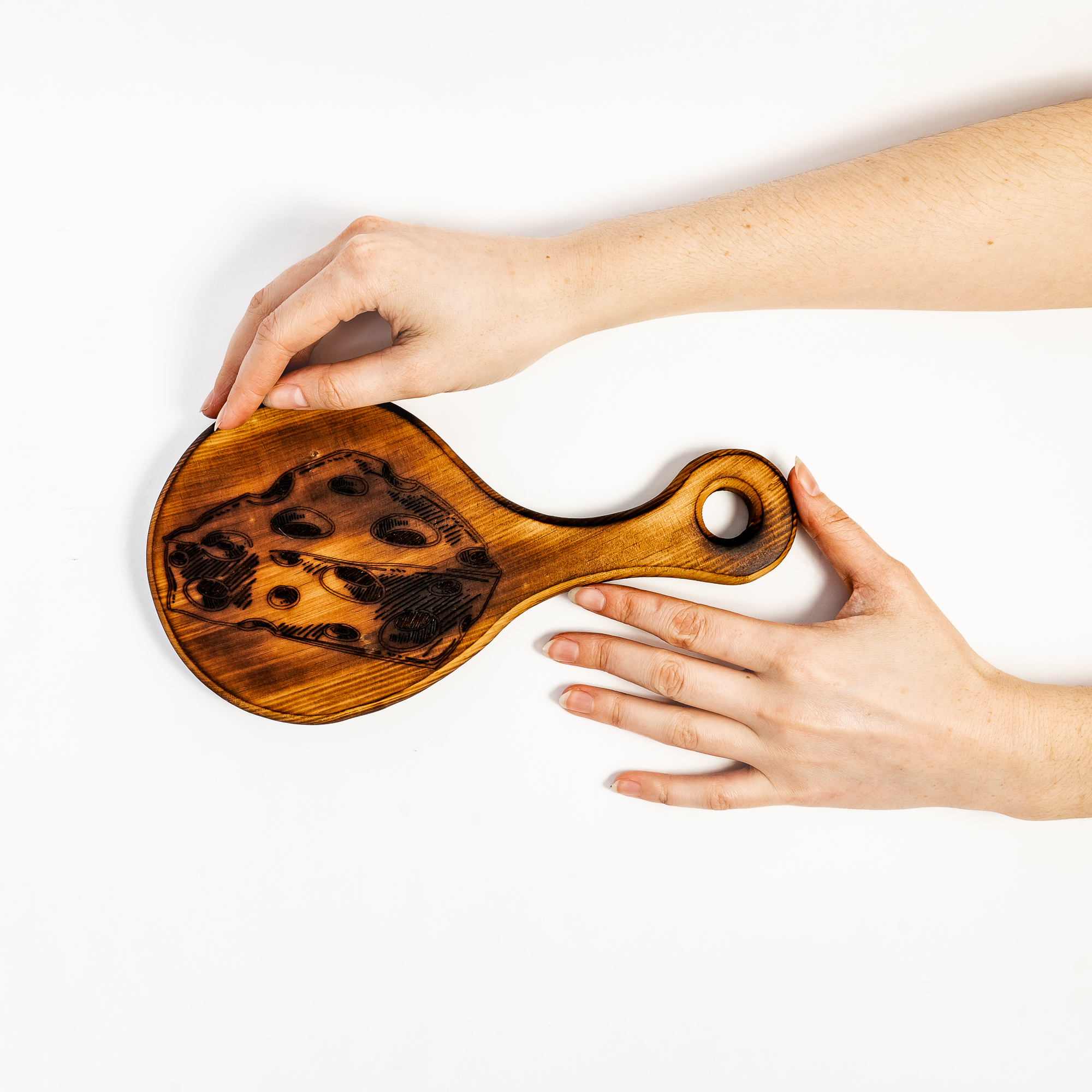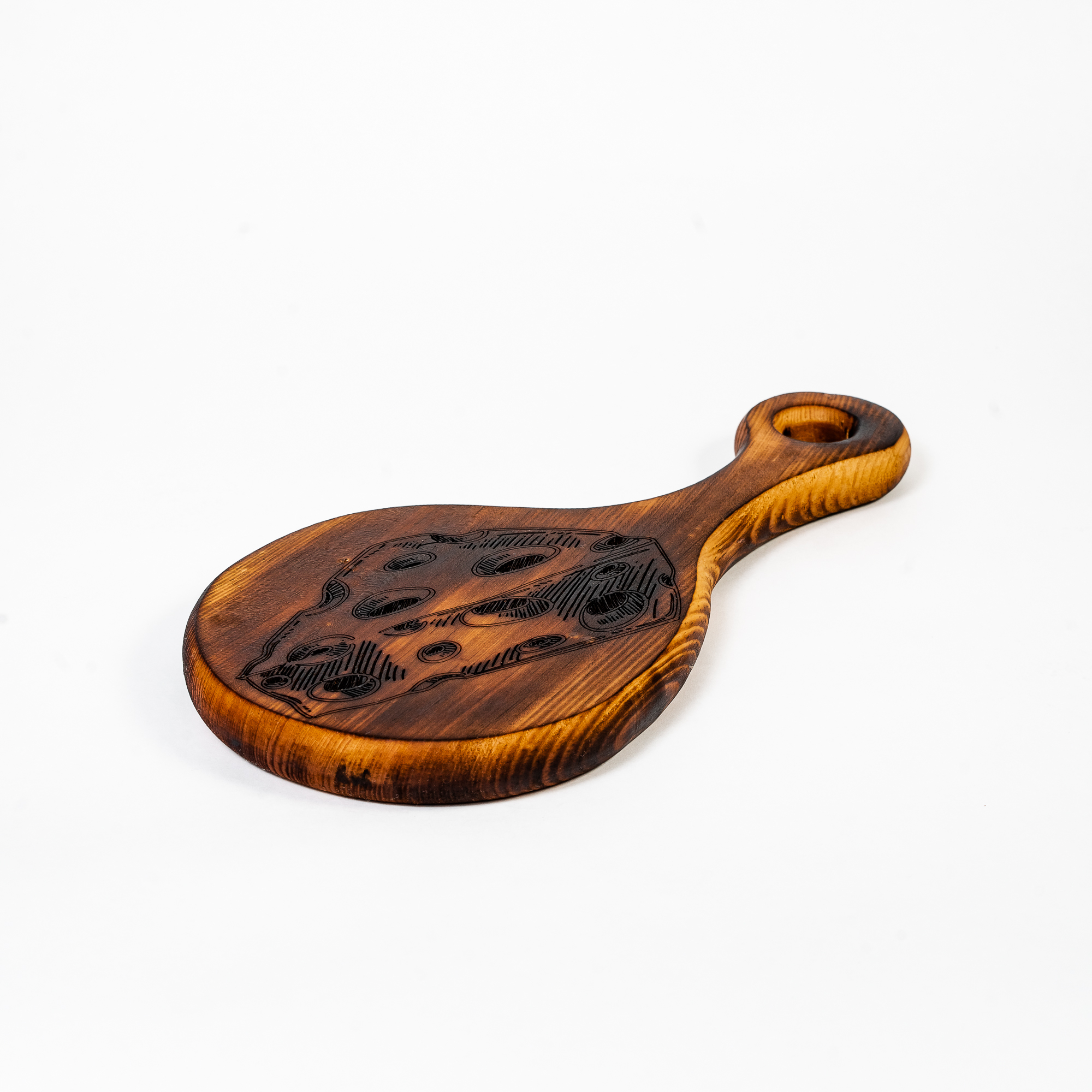 Деревянная доска для сыра из древесины кедра с гравировкой.