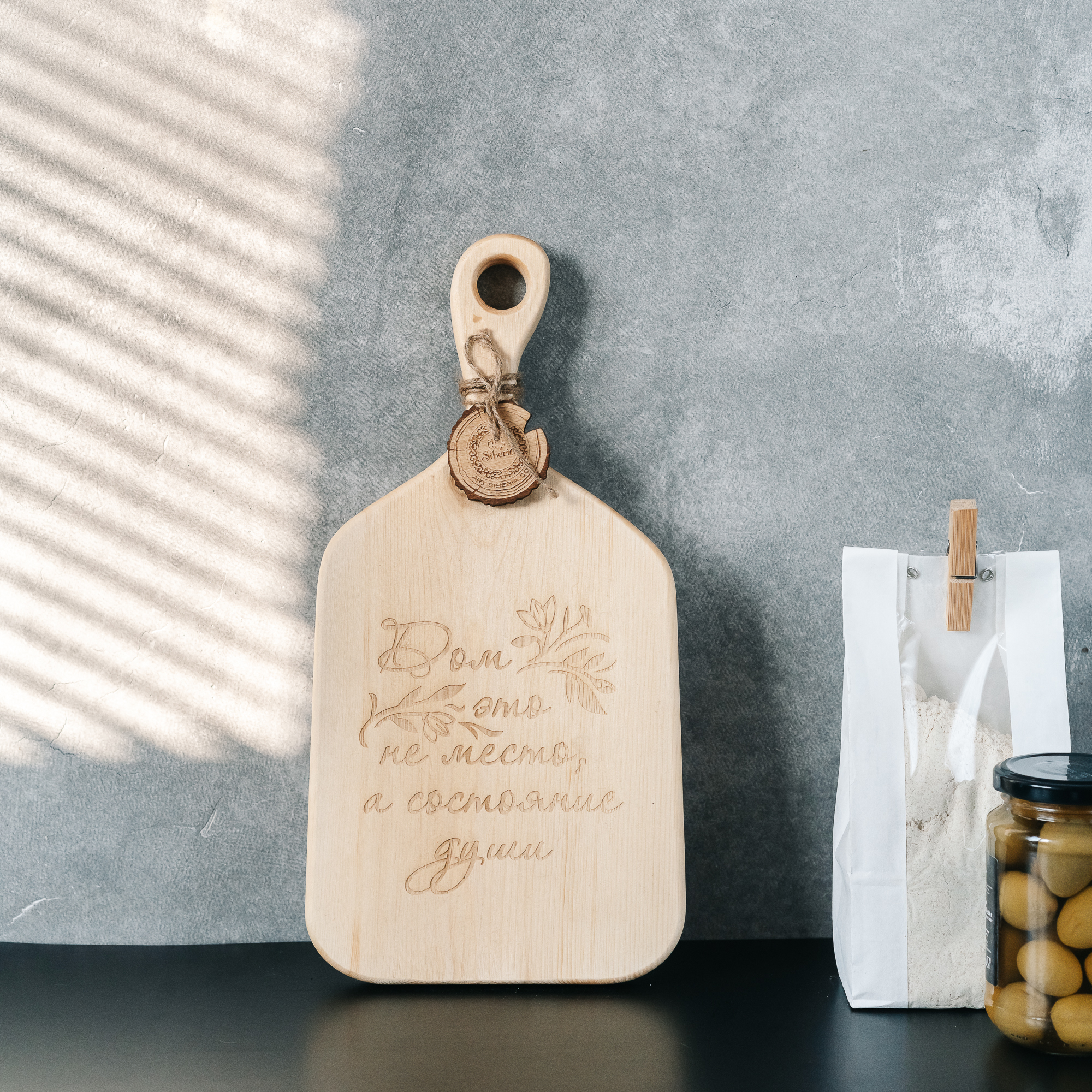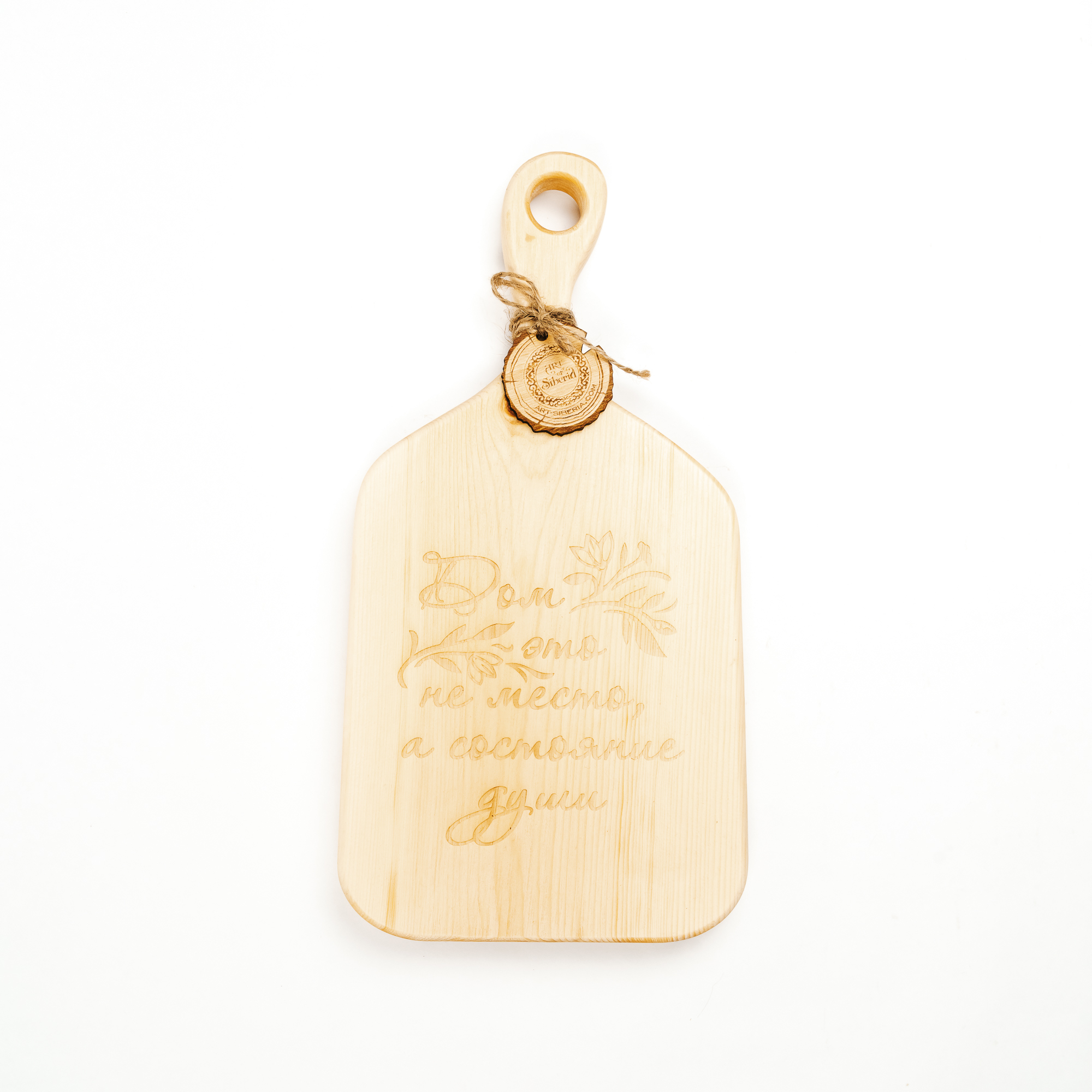 Деревянная доска из цельного куска древесины кедра с гравировкой "Дом -это не место, а состояние души".