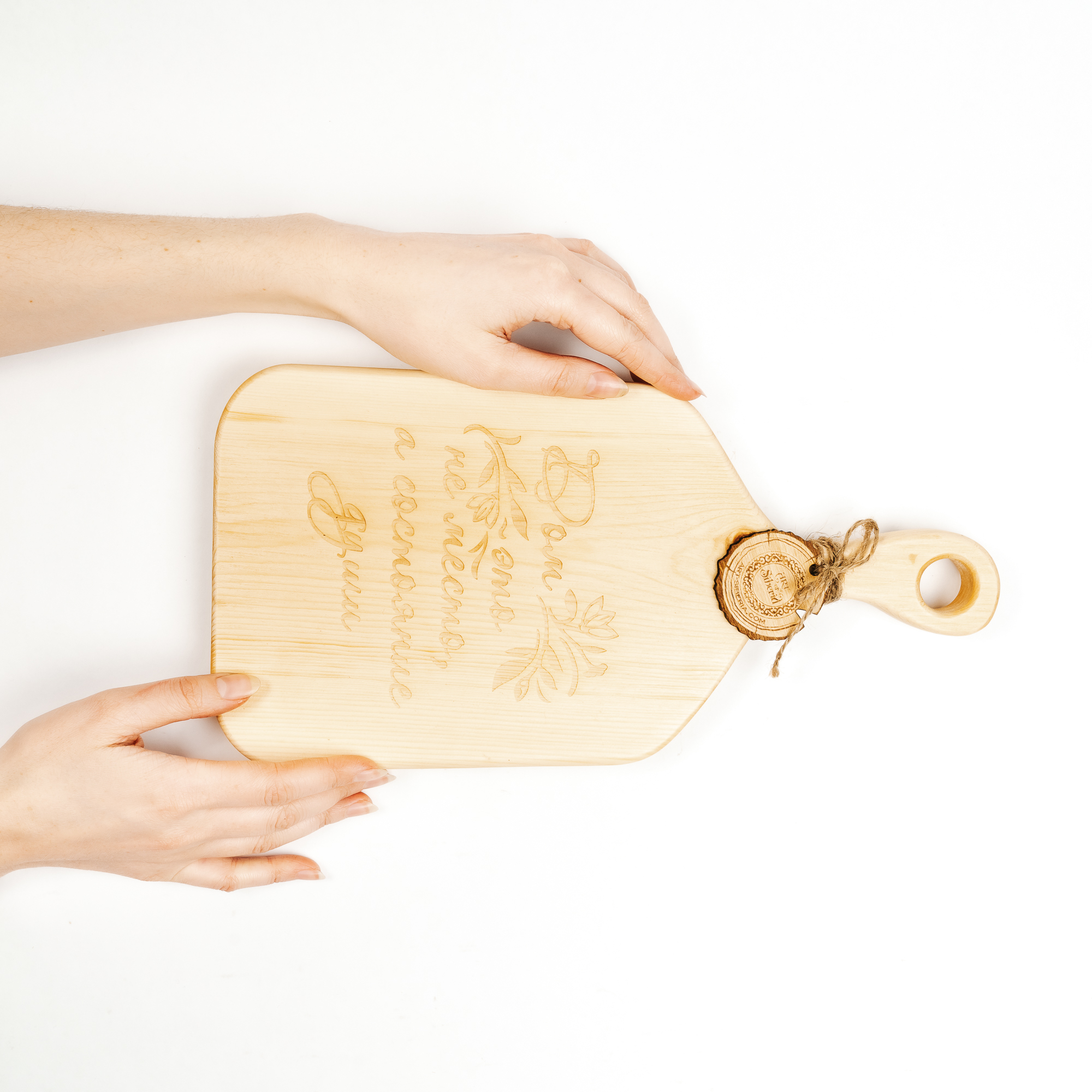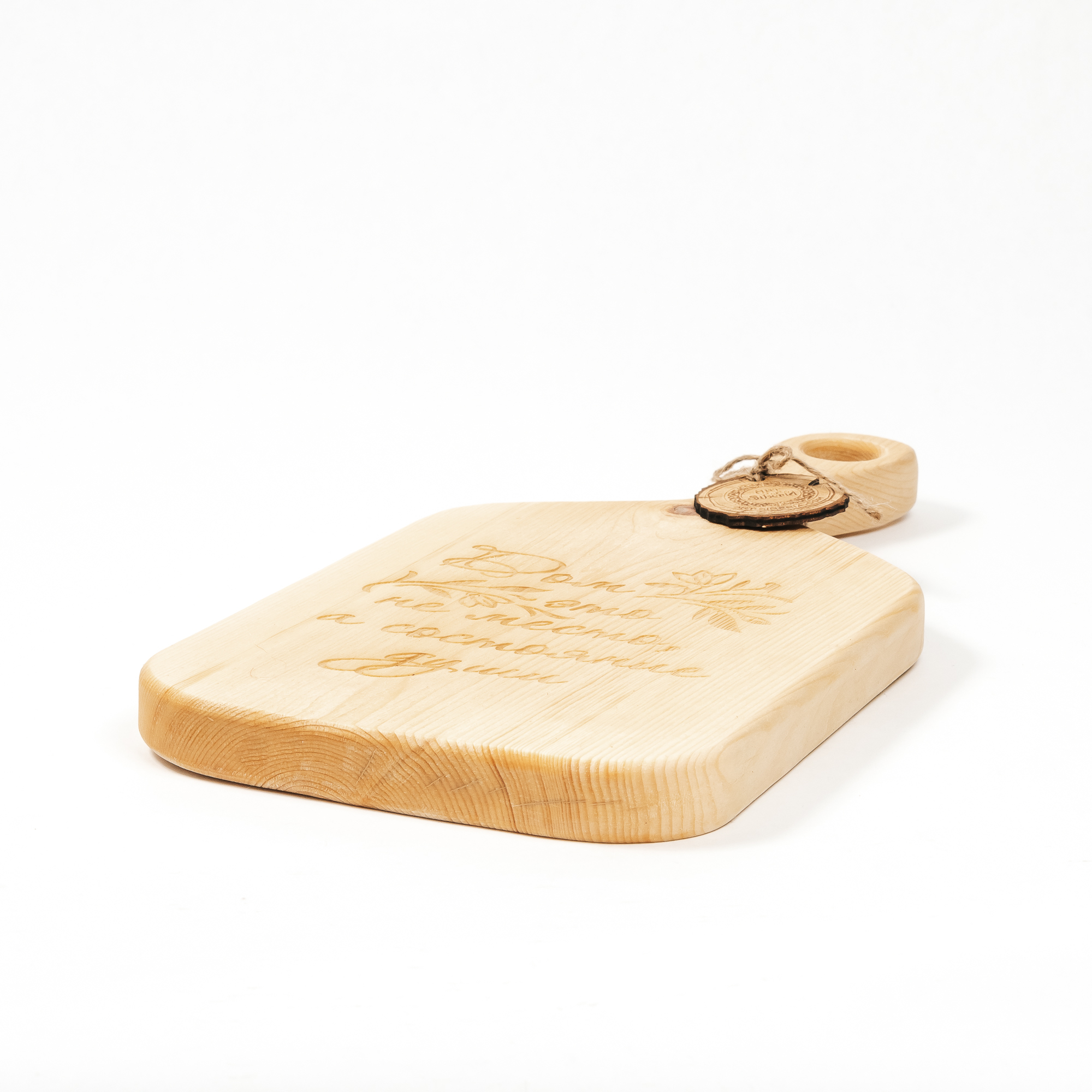 Деревянные доски имеют различную форму со специальным отверстием для крепления на стену. На фото доска разделочная из сибирского кедра.