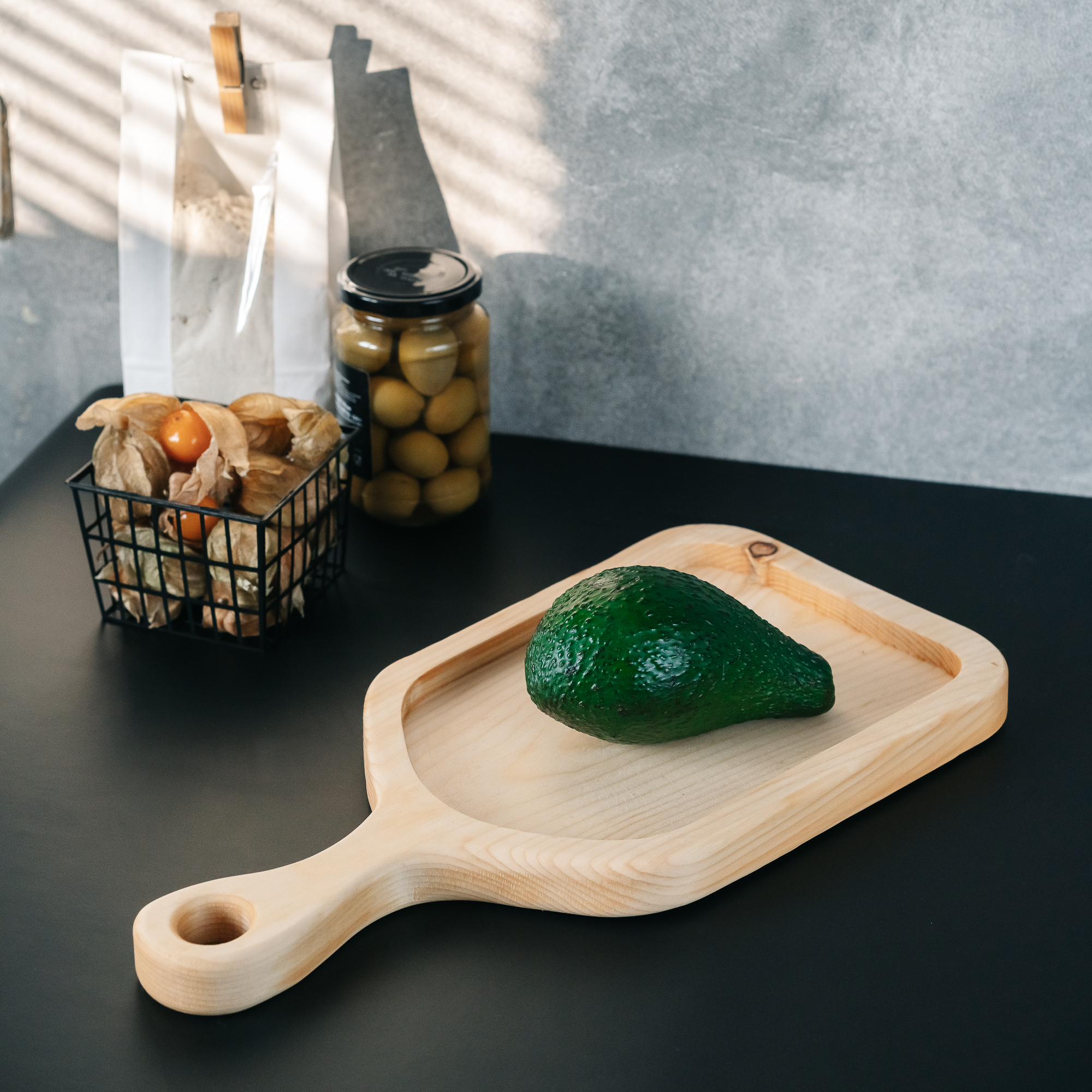 Деревянные доски имеют различную форму со специальным отверстием для крепления на стену. На фото доска разделочная из сибирского кедра.