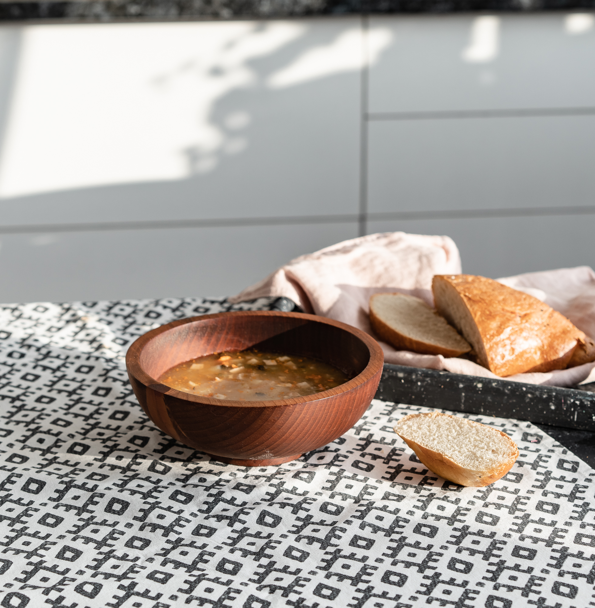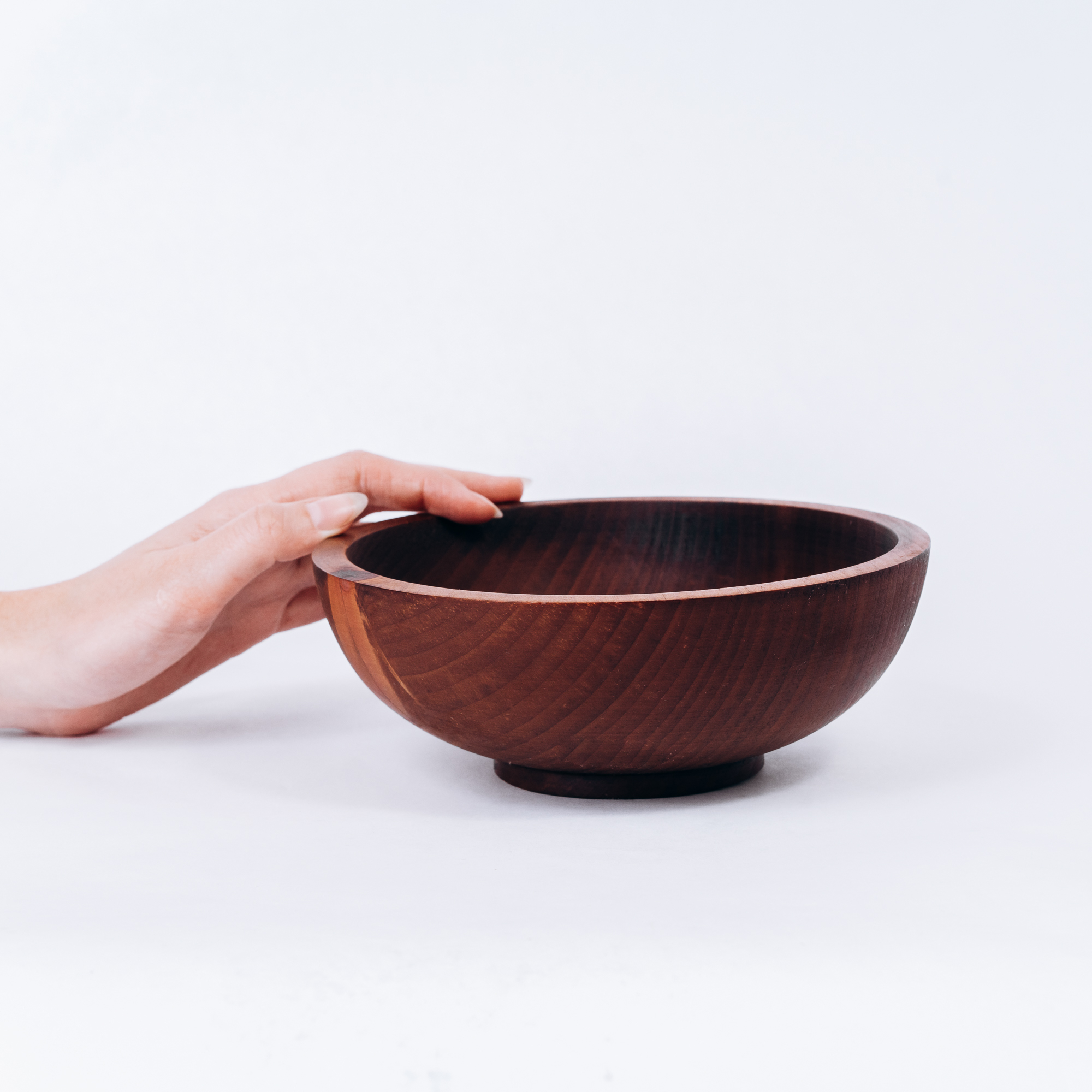 Покрыта для придания цвета водной морилкой "орех". Пропитана нашим составом на основе растительного масла, кедровой смолы и пчелиного воска. Перед использованием обязательно промыть теплой проточной водой, чтоб смыть остатки масла и морилки. Изделие может стать чуть светлее. Первое время возможно оставление следов от морилки, поэтому лучше для протирания использовать бумажные полотенца.. Для пищевых продуктов. Для горячего и для жидкого.