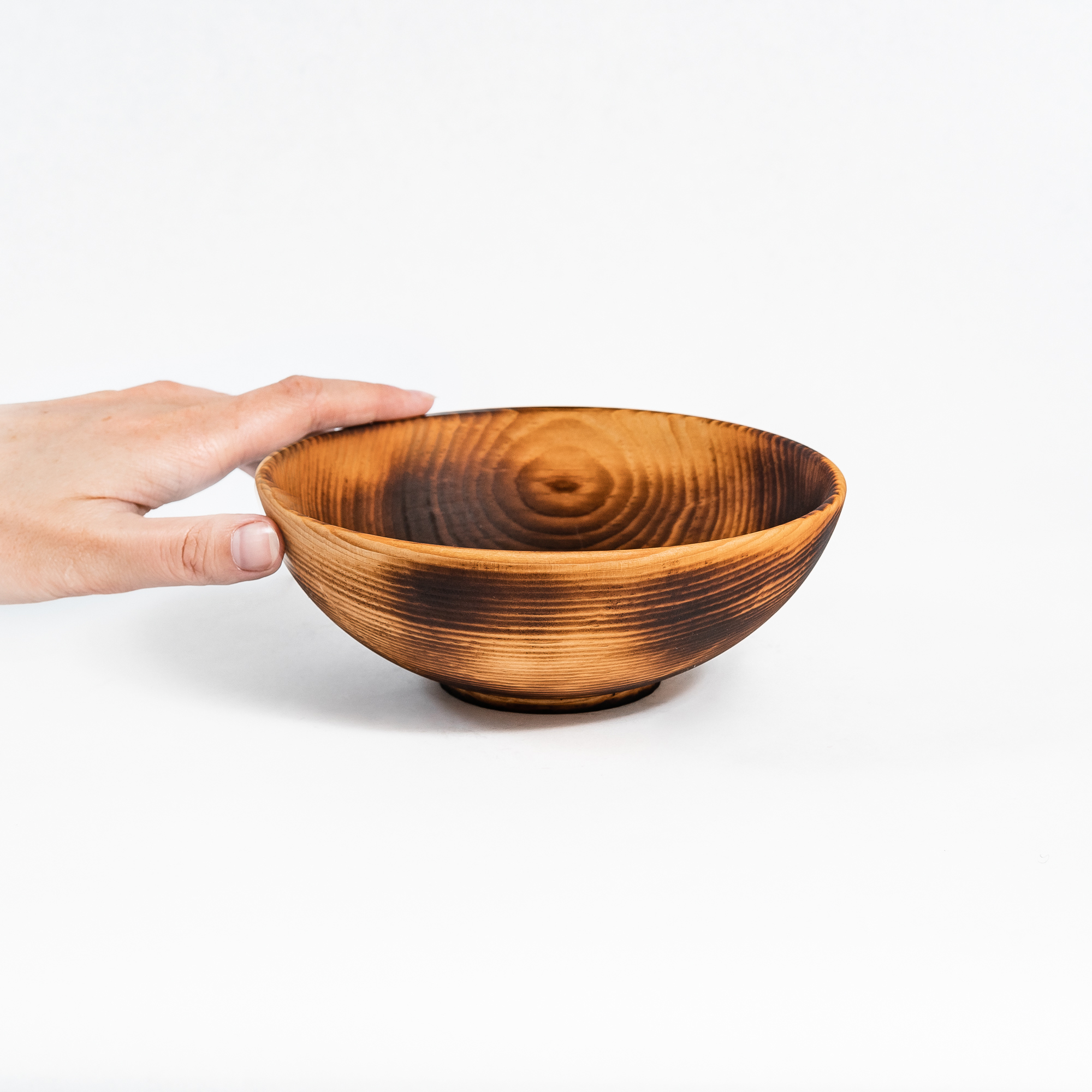 Деревянная глубокая тарелка из сибирского кедра серии "ЛОТОС" 160 мм.