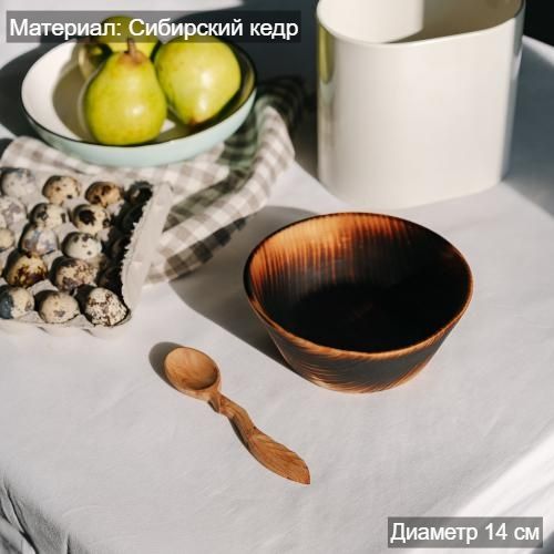 Деревянная глубокая тарелка из сибирского кедра 14см.T188