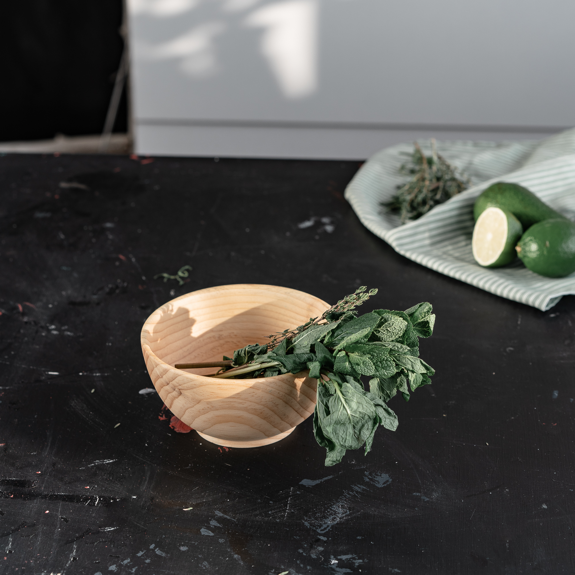 Естественный цвет без тонирования. По желанию доступны для покрытия цвета: "Орех", "Махагон" (Красное дерево) или "Дуб". Пропитан горячим пчелиным воском, растительным маслом и кедровой смолой. Ручная работа из цельного массива. Для любых пищевых продуктов.