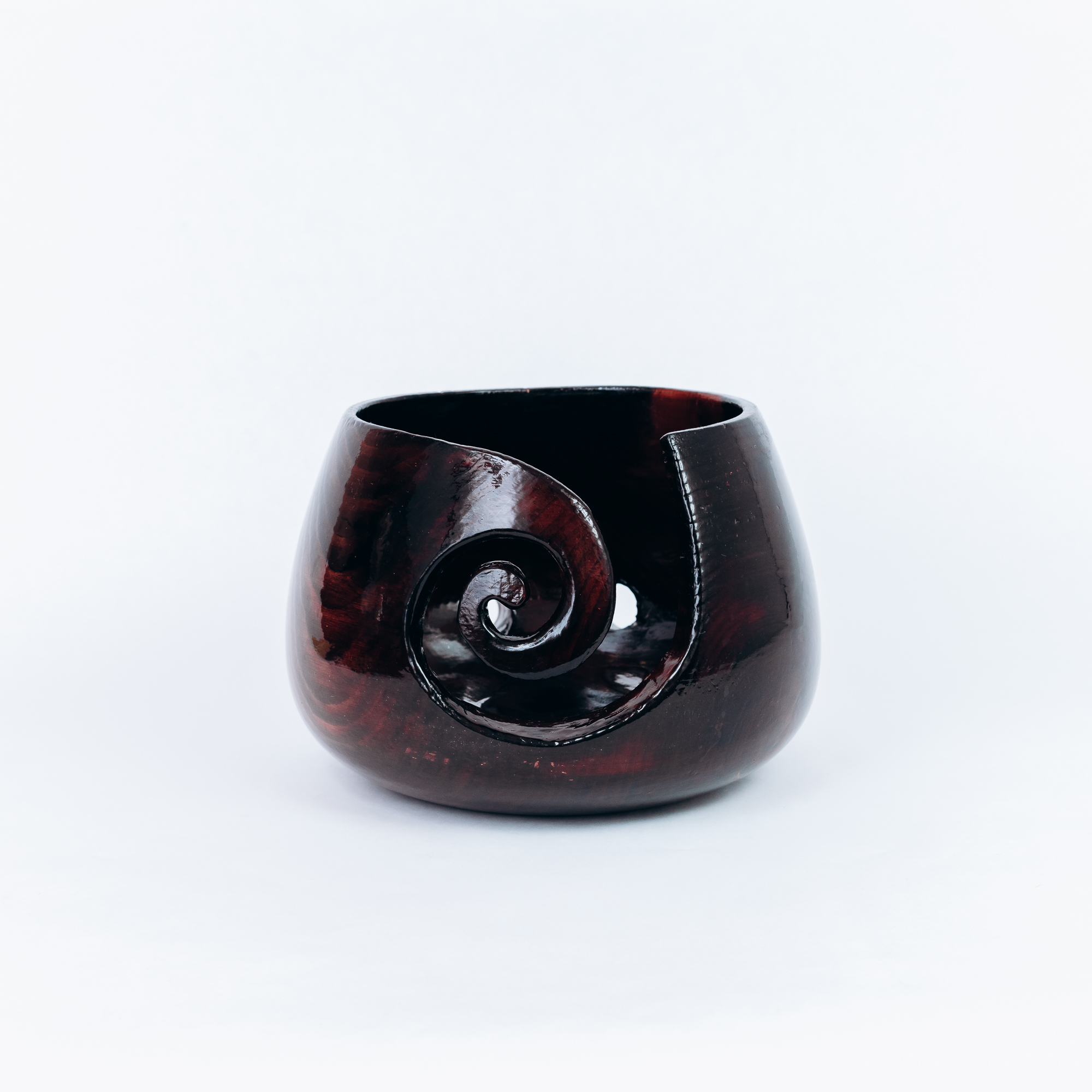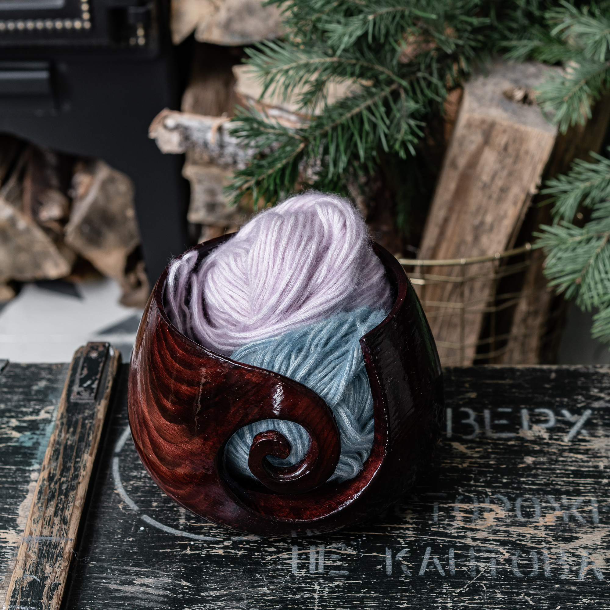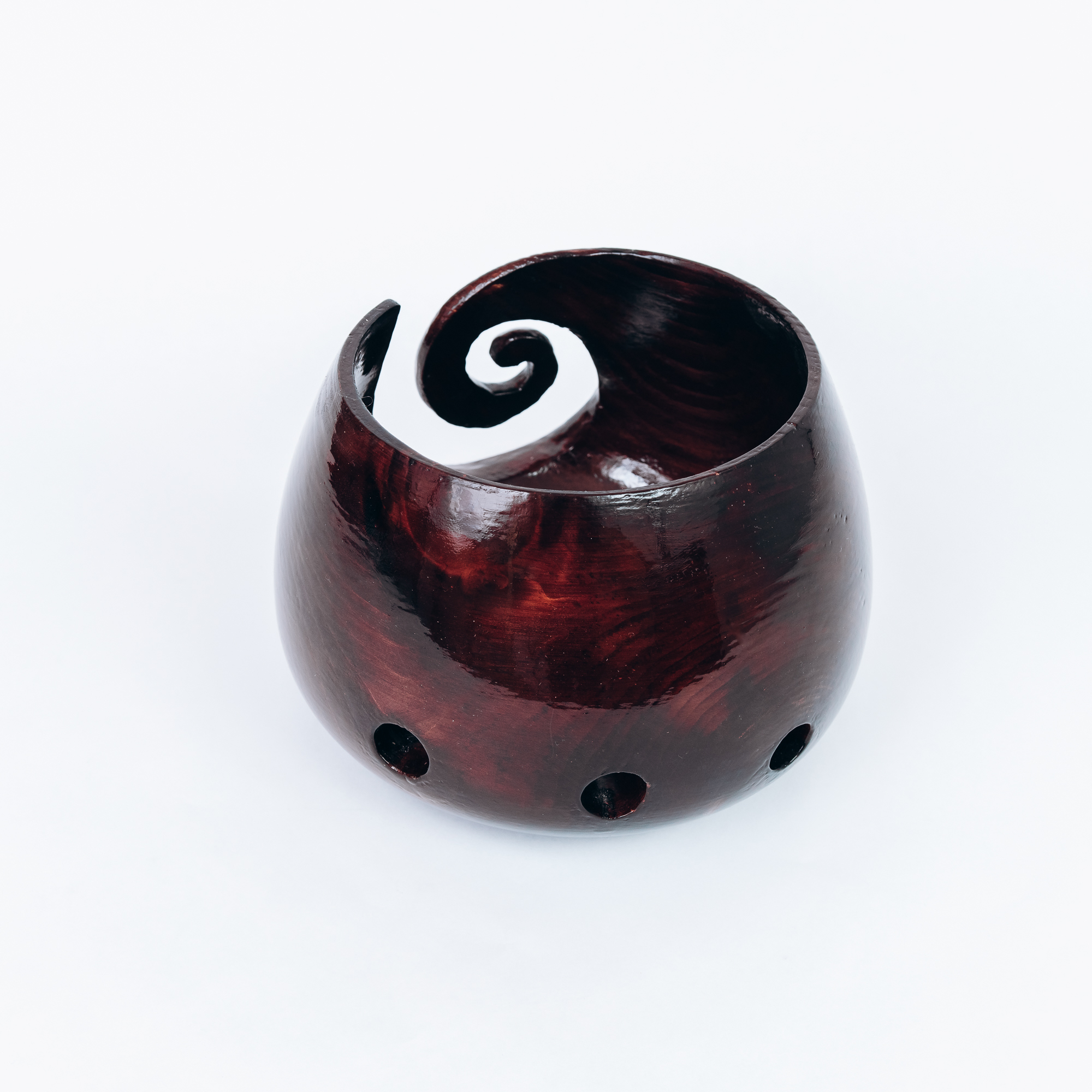 На фото - клубочница из натурального дерева сибирского кедра. Устойчивая, с прорезью для нитки, углублением и отверстиями для спиц. Покрыта лаком. Простая и удобная в использовании.