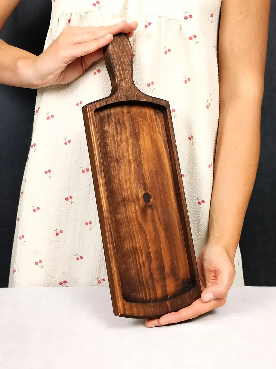 Менажница деревянная цельная из Сибирского кедра ручной работы для кухни. Выполнена из 100% массива, полностью цельная. Многие хозяйки мечтают, чтобы ее семейный обед или праздничный ужин был таким, как в престижном дорогом ресторане, поэтому озадачиваются сервировкой и красивой подачей блюд. В этом случае можно воспользоваться нашей новинкой - менажница для подачи блюд, нарезки, сервировки! Слово французского происхождения, от melanger – «смешивать», то есть в буквальном смысле менажница – это тарелка, на которой смешаны разные блюда. Наша экологичная посуда из дерева придется по душе каждому, кто любит вкусно поесть и получить удовольствие от еды. Деревянная менажница для сервировки обладает следующими преимуществами: красивая текстура древесины, очень прочная, натуральная и долговечная. Фитонциды, входящие в состав кедровой древесины, имеют антибактериальные свойства. Они способны обеззараживать воздух, убивать простейшие микроорганизмы и вирусы. Поднос из дерева станет отличным подарком на Новый год, день рождения и новоселье. Менажница подходит для горячих и холодных блюд, для сыра, для закусок и фруктов. Возможно наличие сучков. Идеальная шлифовка позволяет изделию быть очень гладким. Менажница пропитана натуральным маслом, которое, необходимо смыть в теплой проточной воде перед использованием. Не замачивать! Не использовать в посудомоечной машине! Только деликатная мойка. После использования насухо вытереть. Размеры менажницы: Длина 40 см, Ширина 13 мм, высота 3 см, Вес 195 грамм. Цвет "орех".