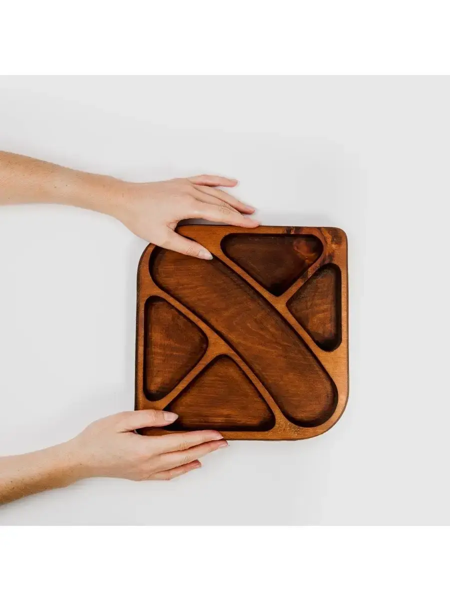 Менажница деревянная цельная из Сибирского кедра ручной работы для кухни. Выполнена из 100% массива, полностью цельная. Многие хозяйки мечтают, чтобы ее семейный обед или праздничный ужин был таким, как в престижном дорогом ресторане, поэтому озадачиваются сервировкой и красивой подачей блюд. В этом случае можно воспользоваться нашей новинкой - менажница для подачи блюд! Слово французского происхождения, от melanger – «смешивать», то есть в буквальном смысле менажница – это тарелка, на которой смешаны разные блюда. Наша экологичная посуда из дерева придется по душе каждому, кто любит вкусно поесть и получить удовольствие от еды. Деревянная менажница для сервировки обладает следующими преимуществами: красивая текстура древесины, очень прочная, натуральная и долговечная. Фитонциды, входящие в состав кедровой древесины, имеют антибактериальные свойства. Они способны обеззараживать воздух, убивать простейшие микроорганизмы и вирусы. Поднос из дерева станет отличным подарком на Новый год, день рождения и новоселье. Менажница подходит для горячих и холодных блюд, для сыра, для закусок и фруктов. Возможно наличие сучков. Идеальная шлифовка позволяет изделию быть очень гладким. Менажница пропитана натуральным маслом, которое, необходимо смыть в теплой проточной воде перед использованием. Не замачивать! Не использовать в посудомоечной машине! Только деликатная мойка. После использования насухо вытереть. Размеры менажницы: Длина 245 мм, Ширина 245 мм, Высота 30 мм, Вес 315 грамм.