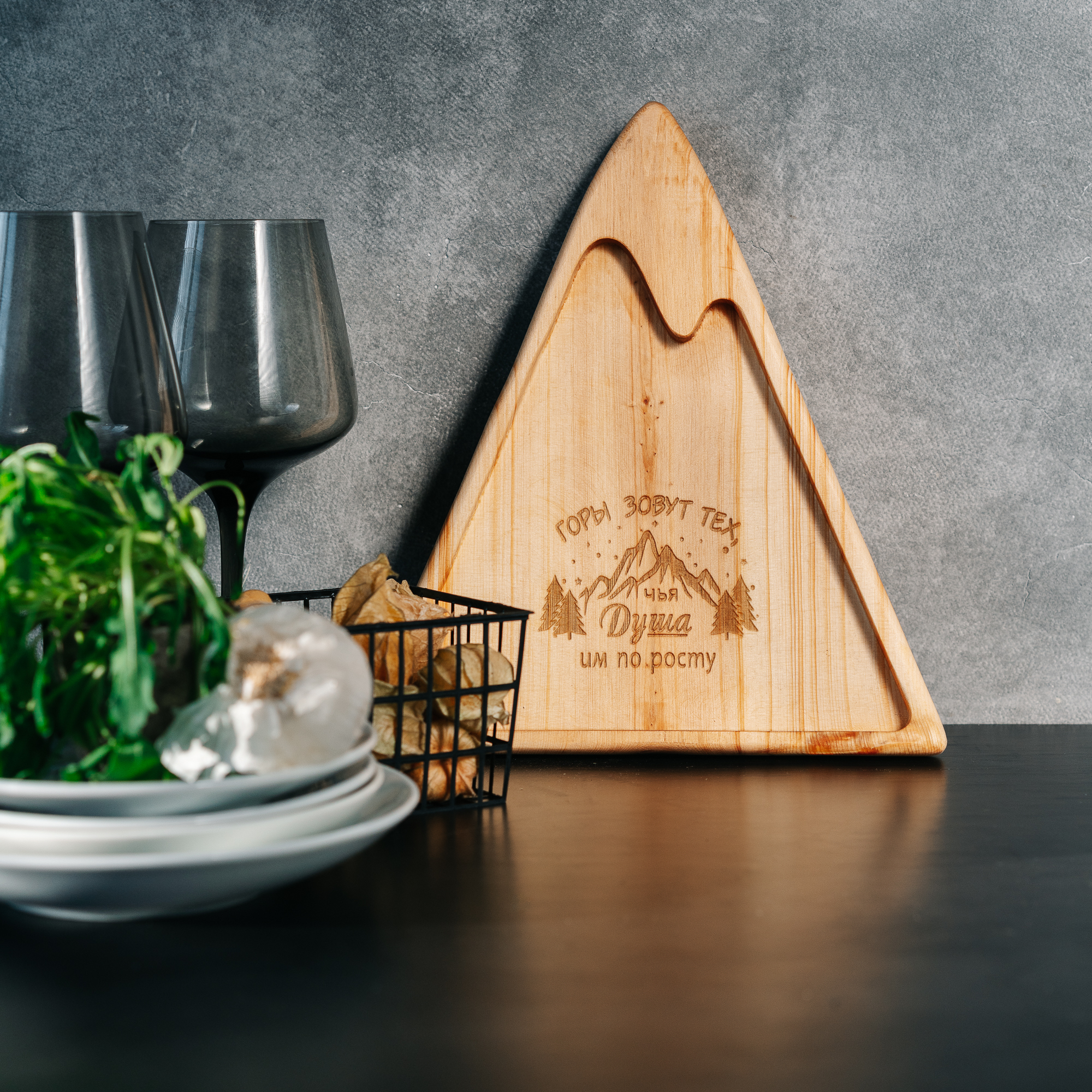Деревянная менажница из кедра для подачи блюд и закусок с гравировкой "Горы зовут тех, чья душа им по росту". Любителям натуральности придется по душе наша деревянная менажница, имеющая такие плюсы, как красивый узор древесины, не бьется, натуральна, долговечна и подходит для различных блюд. А антибактериальные свойства кедра привлекают ценителей чистоты. Подходит для любых видов закусок: от мясной нарезки до конфет! Возможно наличие сучков. Пропитана нашим составом на основе растительного масла, кедровой смолы и пчелиного воска.