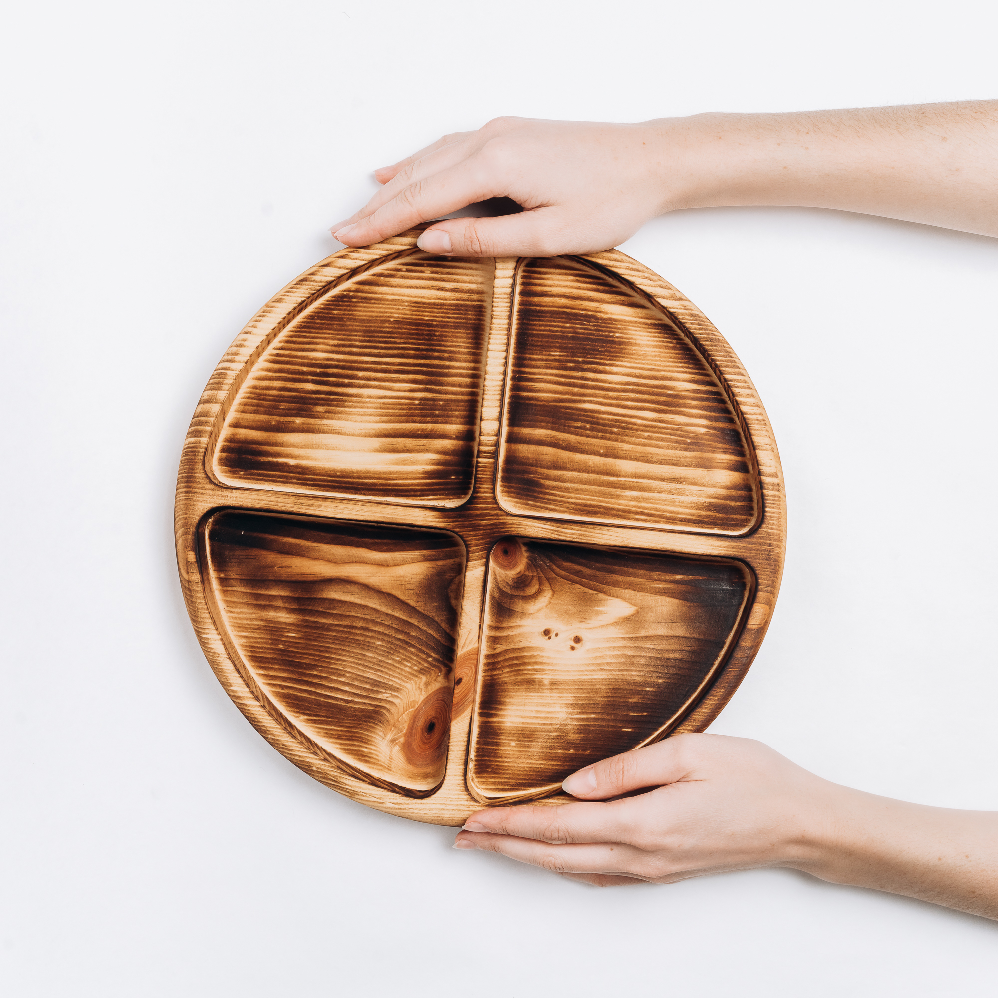 Деревянная менажница из кедра для подачи блюд и закусок. Любителям натуральности придется по душе наша деревянная менажница, имеющая такие плюсы, как красивый узор древесины, не бьется, натуральна, долговечна и подходит для различных блюд. А антибактериальные свойства кедра привлекают ценителей чистоты. Подходит под любые виды закусок! Возможно наличие сучков. Покрыта нашим составом на основе растительного масла, кедровой смолы и пчелиного воска.