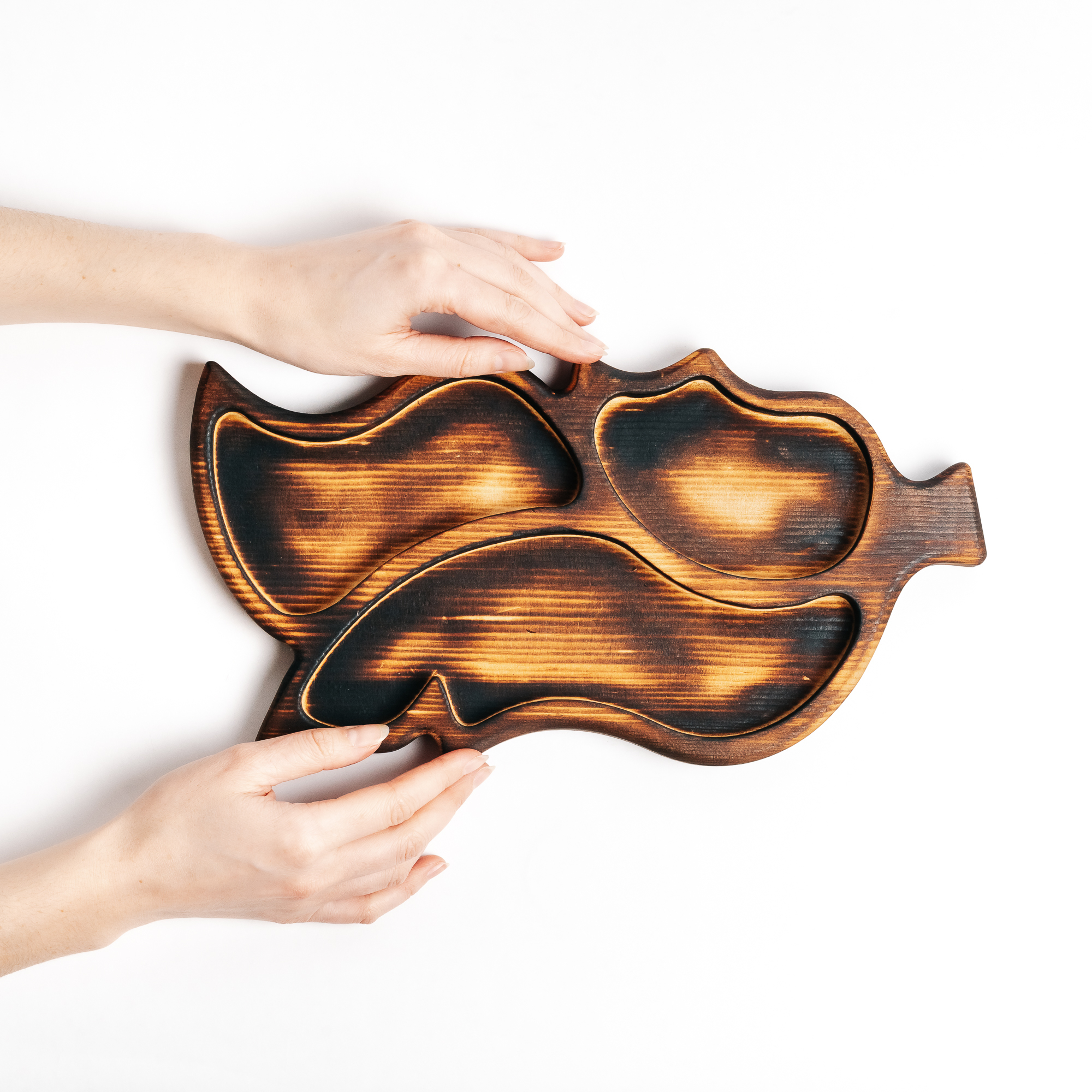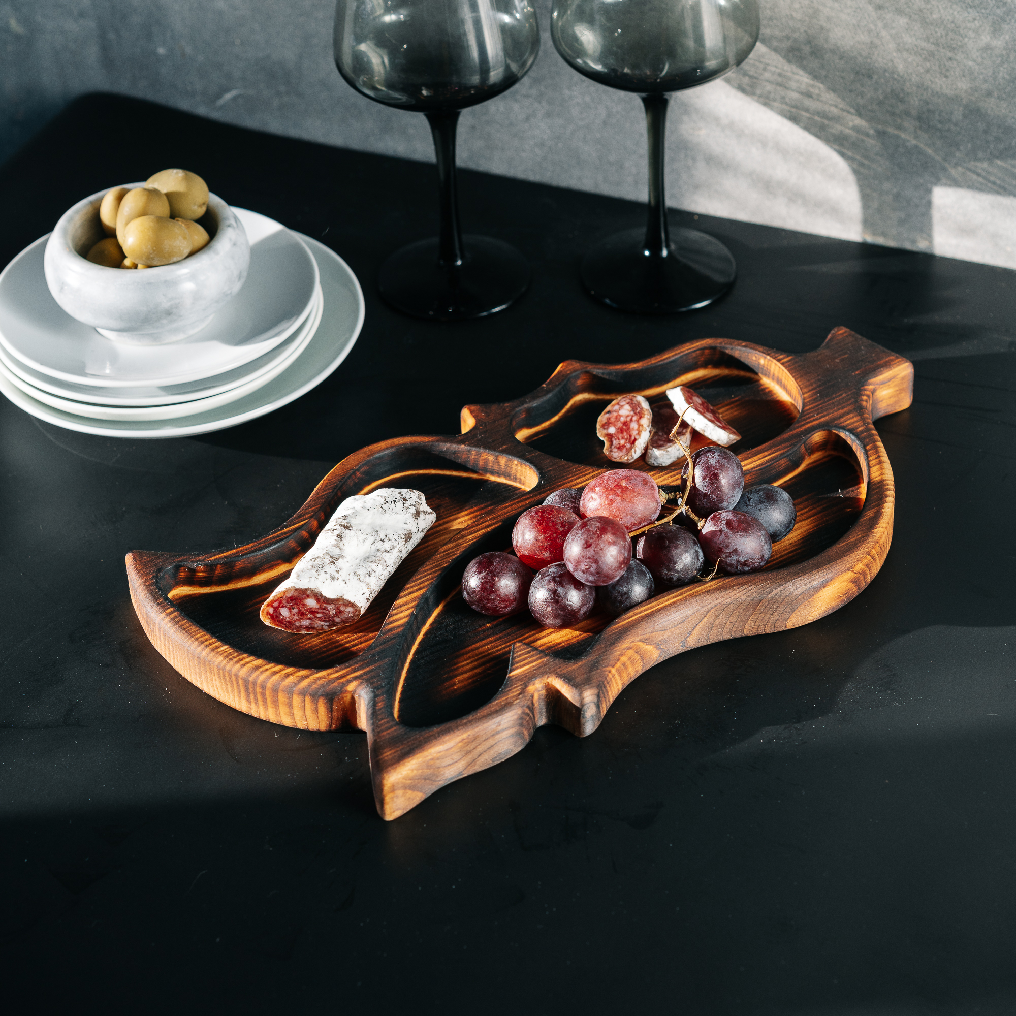 Деревянная менажница из кедра для подачи блюд и закусок "лист".