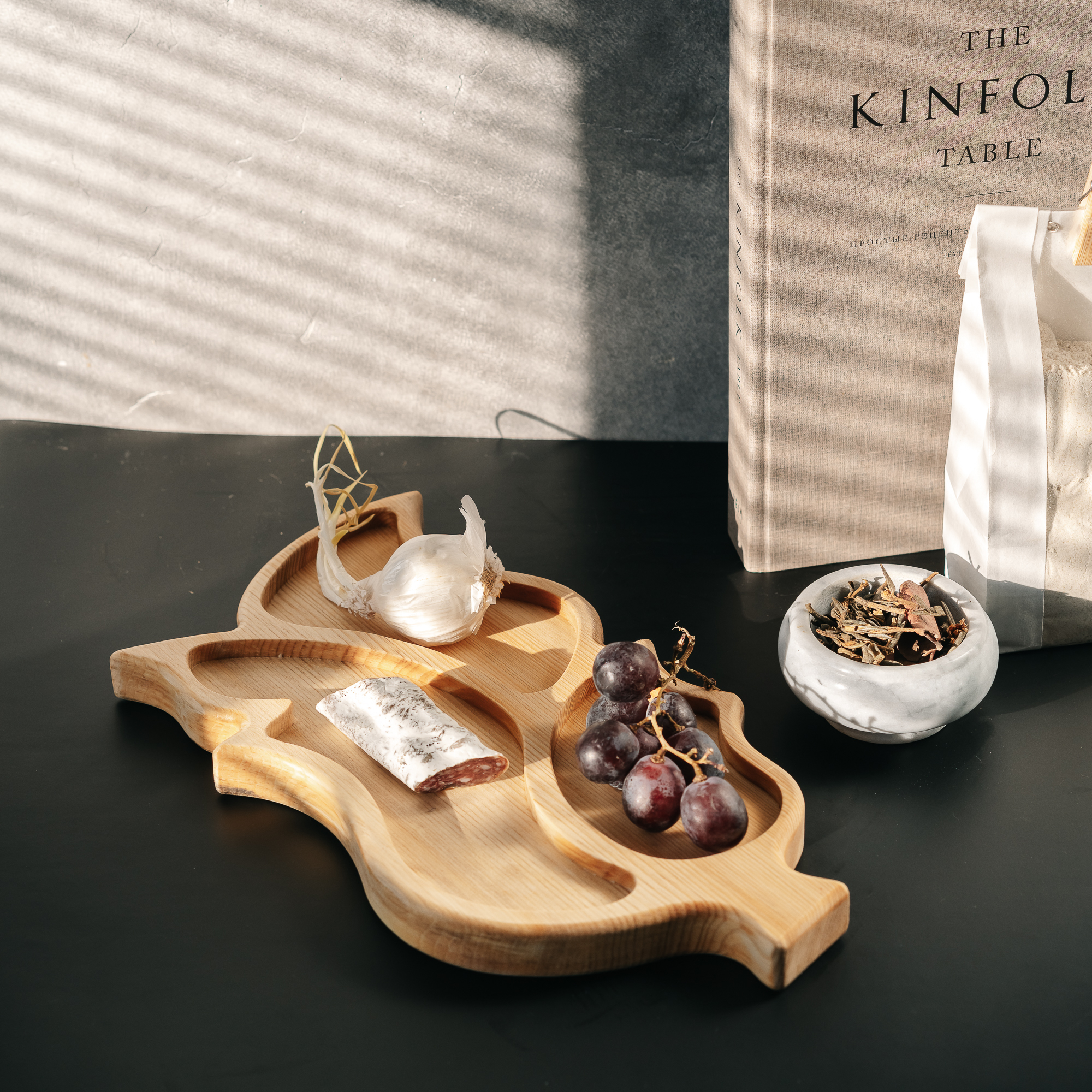 Деревянная менажница из кедра для подачи блюд и закусок "лист".