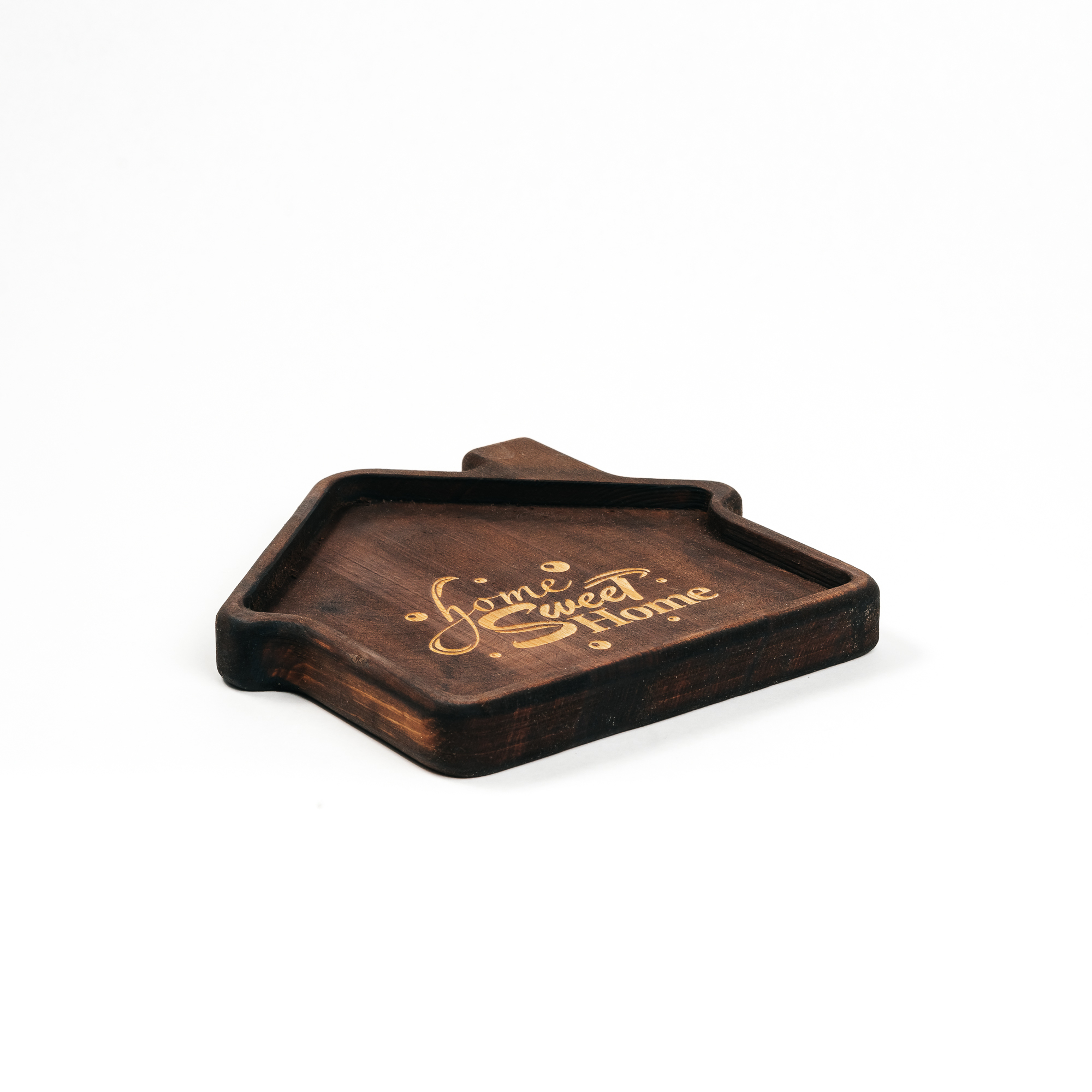 Деревянная менажница из кедра для подачи блюд и закусок с гравировкой "Home, sweet home!"