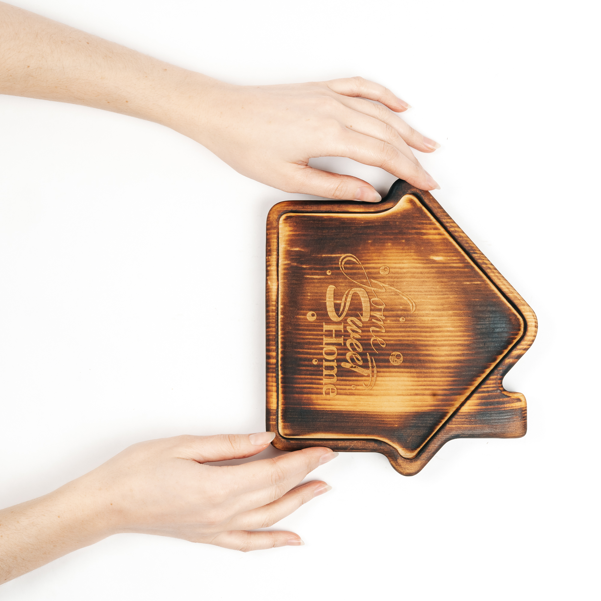 Деревянная менажница из кедра для подачи блюд и закусок с гравировкой "Home, sweet home!". Любителям натуральности придется по душе наша деревянная менажница, имеющая такие плюсы, как красивый узор древесины, не бьется, натуральна, долговечна и подходит для различных блюд. А антибактериальные свойства кедра привлекают ценителей чистоты. Подходит для любых видов закусок! Возможно наличие сучков. Пропитана нашим составом на основе растительного масла, кедровой смолы и пчелиного воска.