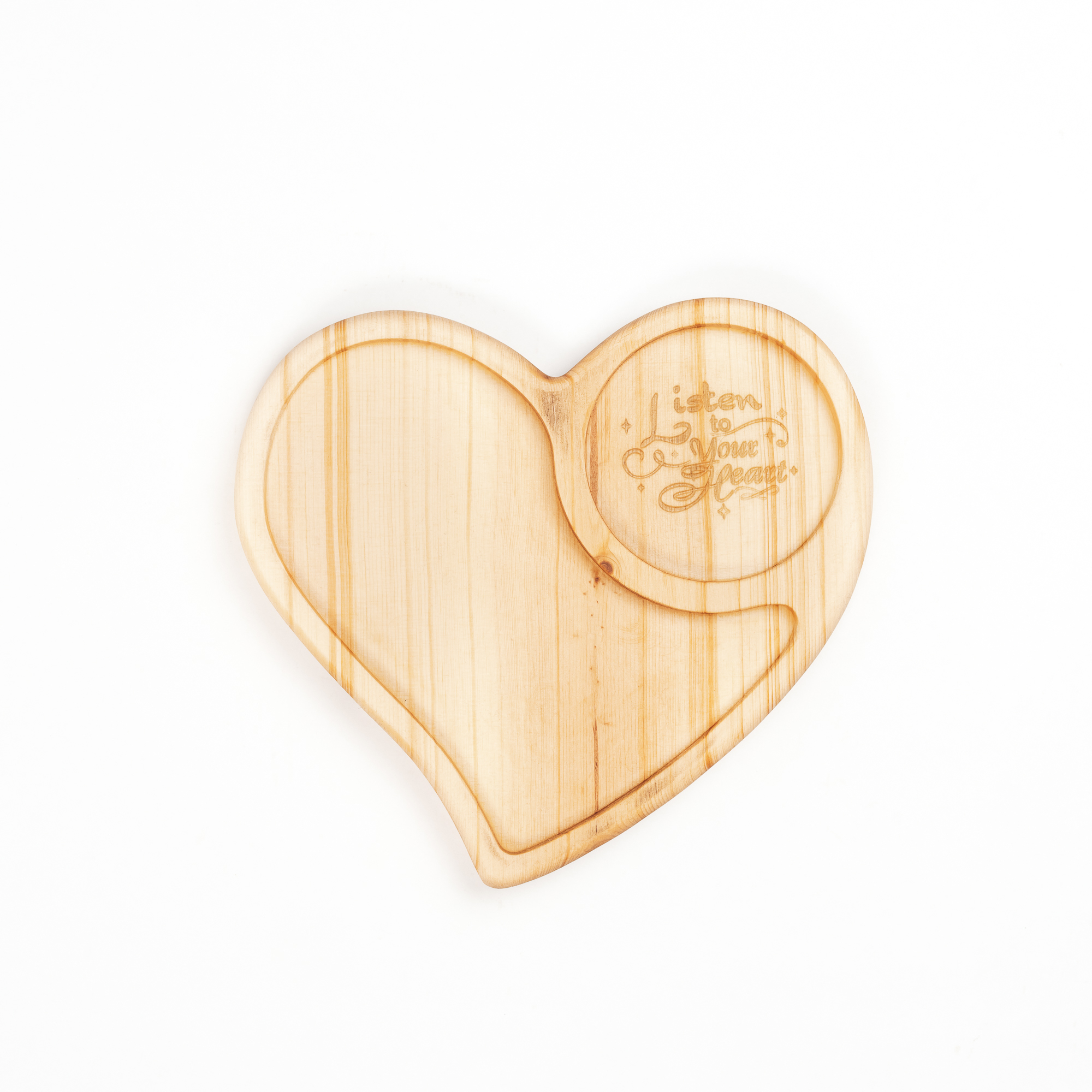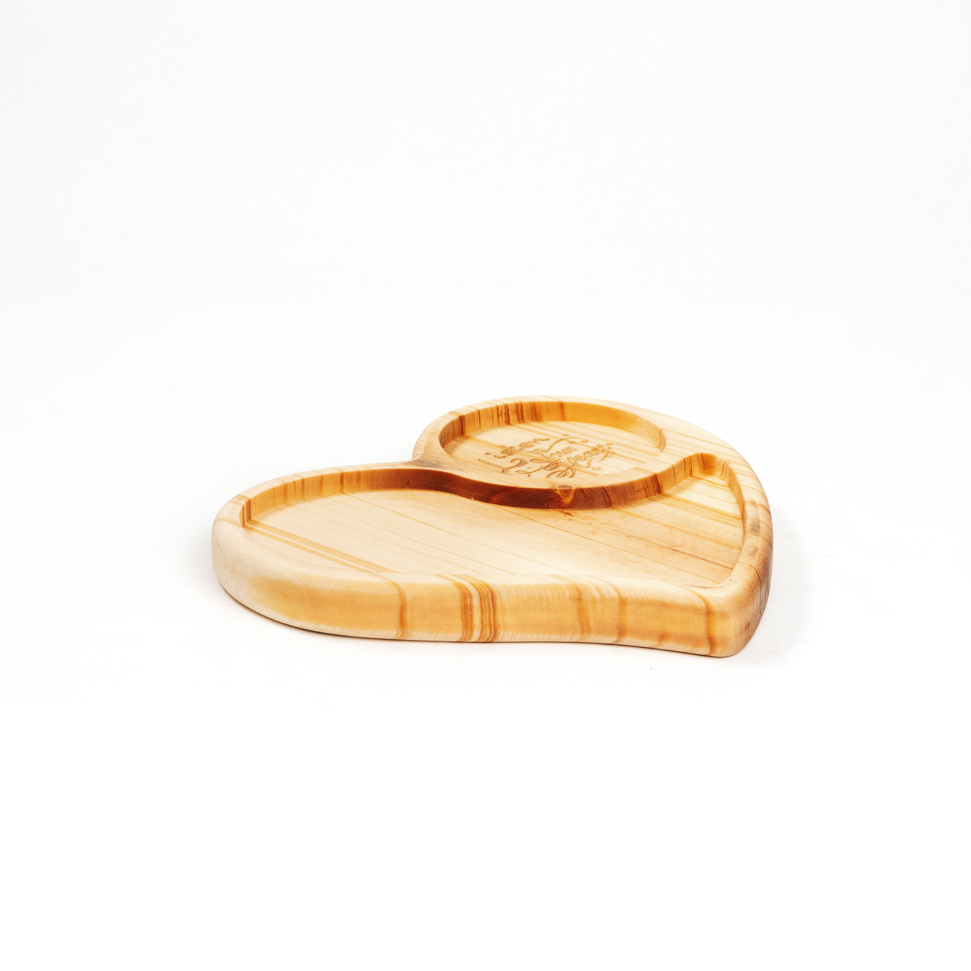 Деревянная менажница из кедра для подачи блюд и закусок с гравировкой "Listen to your heart". Любителям натуральности придется по душе наша деревянная менажница, имеющая такие плюсы, как красивый узор древесины, не бьется, натуральна, долговечна и подходит для различных блюд. А антибактериальные свойства кедра привлекают ценителей чистоты. Подходит для всех видов закусок! Возможно наличие сучков. Пропитана нашим составом на основе растительного масла, кедровой смолы и пчелиного воска.