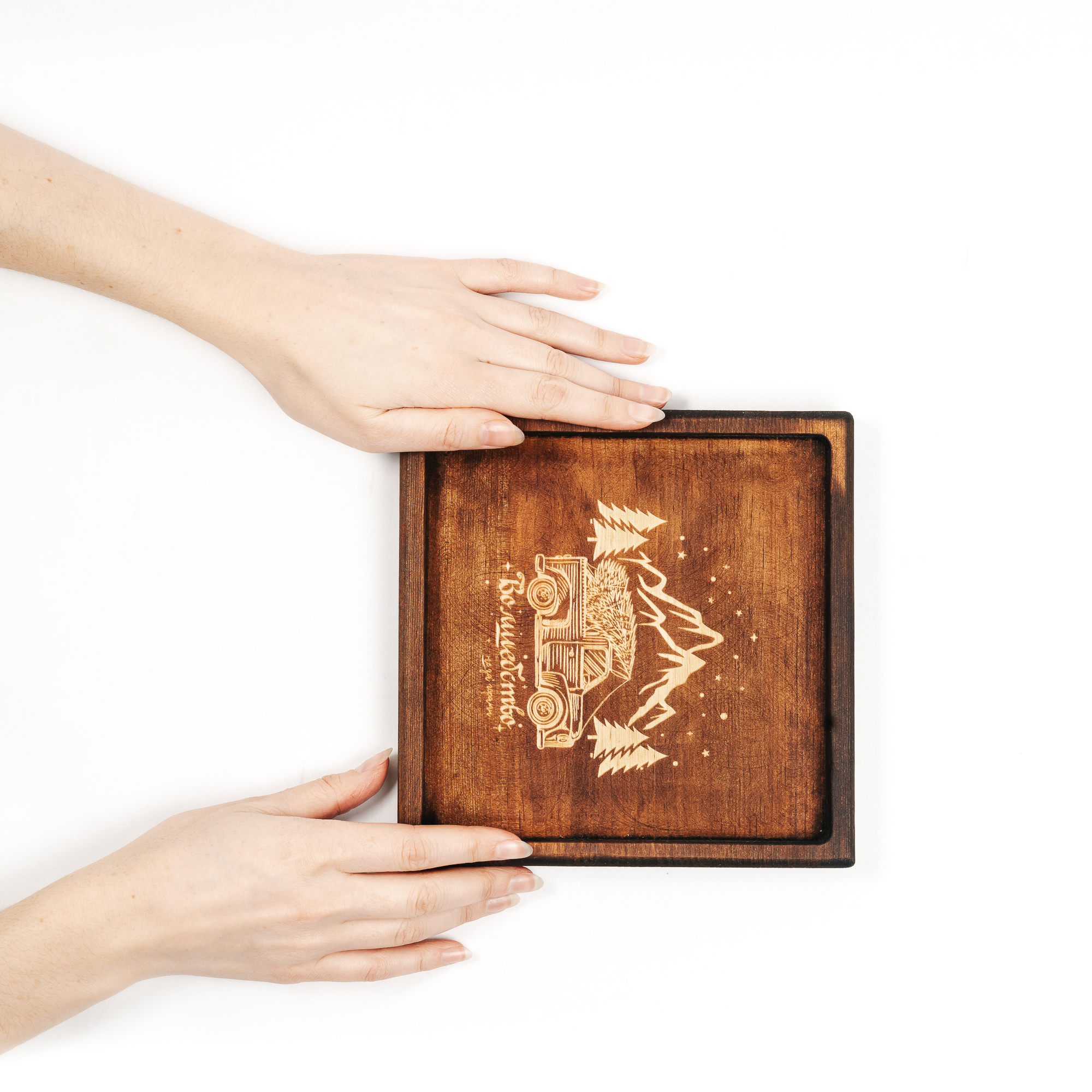 Деревянная менажница из кедра для подачи блюд и закусок с гравировкой "Волшебство не за горами".Любителям натуральности придется по душе наша деревянная менажница, имеющая такие плюсы, как красивый узор древесины, не бьется, натуральна, долговечна и подходит для различных блюд. А антибактериальные свойства кедра привлекают ценителей чистоты. Подходит для любых видов закусок: от мясной нарезки до конфет! Пропитана нашим составом на основе растительного масла, кедровой смолы и пчелиного воска.