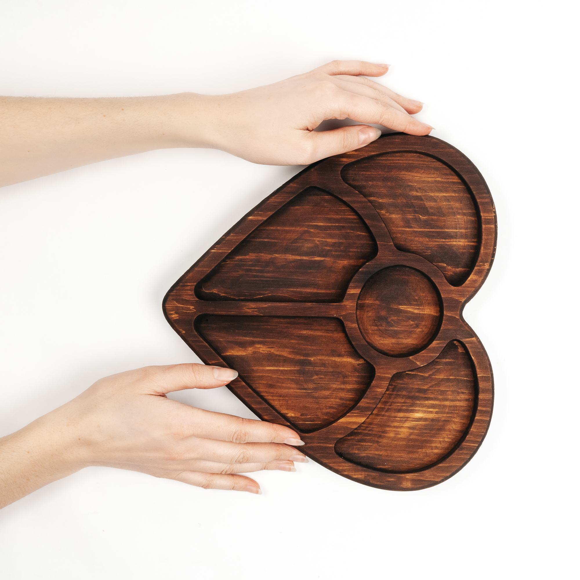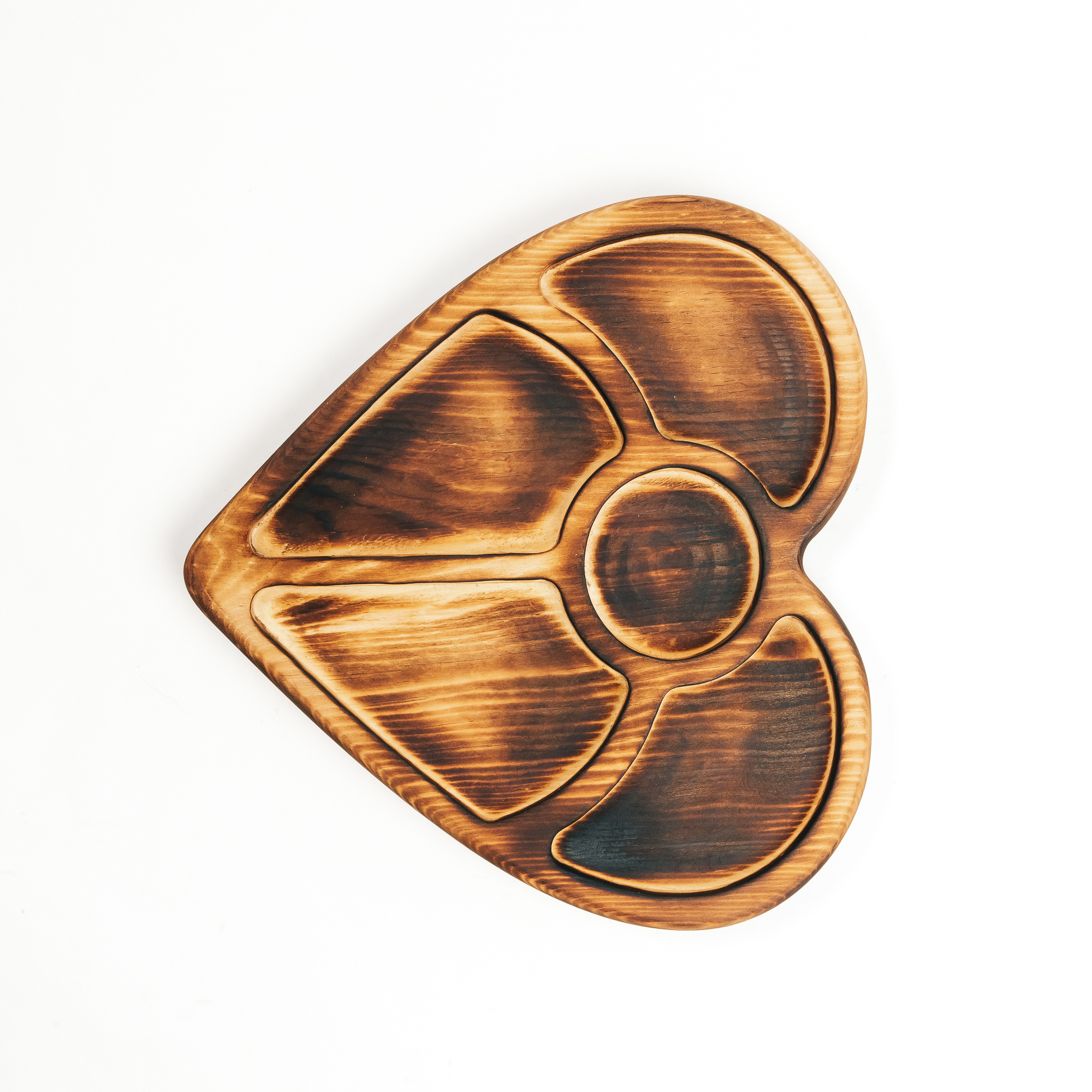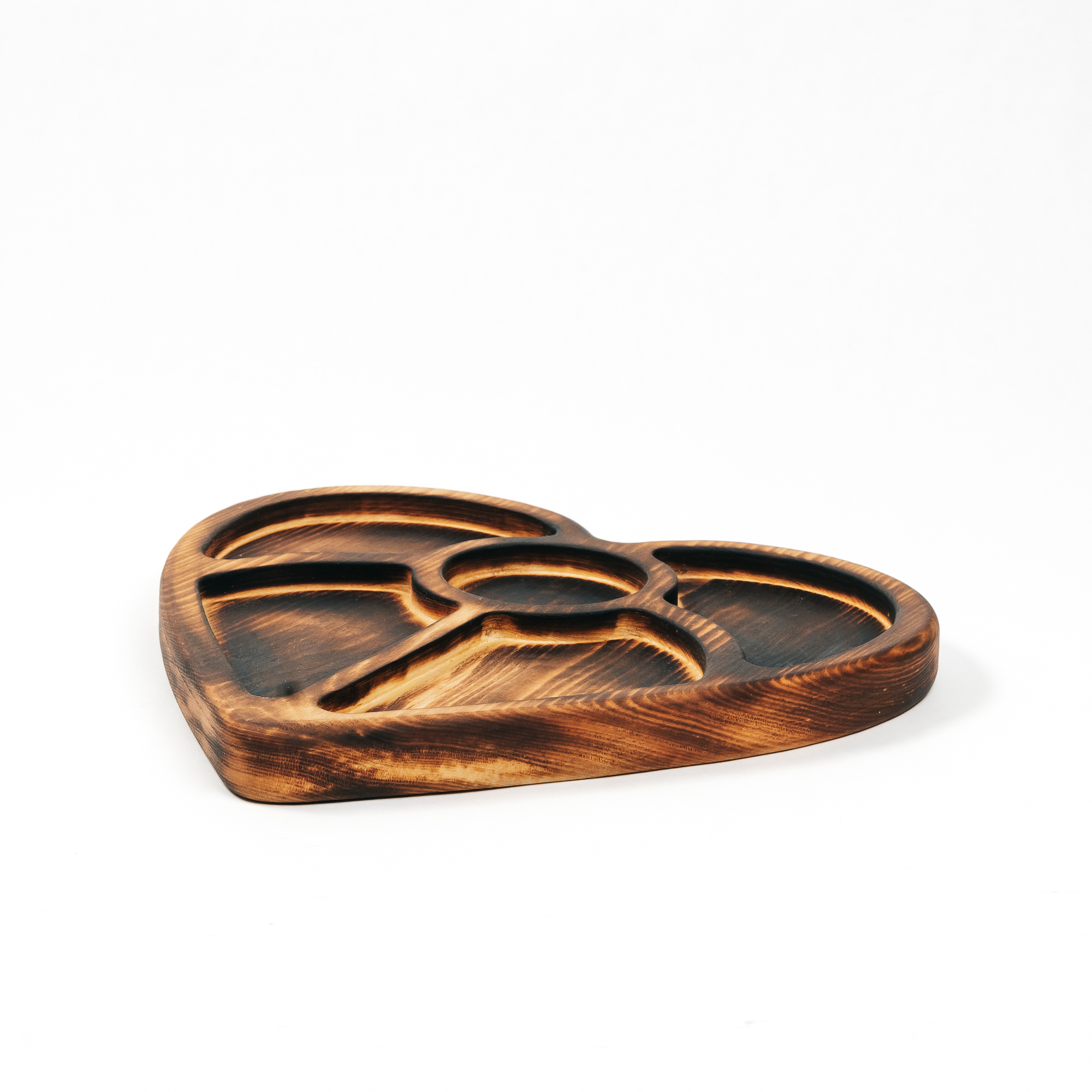 Деревянная менажница из кедра для подачи блюд и закусок "Сердце". Любителям натуральности придется по душе наша деревянная менажница, имеющая такие плюсы, как красивый узор древесины, не бьется, натуральна, долговечна и подходит для различных блюд. А антибактериальные свойства кедра привлекают ценителей чистоты. Подходит для любых видов закуски! Возможно наличие сучков. Пропитана нашим составом на основе растительного масла, кедровой смолы и пчелиного воска.