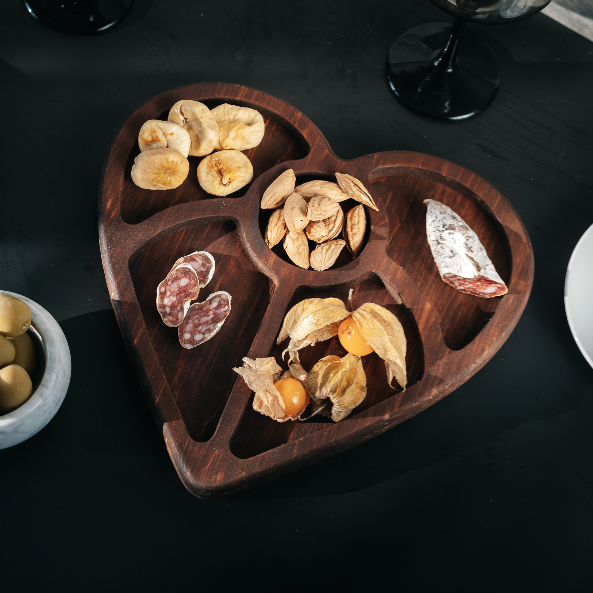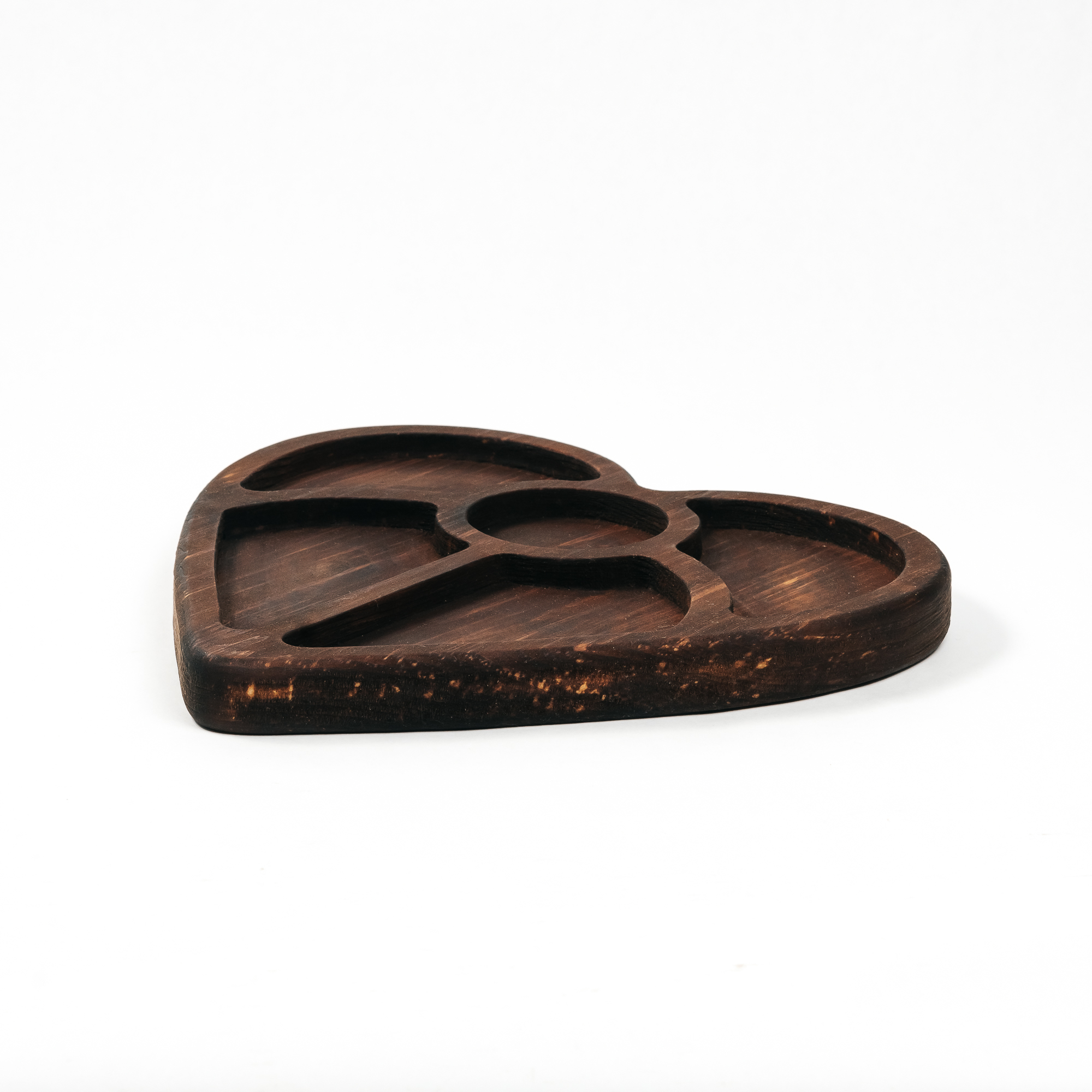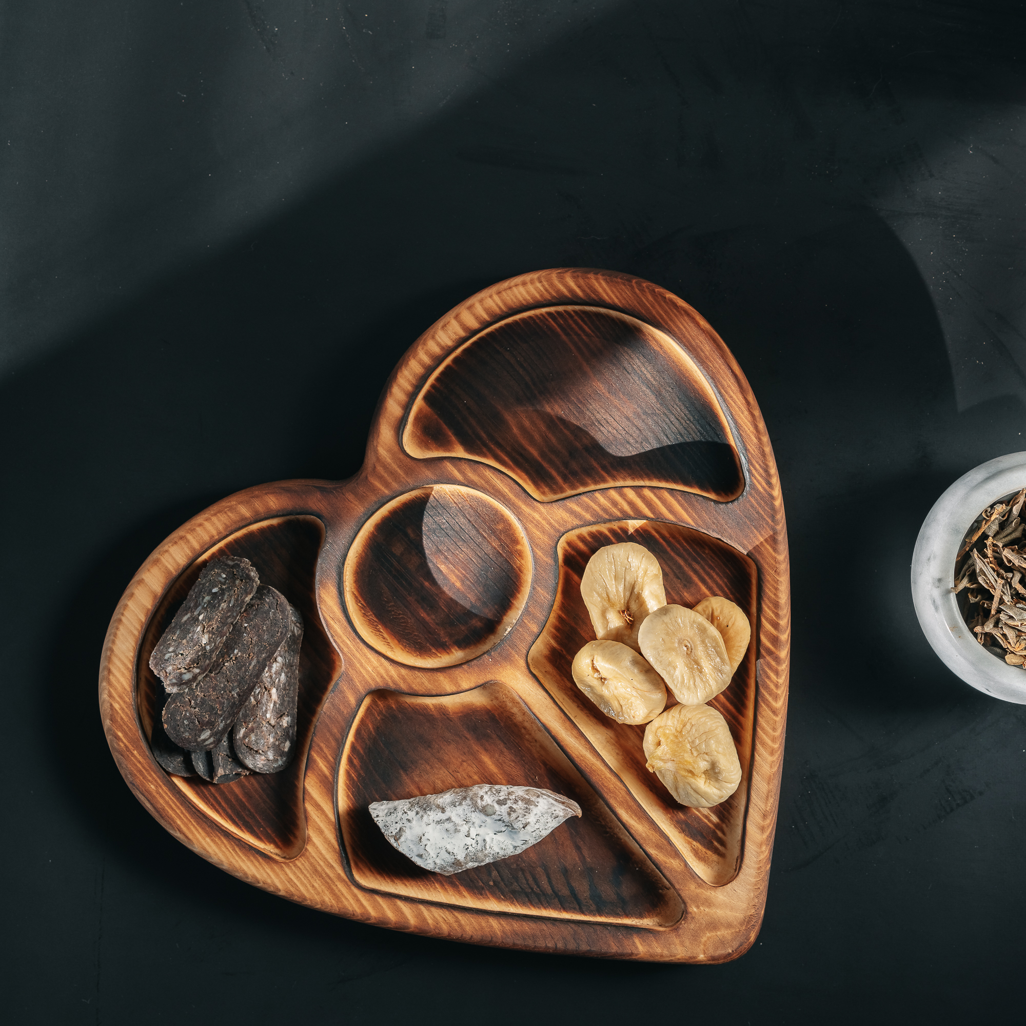 Деревянная менажница из кедра для подачи блюд и закусок "Сердце". Любителям натуральности придется по душе наша деревянная менажница, имеющая такие плюсы, как красивый узор древесины, не бьется, натуральна, долговечна и подходит для различных блюд. А антибактериальные свойства кедра привлекают ценителей чистоты. Подходит для любых видов закуски! Возможно наличие сучков. Пропитана нашим составом на основе растительного масла, кедровой смолы и пчелиного воска.