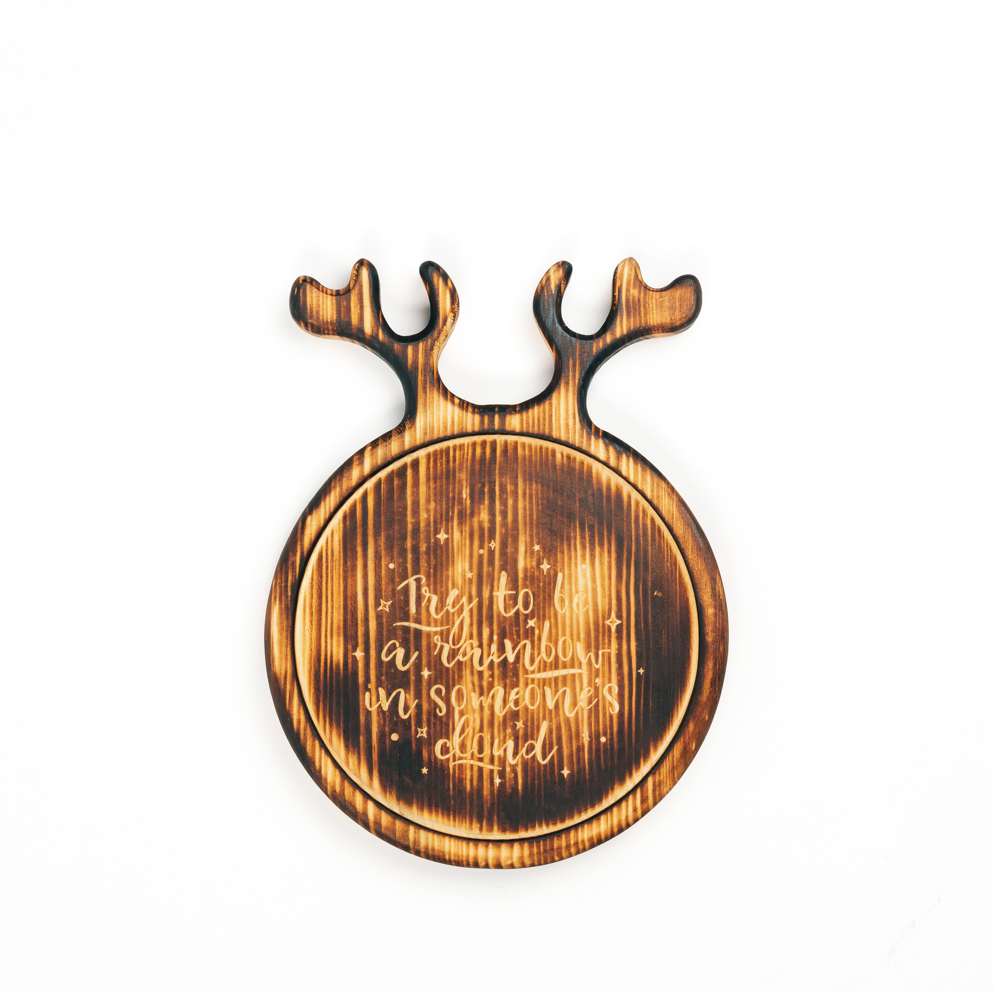 Деревянная менажница из сибирского кедра для подачи блюд и закусок с гравировкой "Try to be a rainbow in someone's cloud".