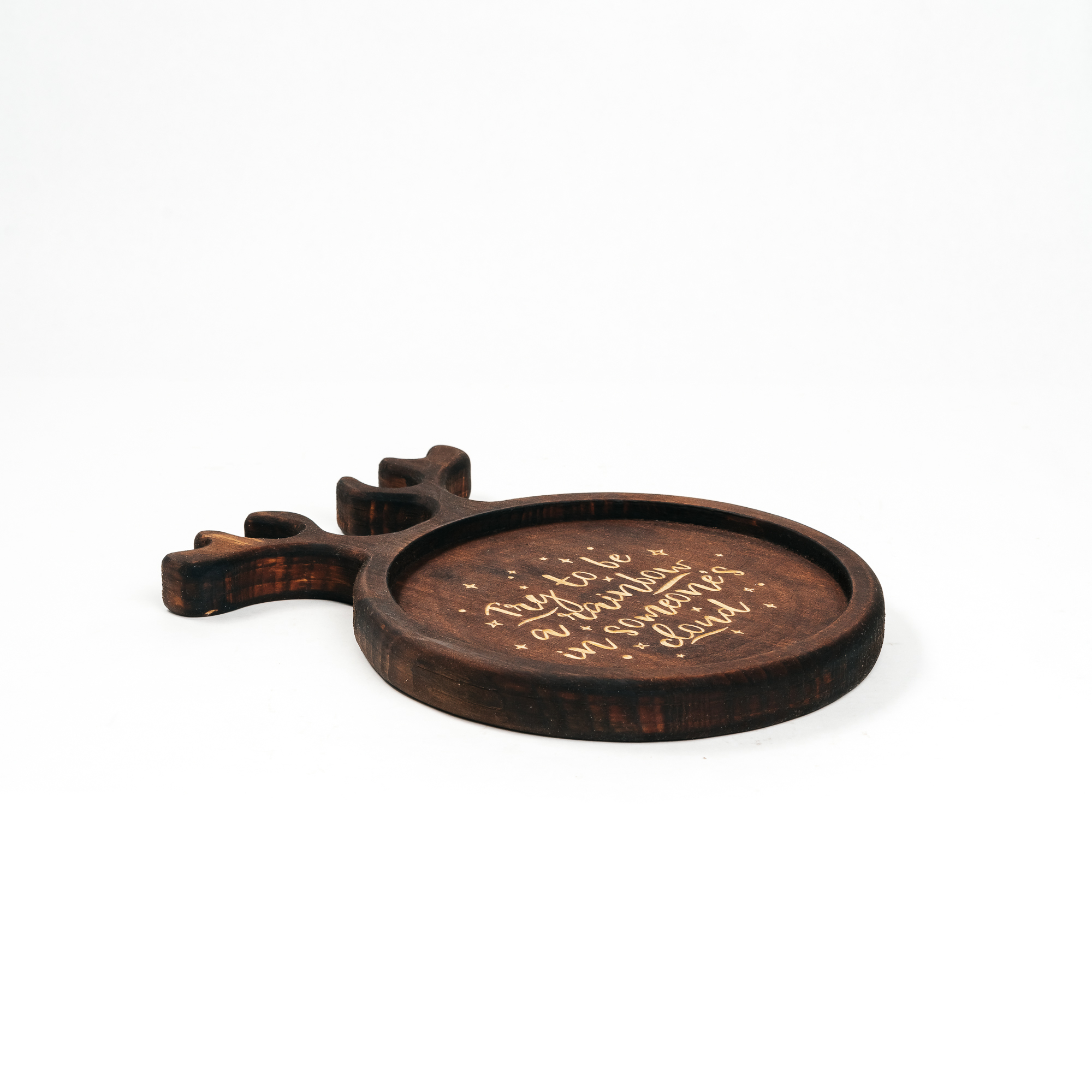 Деревянная менажница из сибирского кедра для подачи блюд и закусок с гравировкой "Try to be a rainbow in someone's cloud".