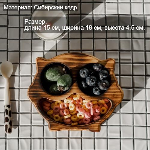 Менажница деревянная цельная из Сибирского кедра ручной работы для кухни. Выполнена из 100% массива, полностью цельная. Многие хозяйки мечтают, чтобы ее семейный обед или праздничный ужин был таким, как в престижном дорогом ресторане, поэтому озадачиваются сервировкой и красивой подачей блюд. В этом случае можно воспользоваться нашей новинкой - менажница для подачи блюд! Менажница – это тарелка, на которой смешаны разные блюда. Наша экологичная посуда из дерева придется по душе каждому, кто любит вкусно поесть и получить удовольствие от еды. Деревянная менажница для сервировки обладает следующими преимуществами: красивая текстура древесины, очень прочная, натуральная и долговечная. Фитонциды, входящие в состав кедровой древесины, имеют антибактериальные свойства. Они способны обеззараживать воздух, убивать простейшие микроорганизмы и вирусы. Поднос из дерева станет отличным подарком на Новый год, день рождения и новоселье. Менажница подходит для горячих и холодных блюд, для сыра, для закусок и фруктов. Возможно наличие сучков. Идеальная шлифовка позволяет изделию быть очень гладким. Менажница пропитана натуральным маслом, которое, необходимо смыть в теплой проточной воде перед использованием. Не замачивать! Не использовать в посудомоечной машине! Только деликатная мойка. После использования насухо вытереть. Размеры менажницы: Длина 150 мм, Ширина 180 мм, Высота 45 мм.