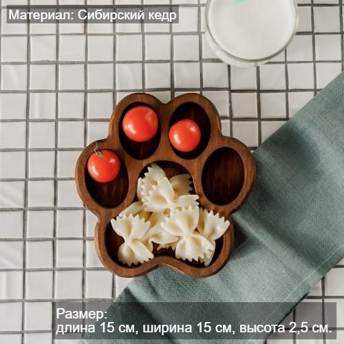 Менажница деревянная цельная из Сибирского кедра ручной работы для кухни. Выполнена из 100% массива, полностью цельная. Многие хозяйки мечтают, чтобы ее семейный обед или праздничный ужин был таким, как в престижном дорогом ресторане, поэтому озадачиваются сервировкой и красивой подачей блюд. В этом случае можно воспользоваться нашей новинкой - менажница для подачи блюд! Менажница – это тарелка, на которой смешаны разные блюда. Наша экологичная посуда из дерева придется по душе каждому, кто любит вкусно поесть и получить удовольствие от еды. Деревянная менажница для сервировки обладает следующими преимуществами: красивая текстура древесины, очень прочная, натуральная и долговечная. Фитонциды, входящие в состав кедровой древесины, имеют антибактериальные свойства. Они способны обеззараживать воздух, убивать простейшие микроорганизмы и вирусы. Поднос из дерева станет отличным подарком на Новый год, день рождения и новоселье. Менажница подходит для горячих и холодных блюд, для сыра, для закусок и фруктов. Возможно наличие сучков. Идеальная шлифовка позволяет изделию быть очень гладким. Менажница пропитана натуральным маслом, которое, необходимо смыть в теплой проточной воде перед использованием. Не замачивать! Не использовать в посудомоечной машине! Только деликатная мойка. После использования насухо вытереть. Размеры менажницы: Длина 150 мм, Ширина 150 мм, Высота 25 мм.