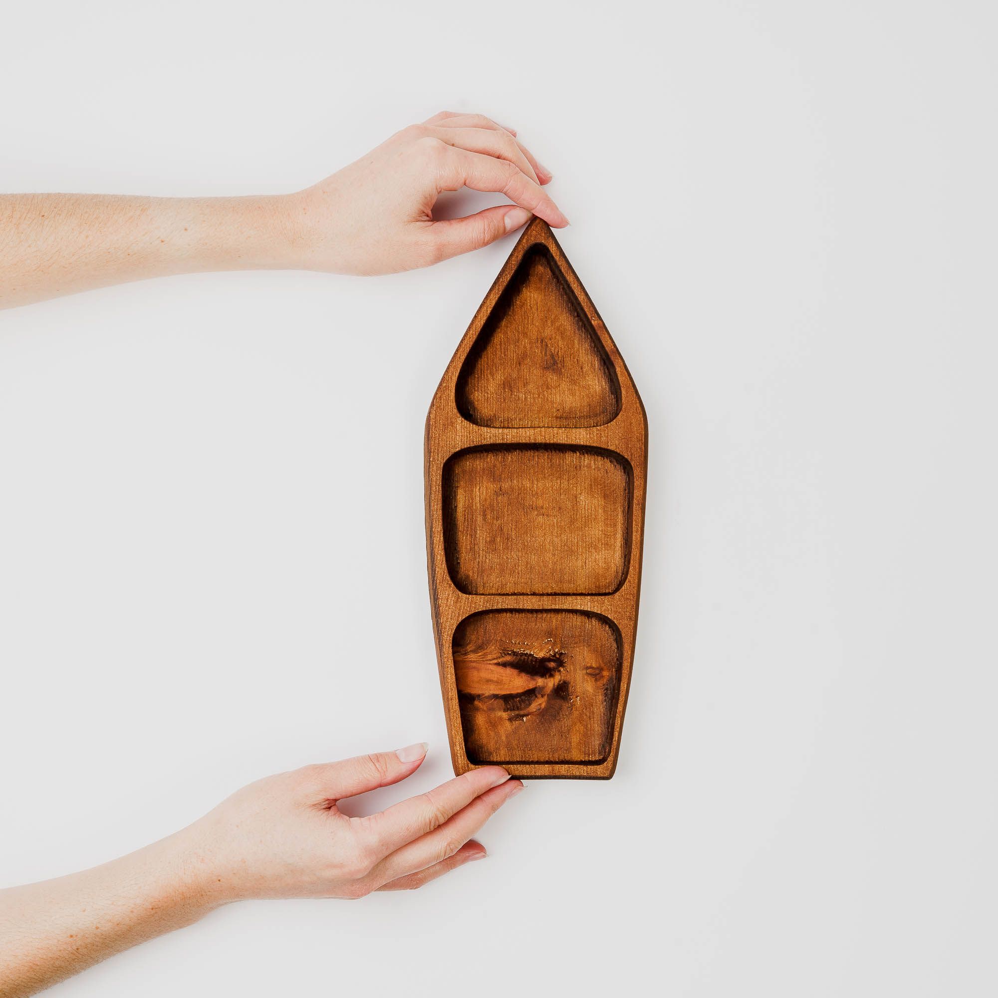 Менажница деревянная цельная из Сибирского кедра ручной работы для кухни. Выполнена из 100% массива, полностью цельная. Многие хозяйки мечтают, чтобы ее семейный обед или праздничный ужин был таким, как в престижном дорогом ресторане, поэтому озадачиваются сервировкой и красивой подачей блюд. В этом случае можно воспользоваться нашей новинкой - менажница для подачи блюд! Менажница – это тарелка, на которой смешаны разные блюда. Наша экологичная посуда из дерева придется по душе каждому, кто любит вкусно поесть и получить удовольствие от еды. Деревянная менажница для сервировки обладает следующими преимуществами: красивая текстура древесины, очень прочная, натуральная и долговечная. Фитонциды, входящие в состав кедровой древесины, имеют антибактериальные свойства. Они способны обеззараживать воздух, убивать простейшие микроорганизмы и вирусы. Поднос из дерева станет отличным подарком на Новый год, день рождения и новоселье. Менажница подходит для горячих и холодных блюд, для сыра, для закусок и фруктов. Возможно наличие сучков. Идеальная шлифовка позволяет изделию быть очень гладким. Менажница пропитана натуральным маслом, которое, необходимо смыть в теплой проточной воде перед использованием. Не замачивать! Не использовать в посудомоечной машине! Только деликатная мойка. После использования насухо вытереть. Размеры менажницы: Длина 300 мм, Ширина 120 мм, Высота 25 мм.