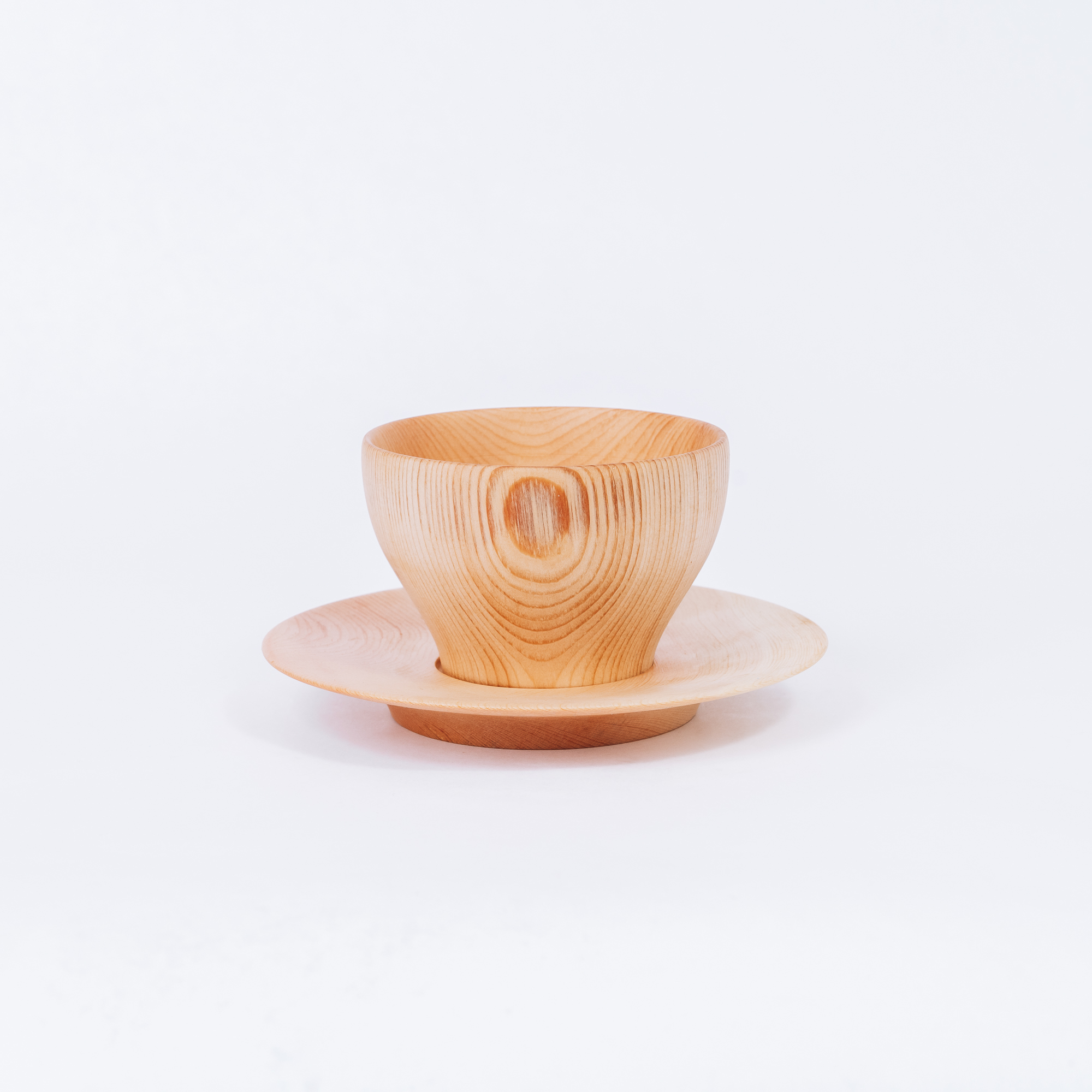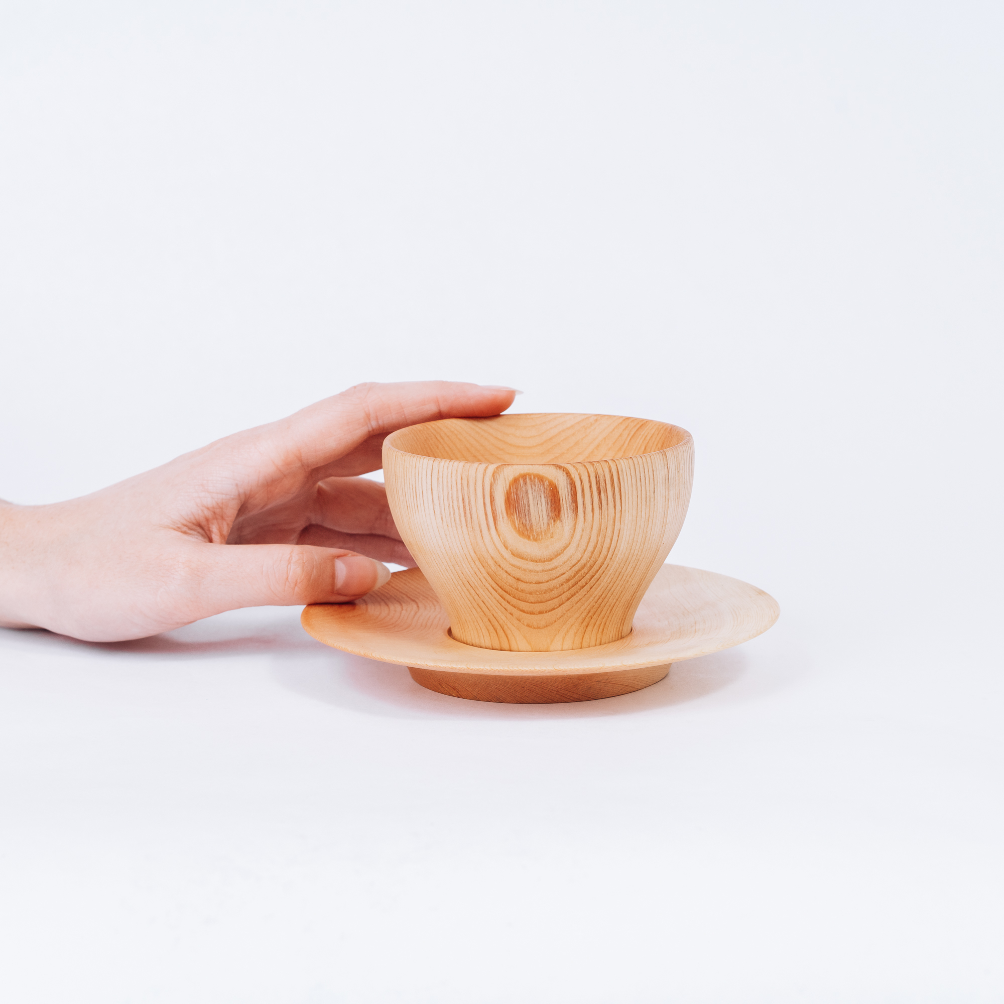 Чайная пара - чашка с блюдцем из натурального дерева Сибирский кедр.