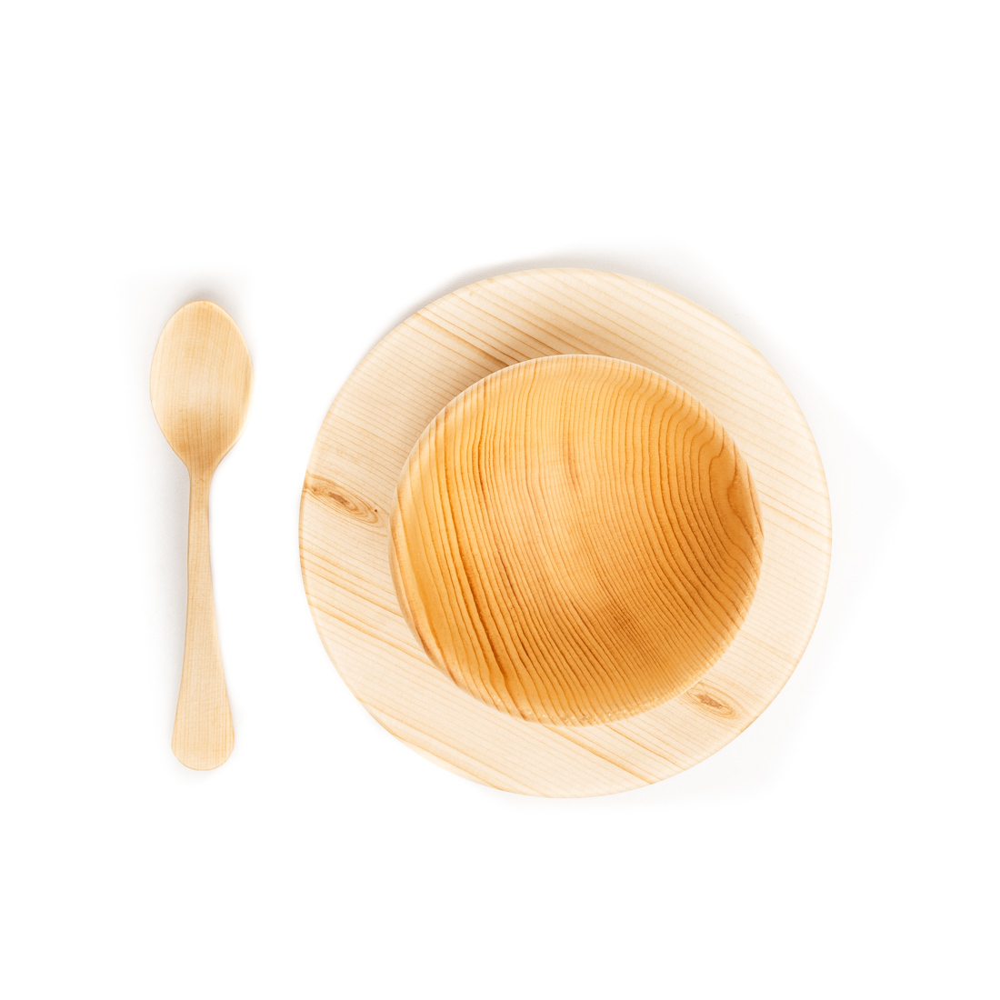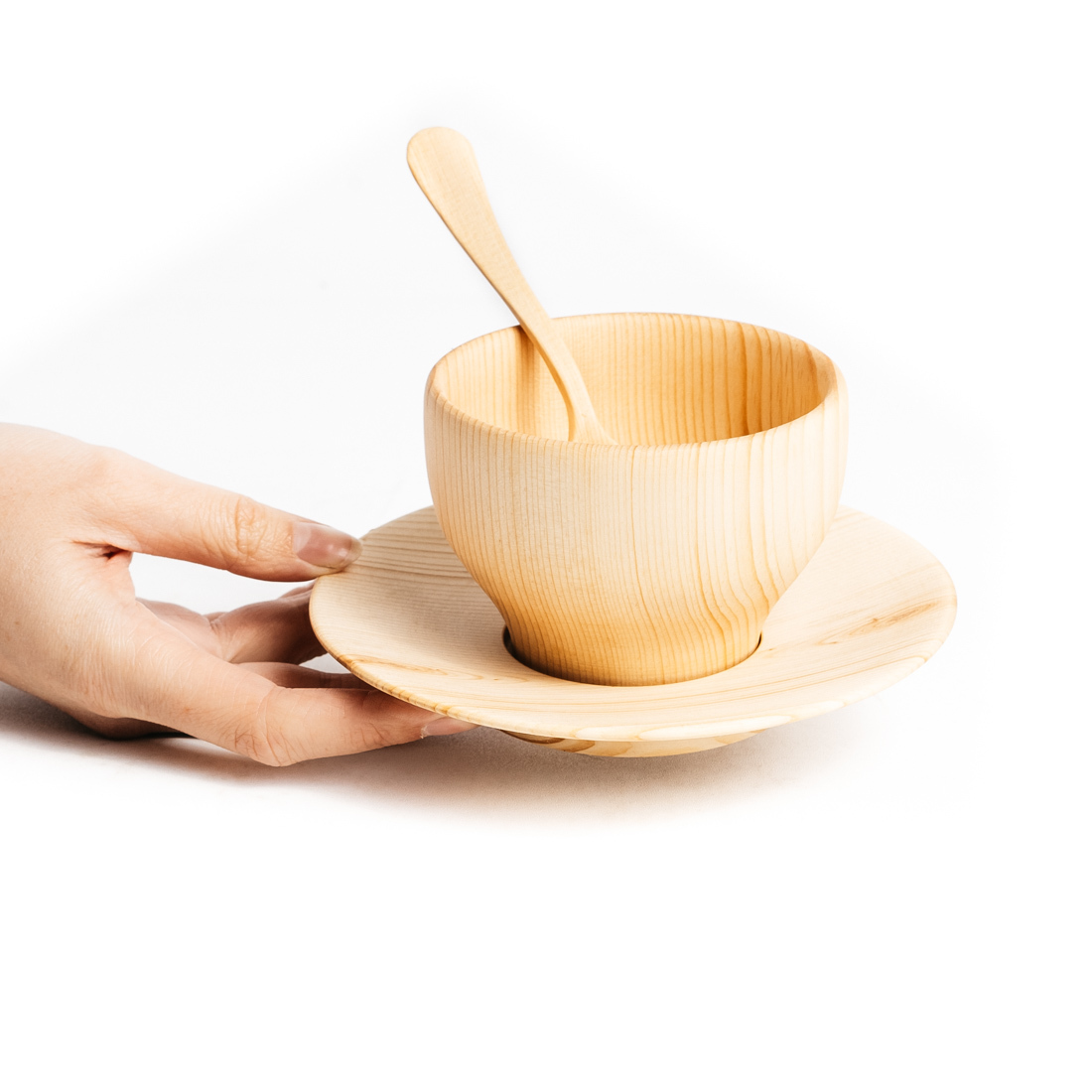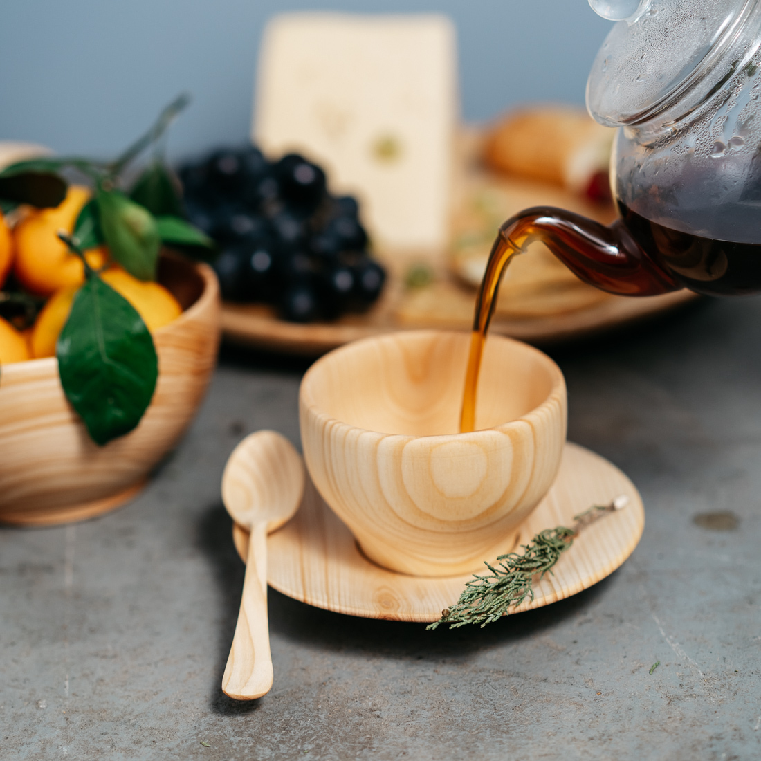 Чайная пара - чашка с блюдцем + чайная ложка из натурального дерева Сибирский кедр.