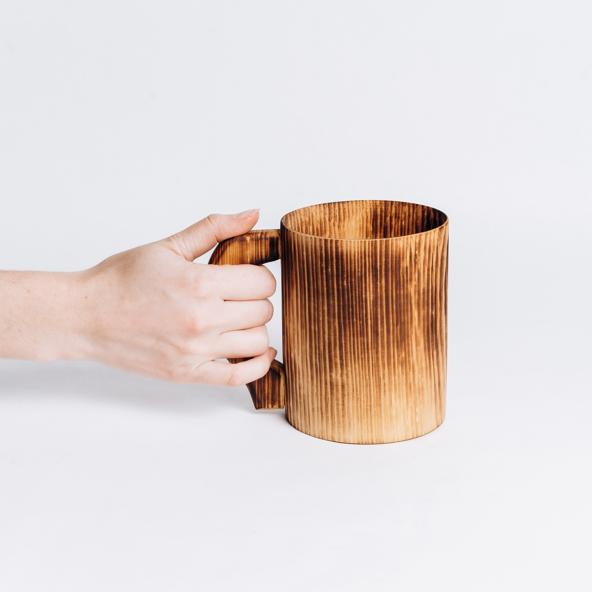 3. Оригинальность. Согласитесь, далеко не на каждой кухне вы можете встретить необычную кружку из дерева. Цвет "обжиг".