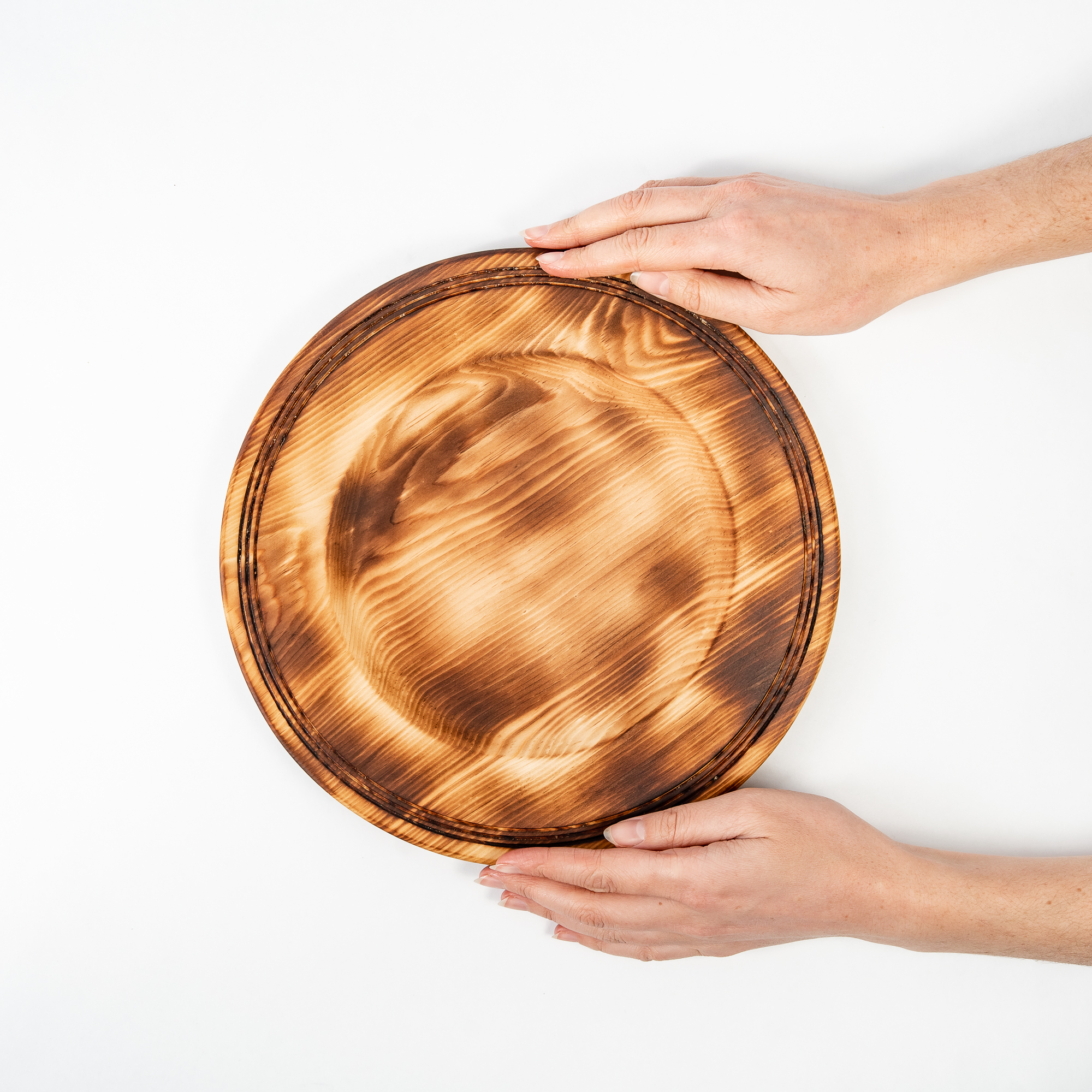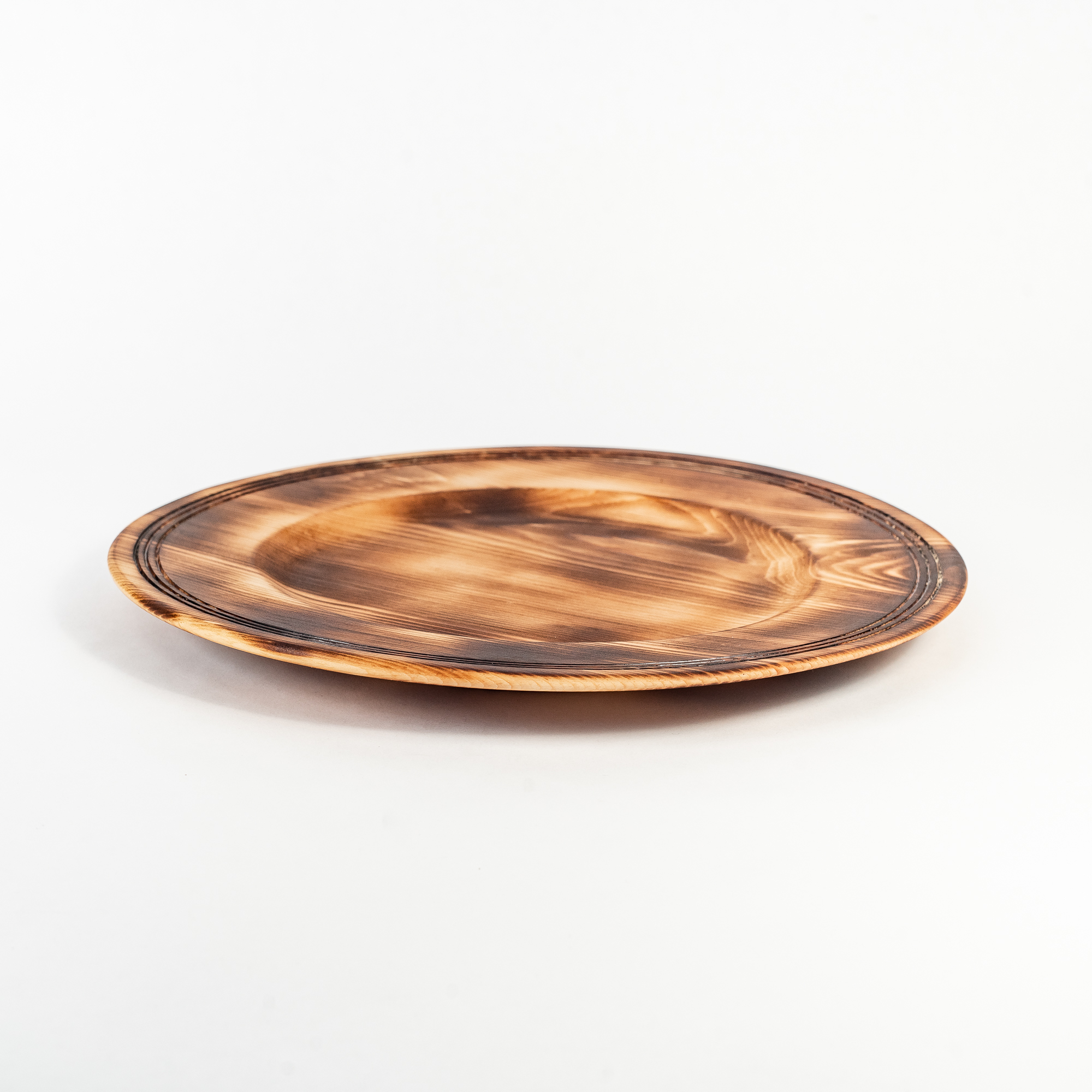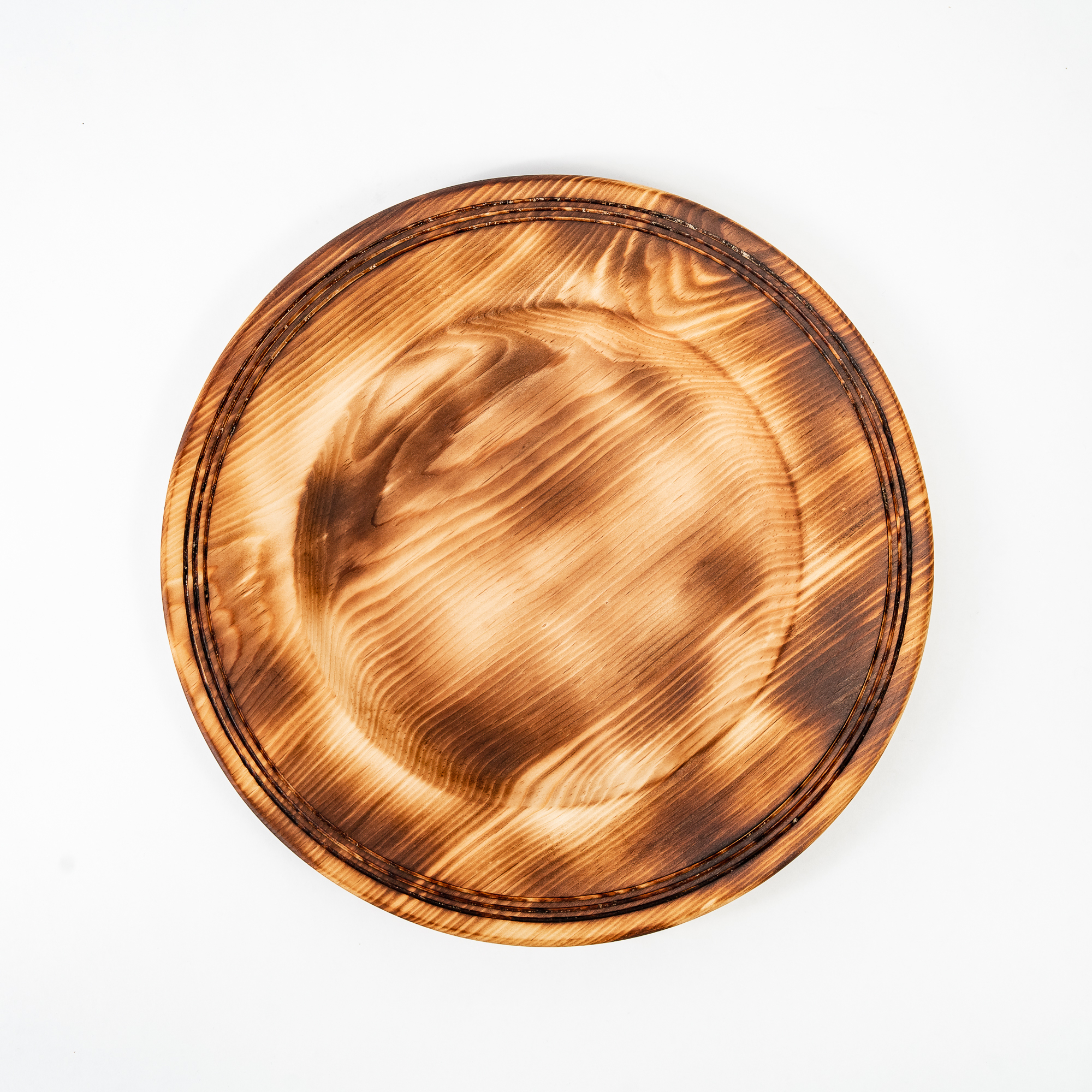 Деревянная плоская тарелка из сибирского кедра серии "ПАНАДА" 270мм.