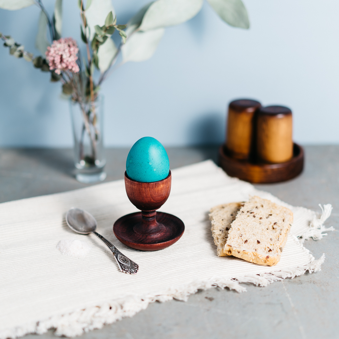 Деревянная подставка для яйца с солонкой из древесины сибирского кедра.