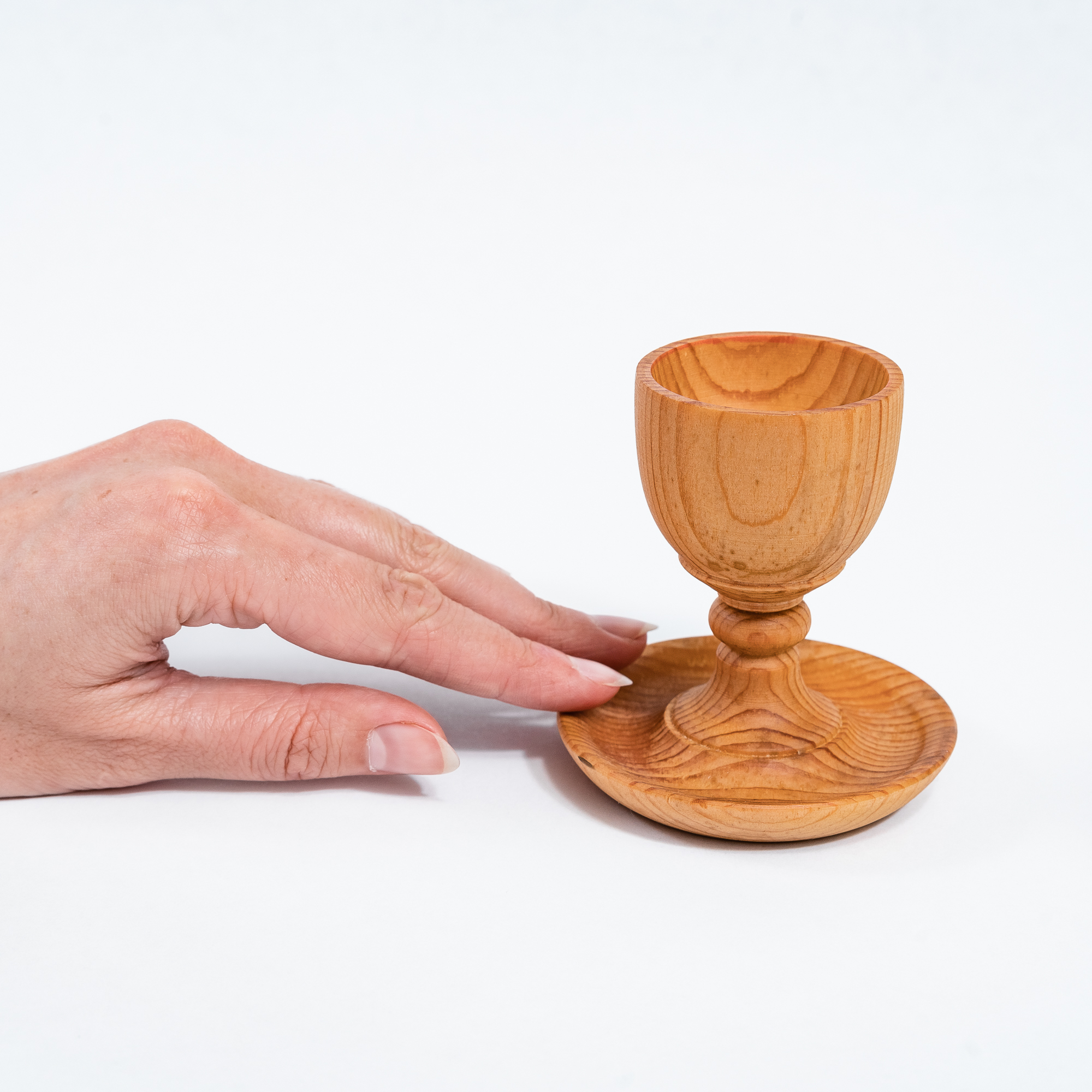 Деревянная подставка для яйца с солонкой из древесины сибирского кедра.