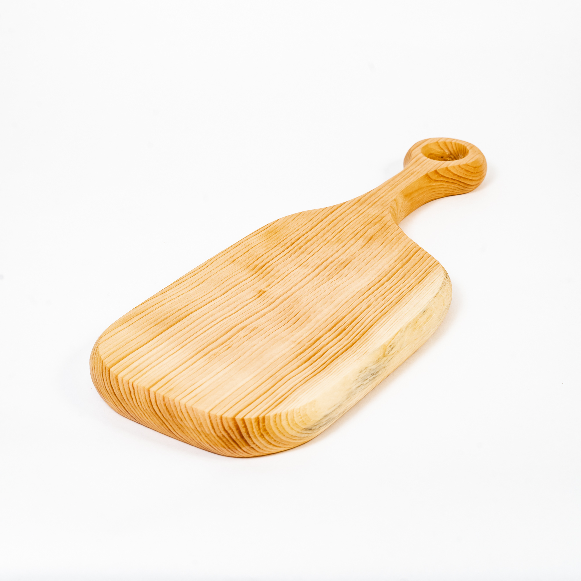 Деревянная разделочная доска из цельного куска древесины сибирского кедра.