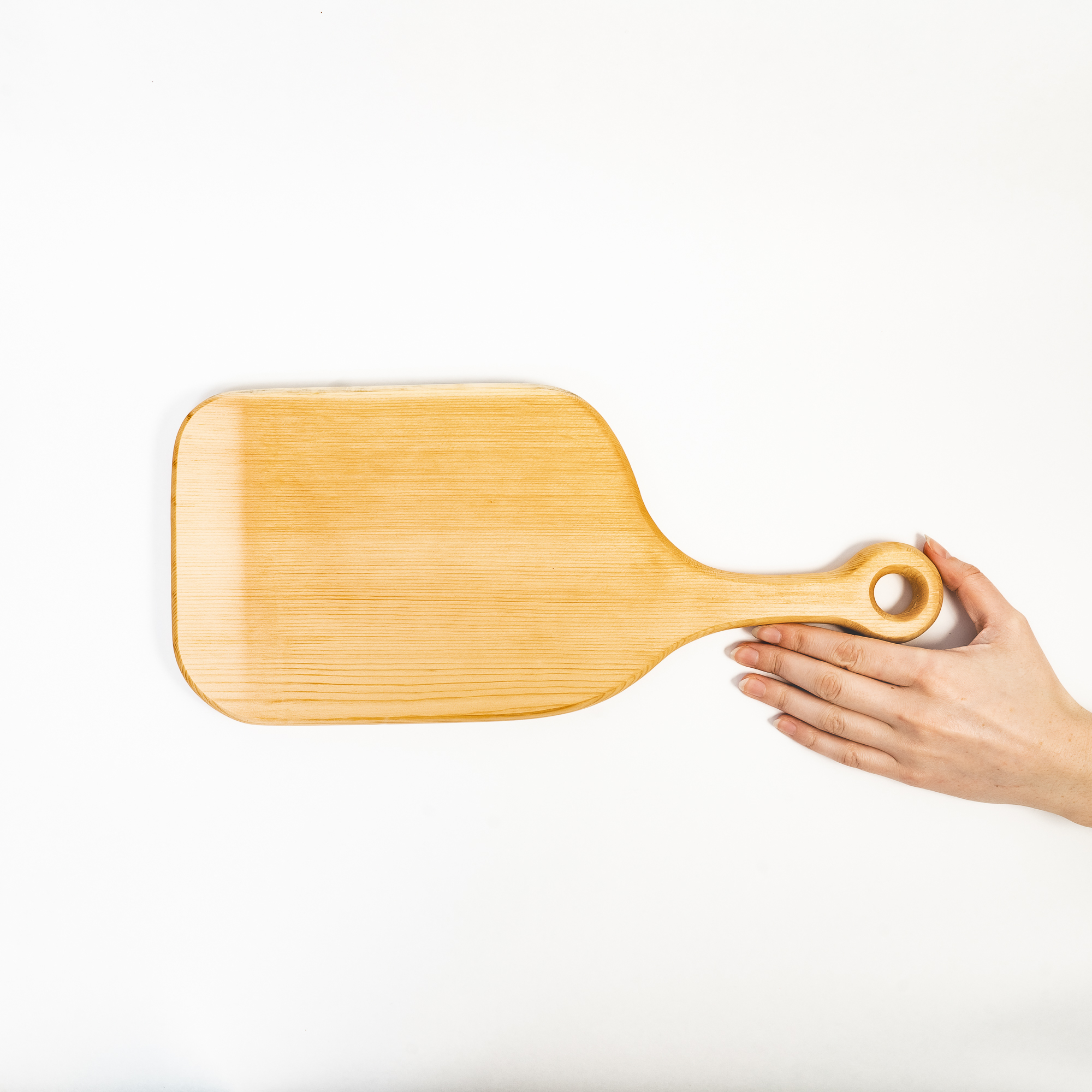 Деревянная разделочная доска из цельного куска древесины сибирского кедра.