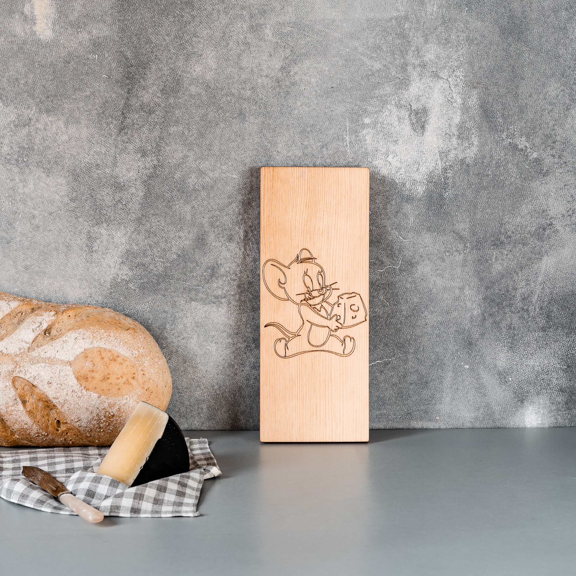 Деревянная разделочная доска из цельного куска древесины сибирского кедра для мяса с гравировкой "СЫР".